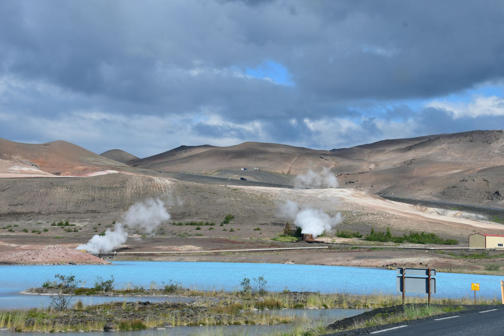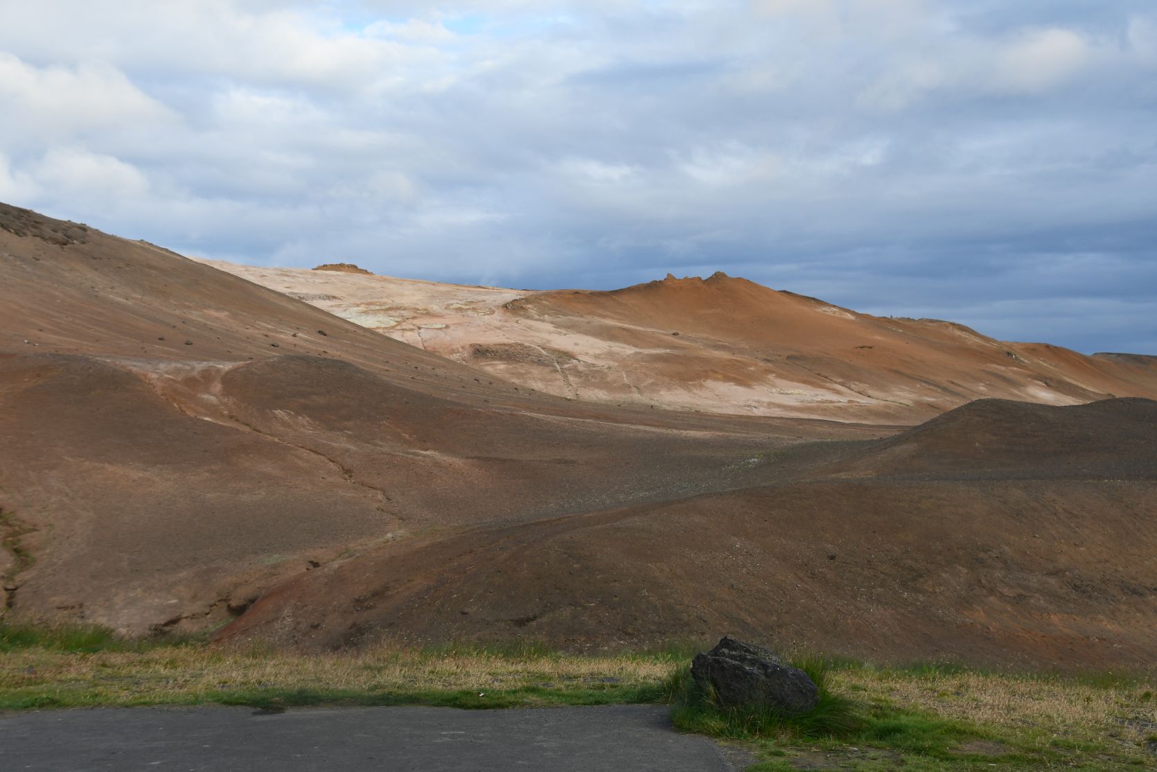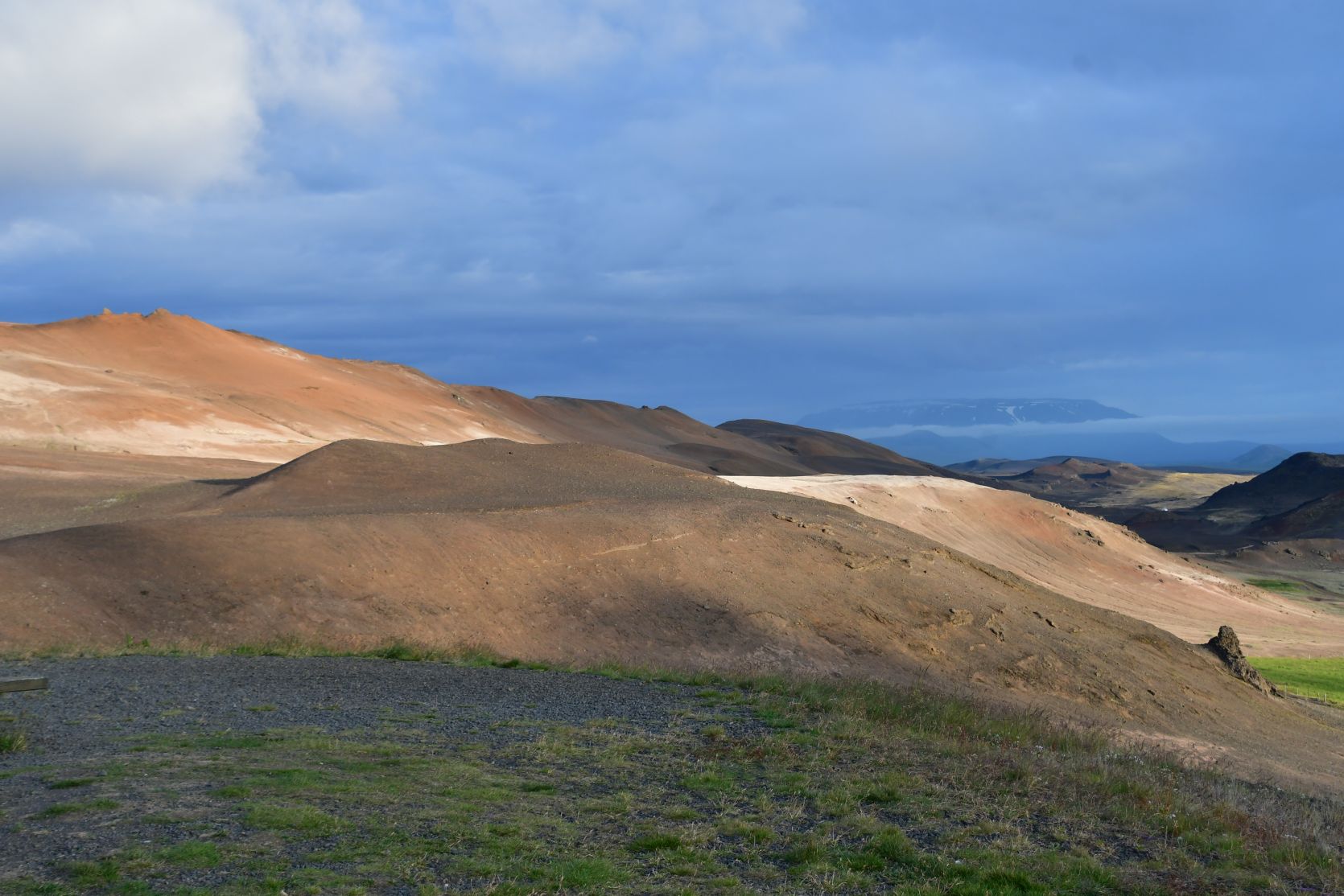 We drove on via Hverarönd (also called Hverir), ein geothermical field with hot springs. On our last visits we walked around there, so now we just drove past.