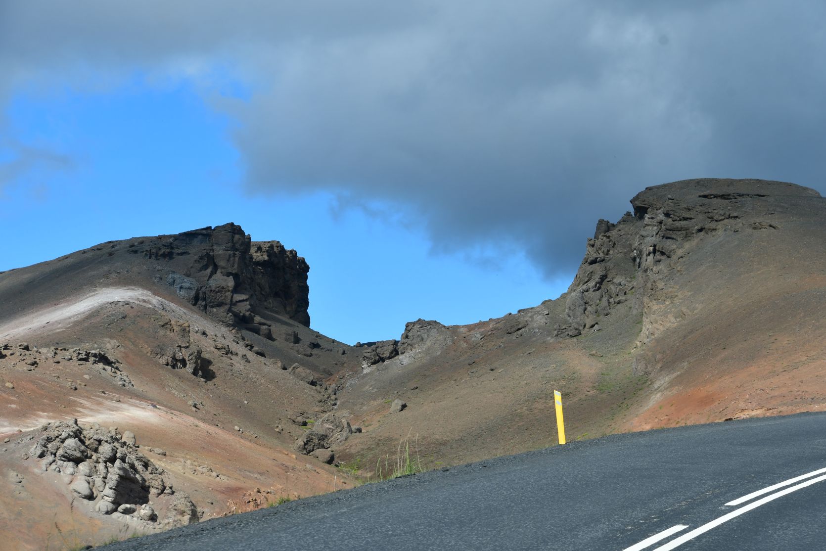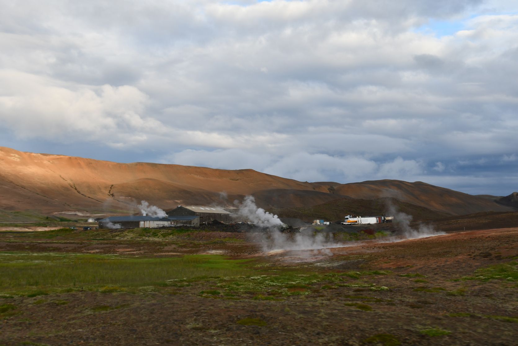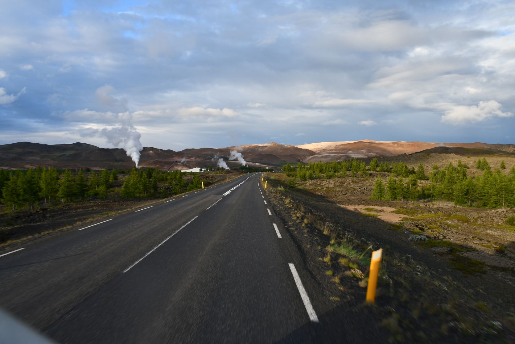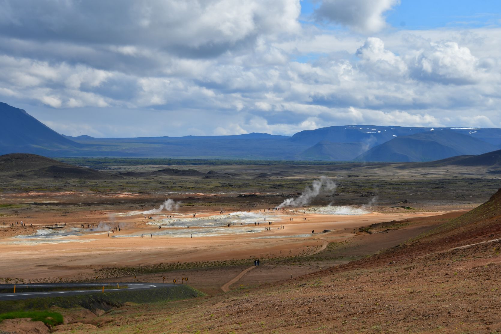 We drove on via Hverarönd (also called Hverir), ein geothermical field with hot springs. On our last visits we walked around there, so now we just drove past.