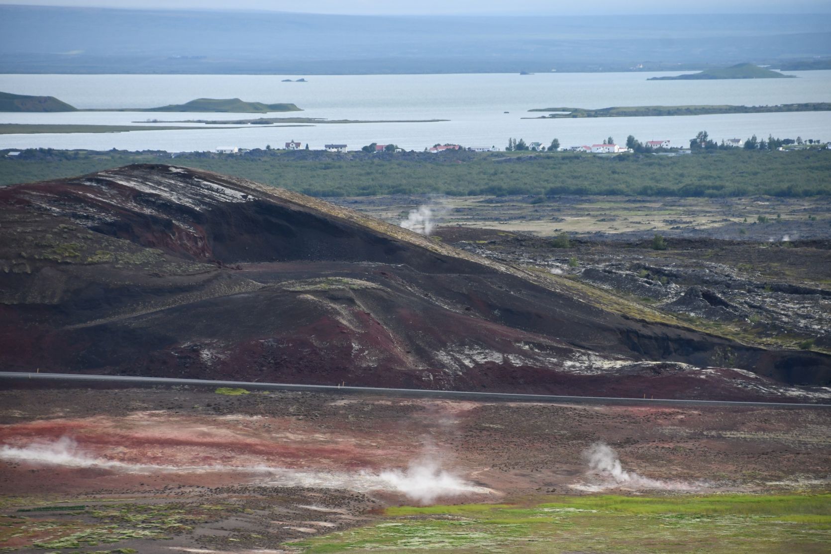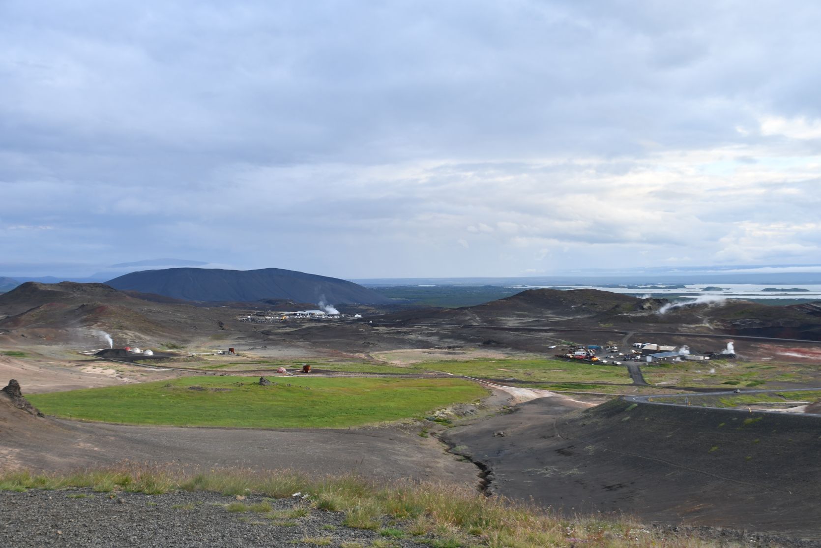 We could see the crater Hverfjall – we walked all around the edge last year. Also Mývatn Nature Bath (a highly recommended alternative to the Blue Lagoon!) can be seen from up there.
