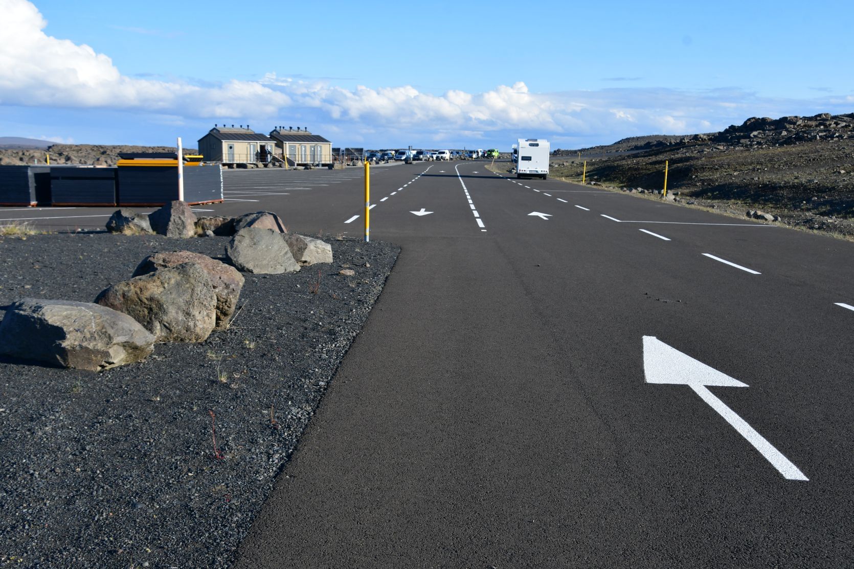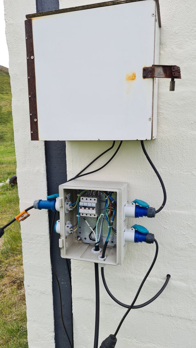 Der Campingplatz, inmitten eines Lavafeldes. Das rote Ungetüm ist ein interessantes Hotel 😉 Michu, wie findest Du die elektrische Installation ?