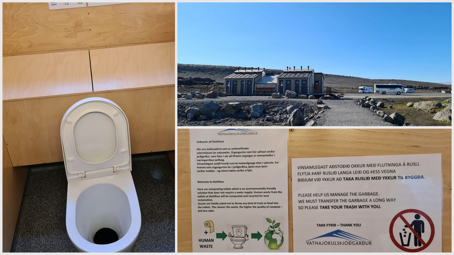 We were impressed by the clean und not at all smelly composting toilets! Ironically they refer to not having enough water – right next to such a powerful waterfall 😉