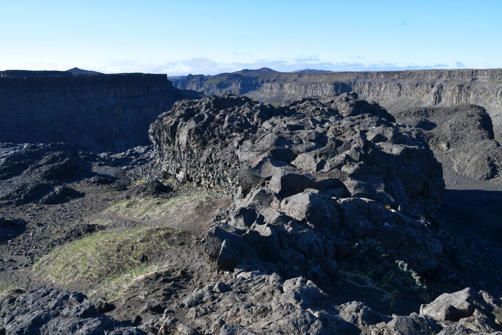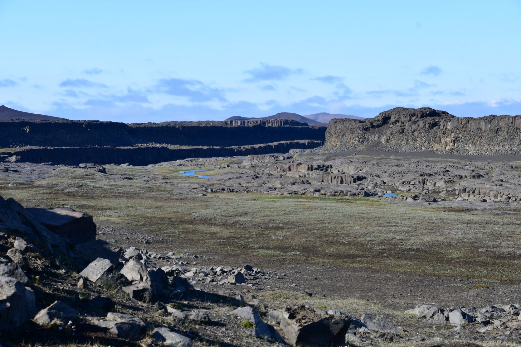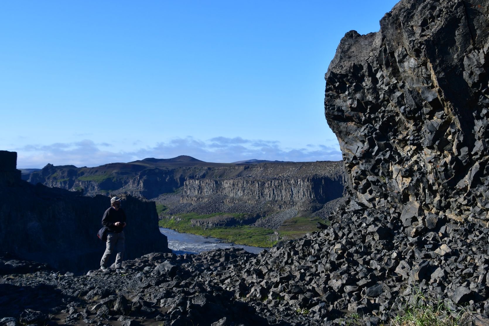 Ein bisschen nördlich vom Dettifoss ist ein weiterer interessanter Ort, Hljóðaklettar (Echofelsen). Es ist eine Anhäufung von säulenartigen Felsformationen. Wir waren im 2014 dort, und es ist ganz sicher einen Besuch wert !