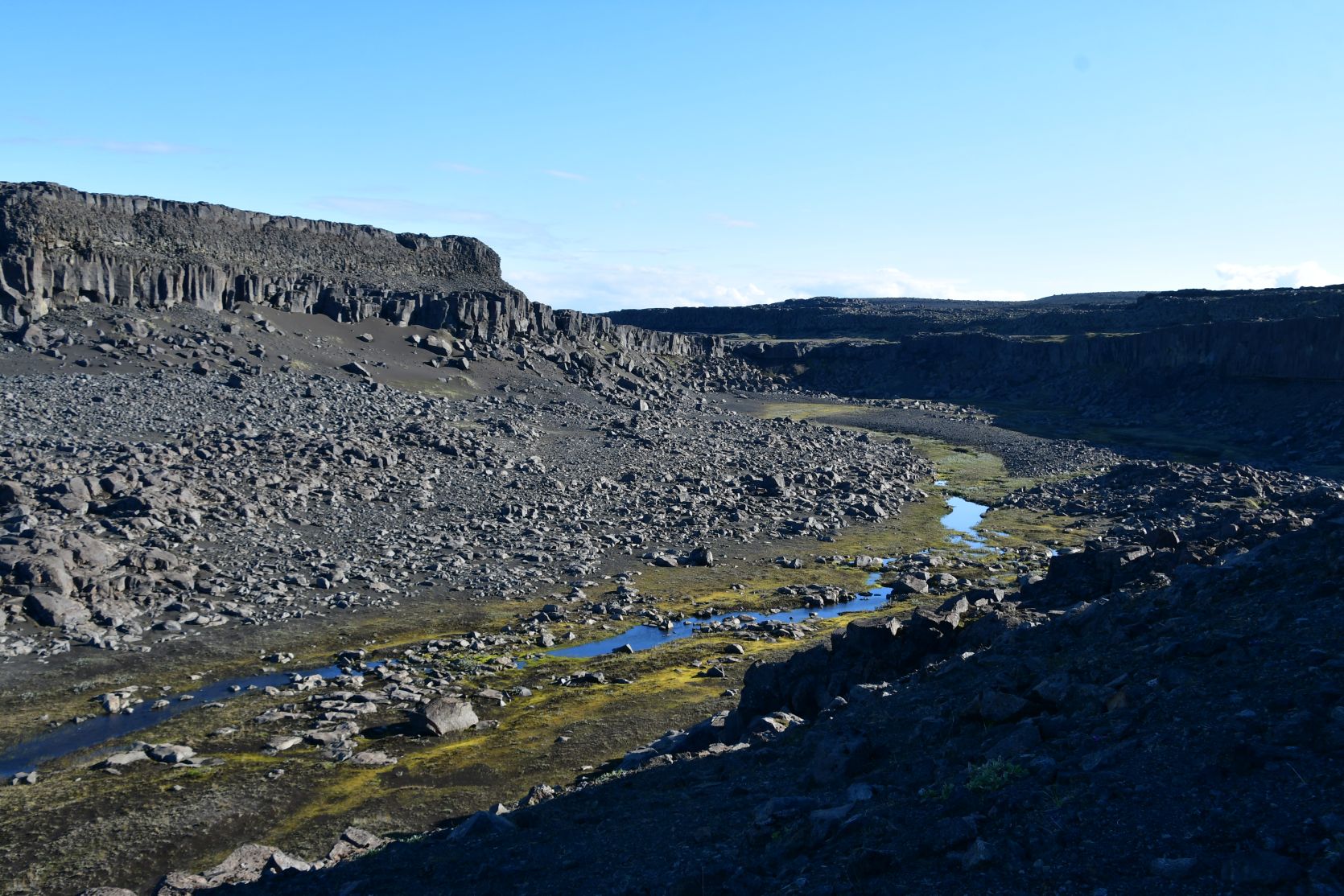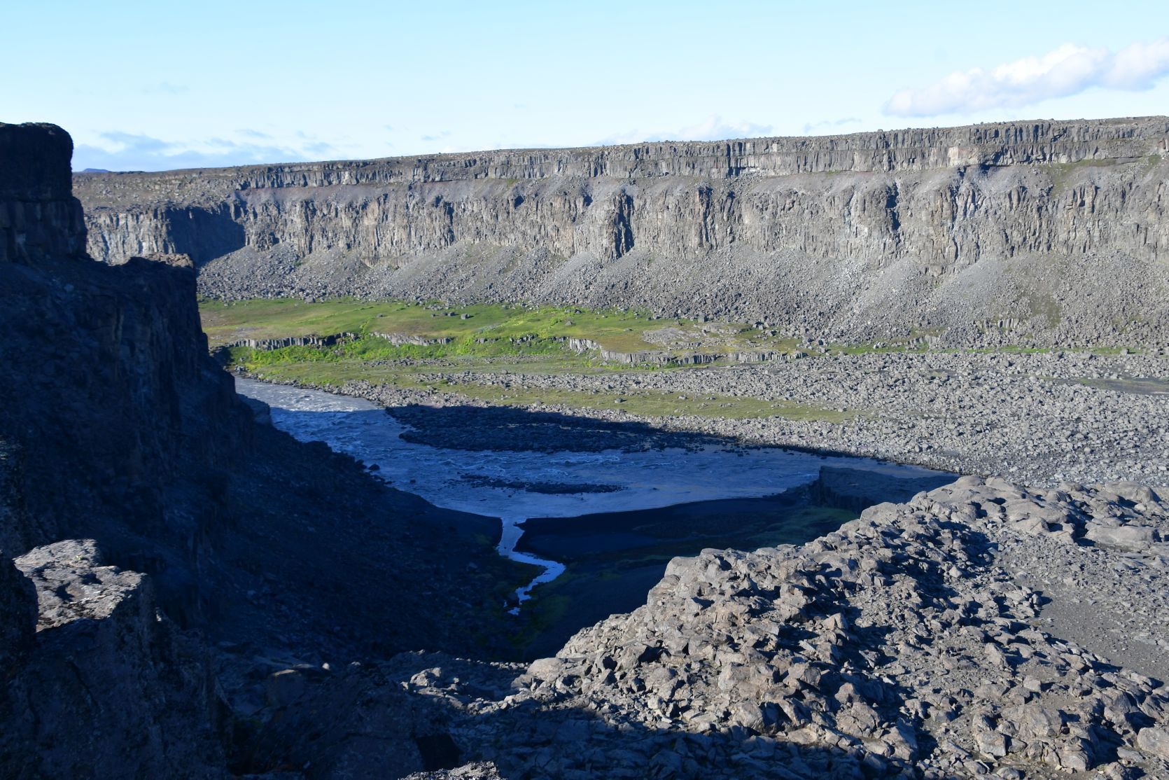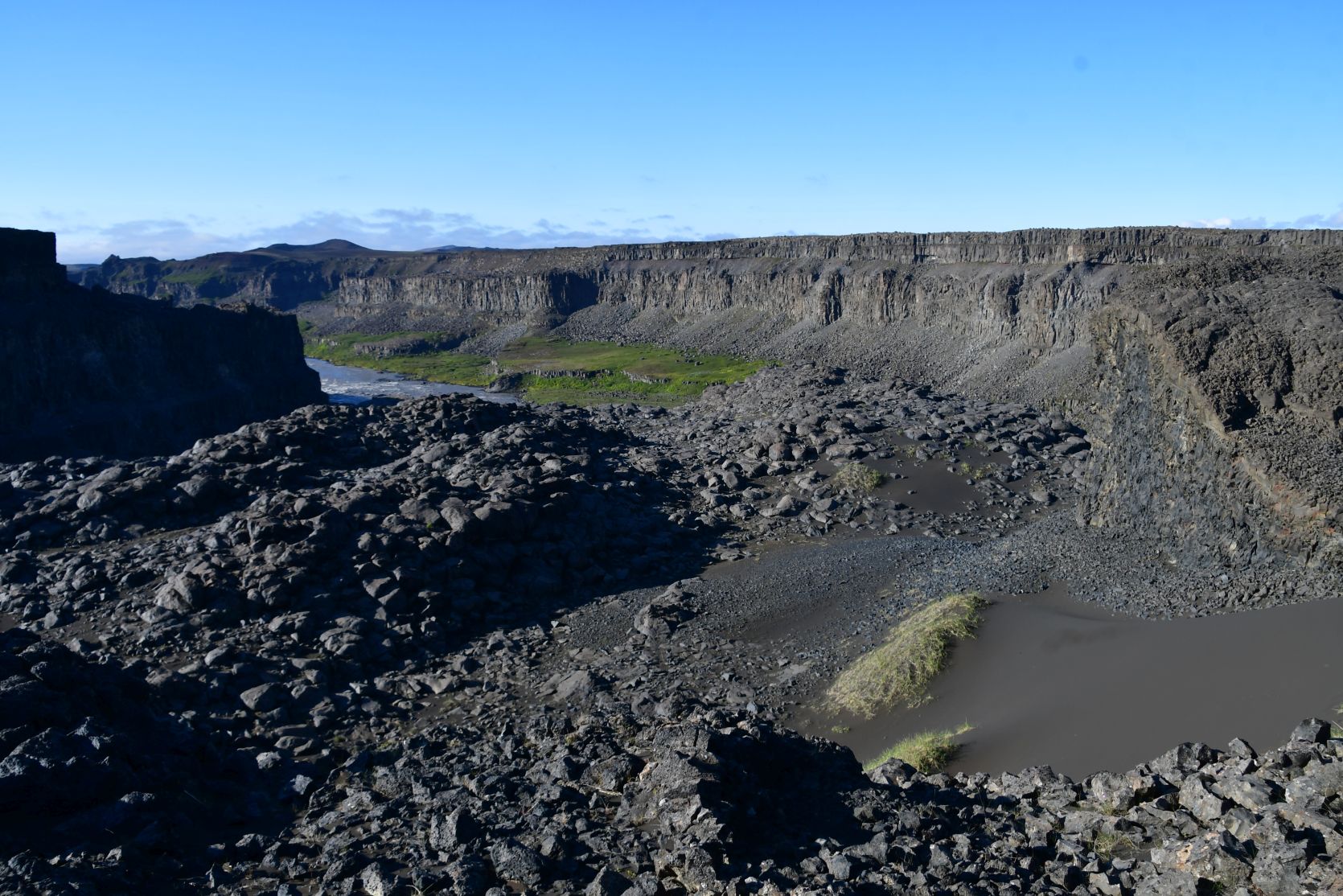 Ein bisschen nördlich vom Dettifoss ist ein weiterer interessanter Ort, Hljóðaklettar (Echofelsen). Es ist eine Anhäufung von säulenartigen Felsformationen. Wir waren im 2014 dort, und es ist ganz sicher einen Besuch wert !