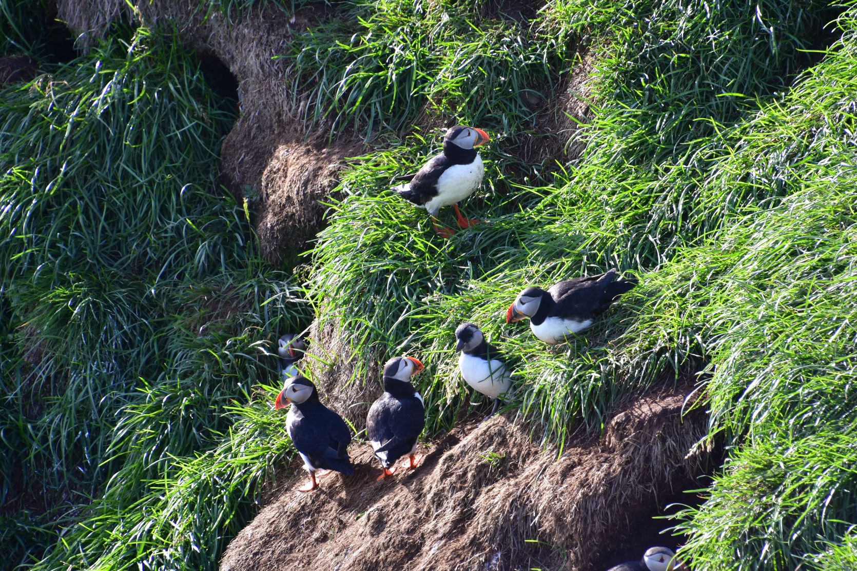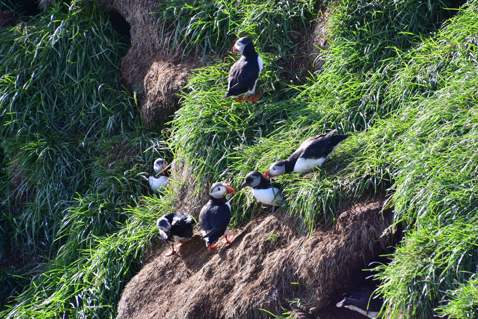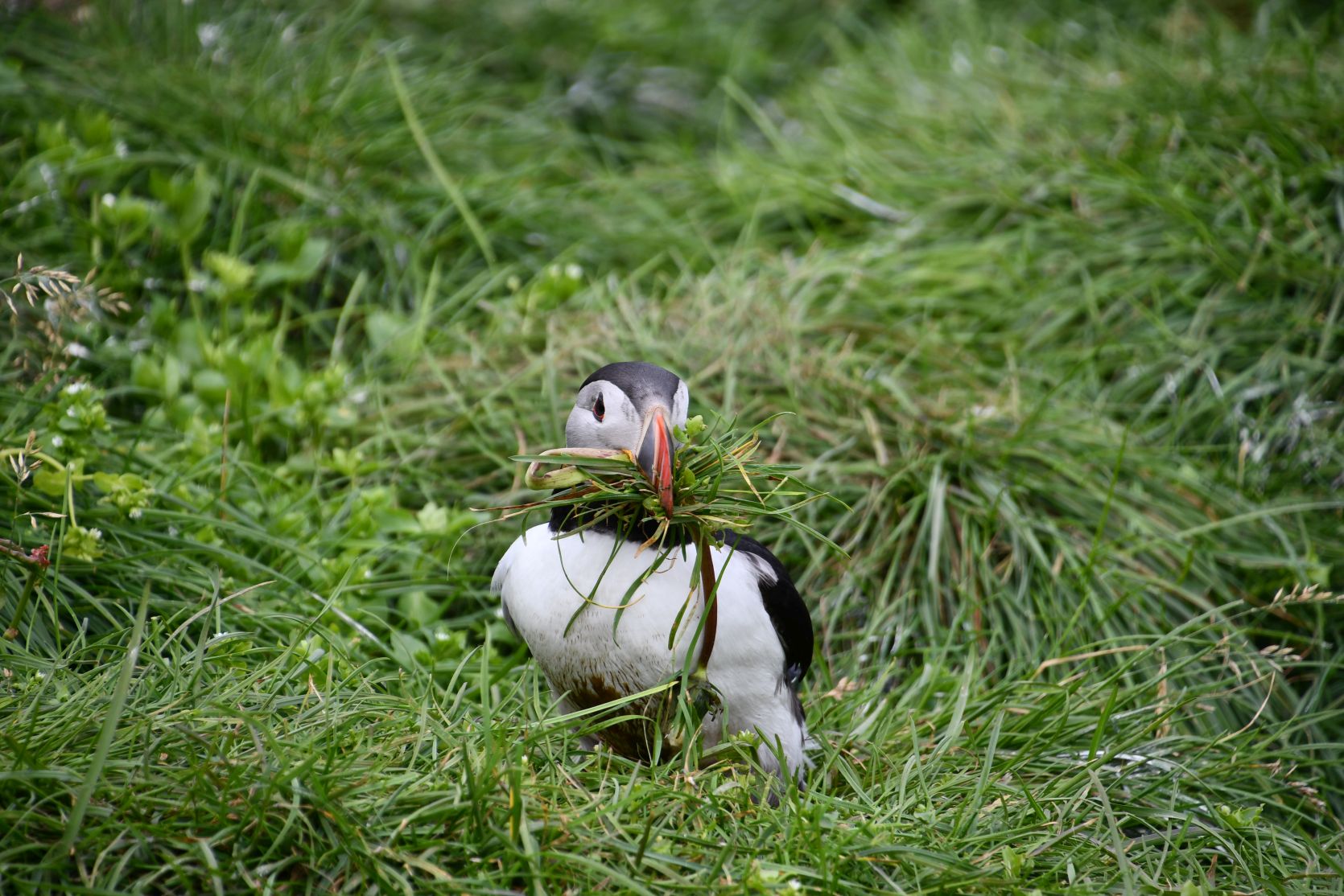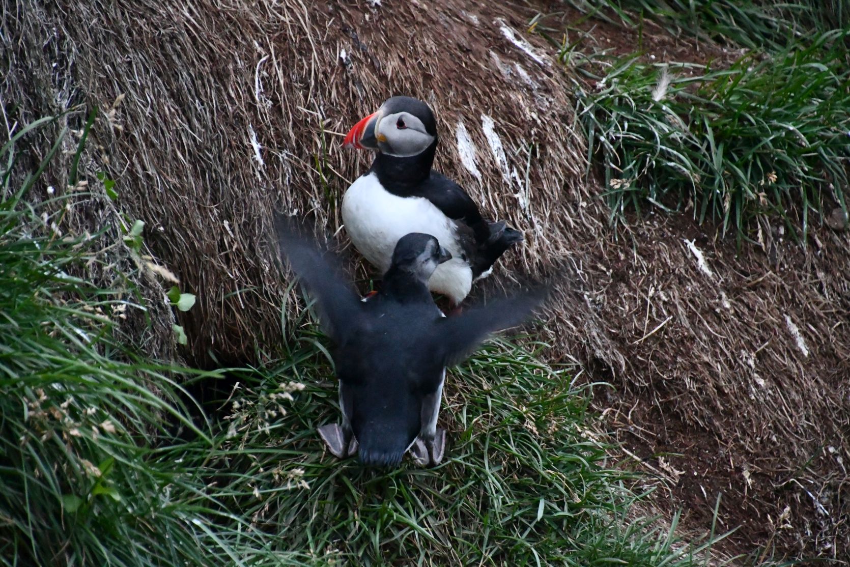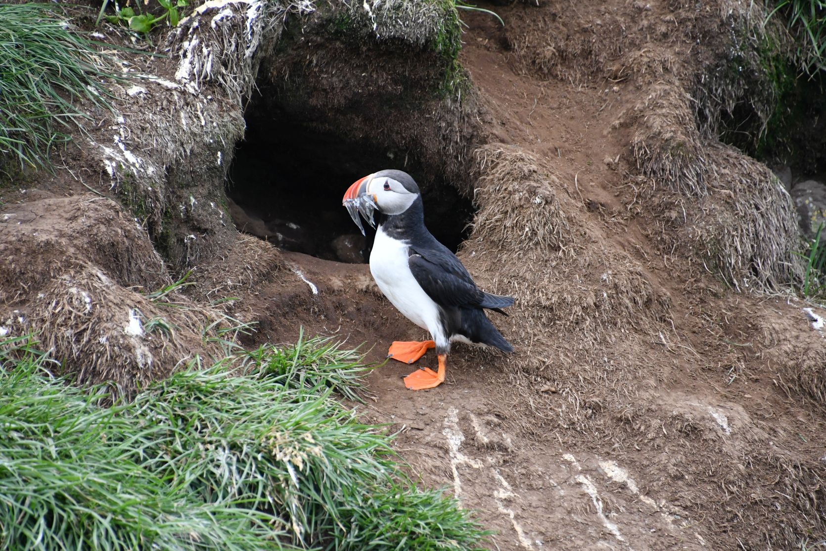 Einige Papageientaucher nahmen offenbar Reparaturarbeiten oder Verschönerungen am Nest vor!