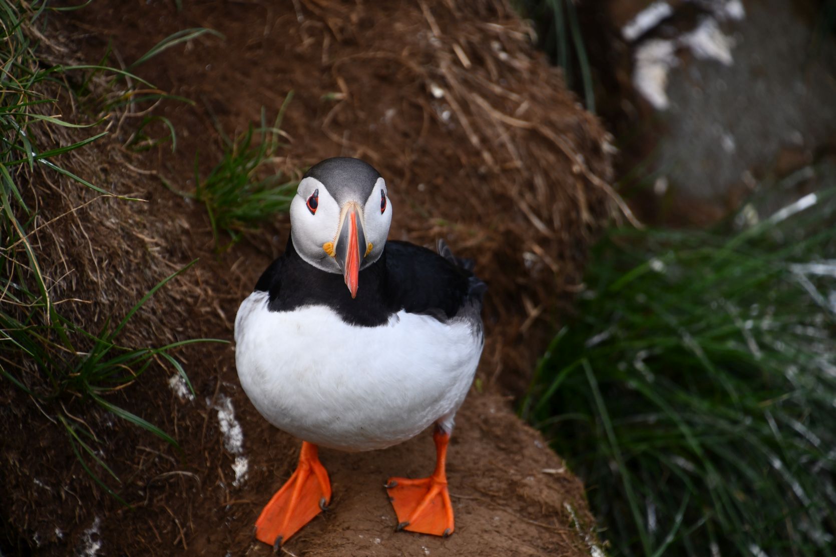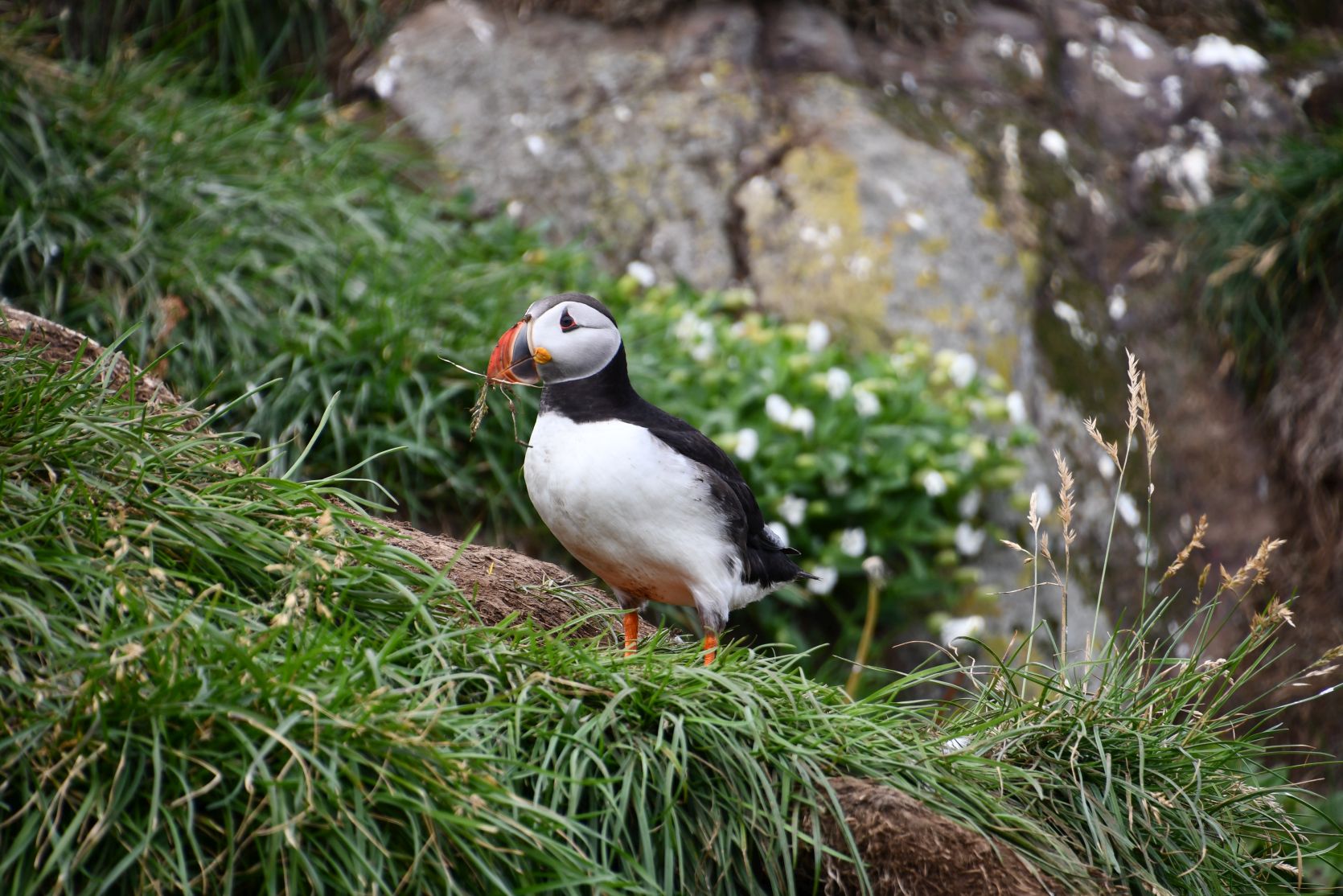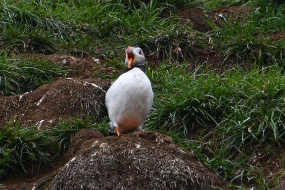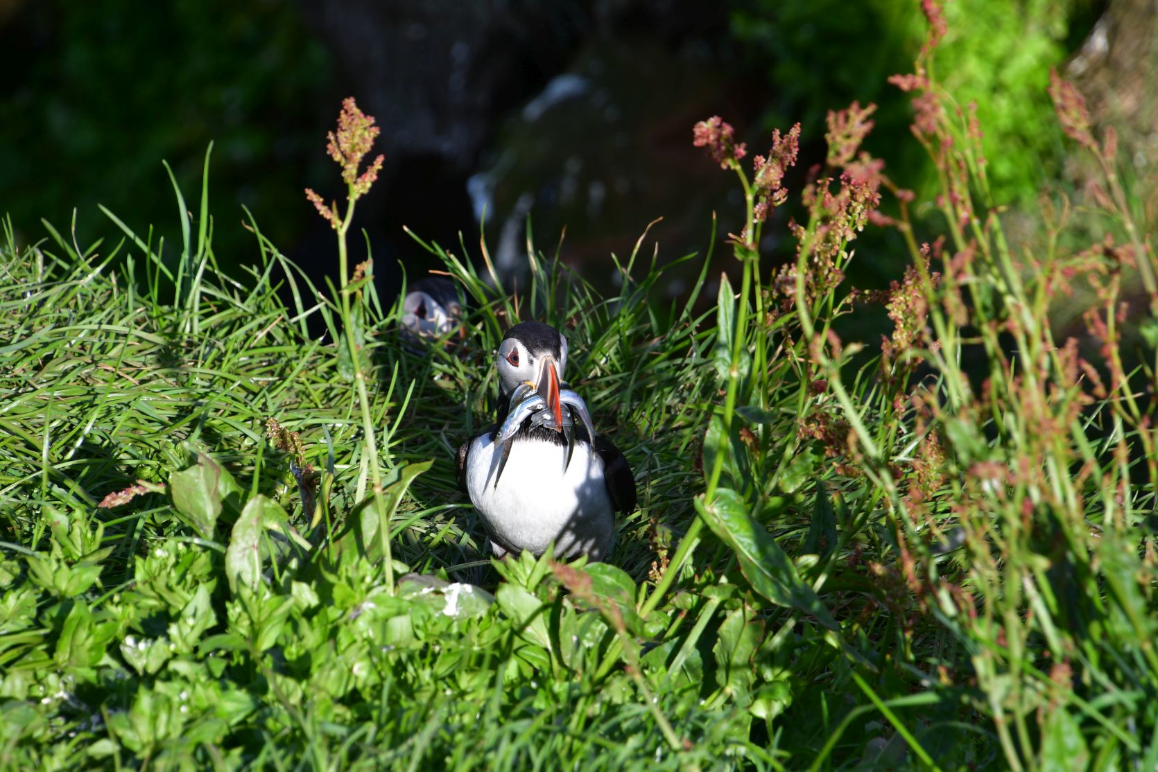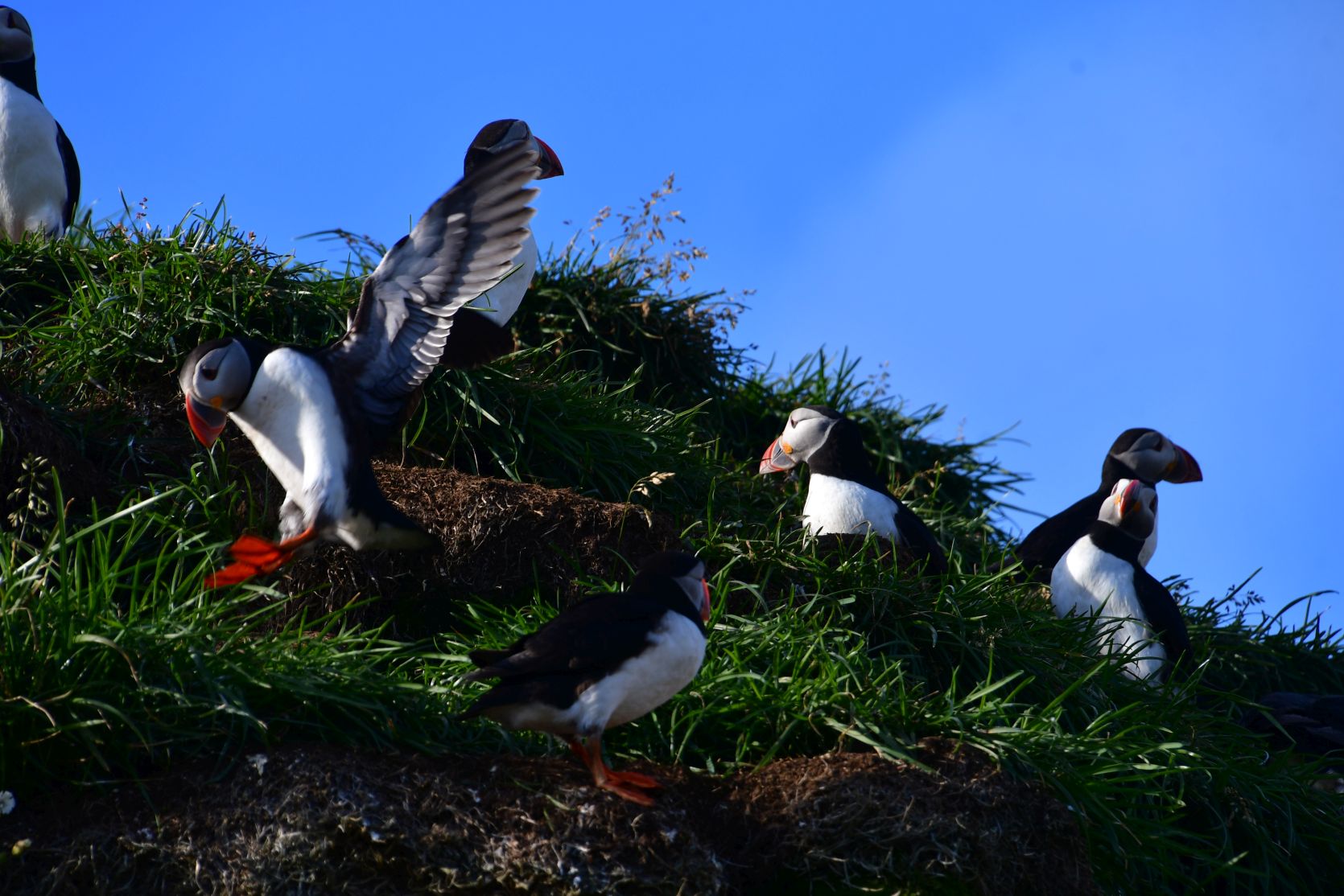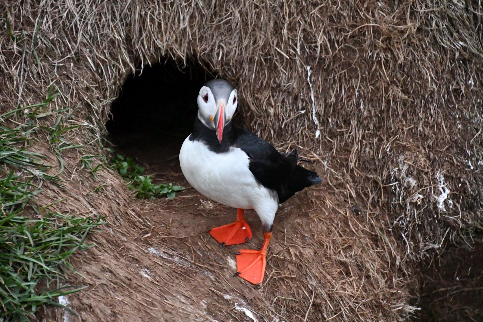 Einige Papageientaucher nahmen offenbar Reparaturarbeiten oder Verschönerungen am Nest vor!