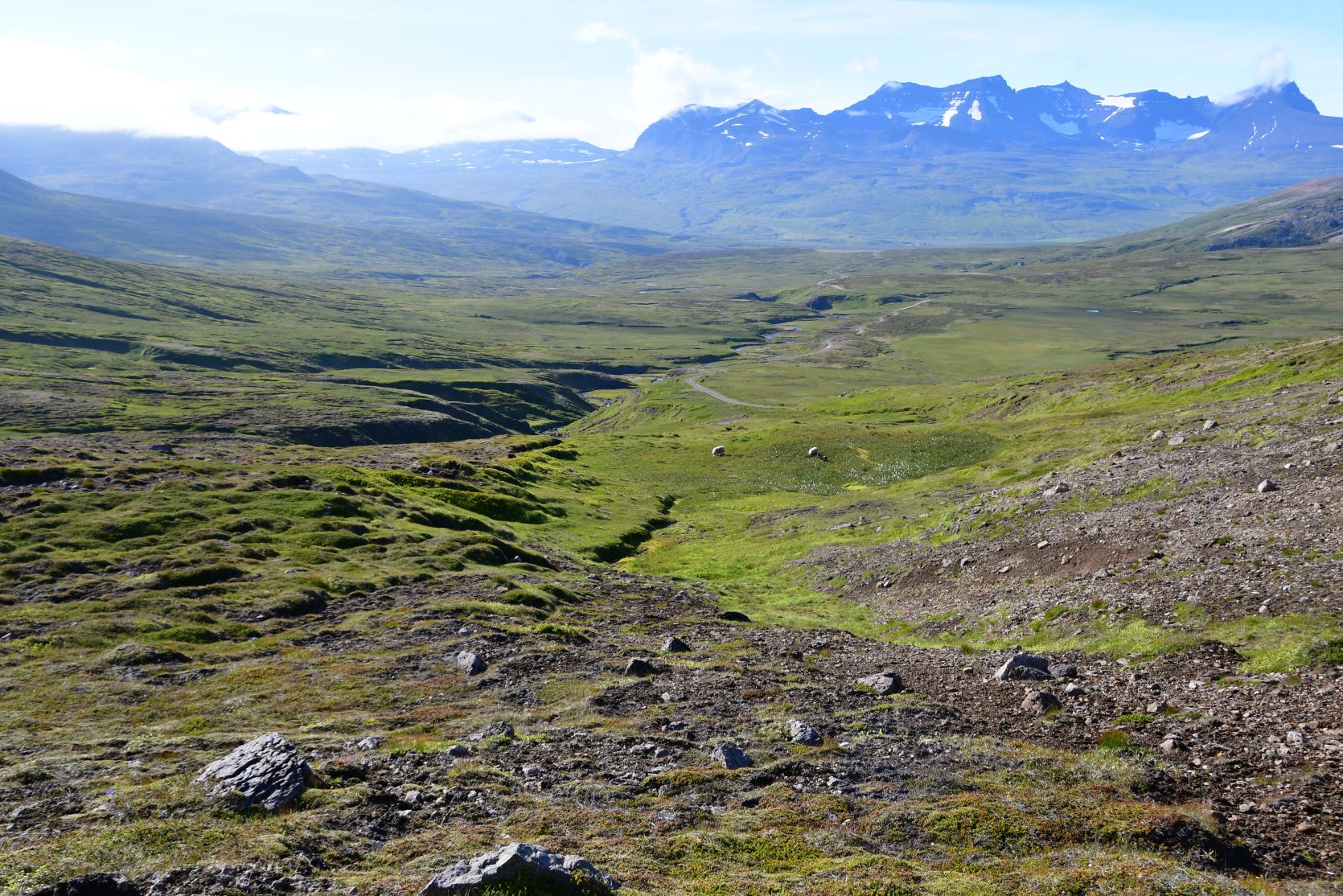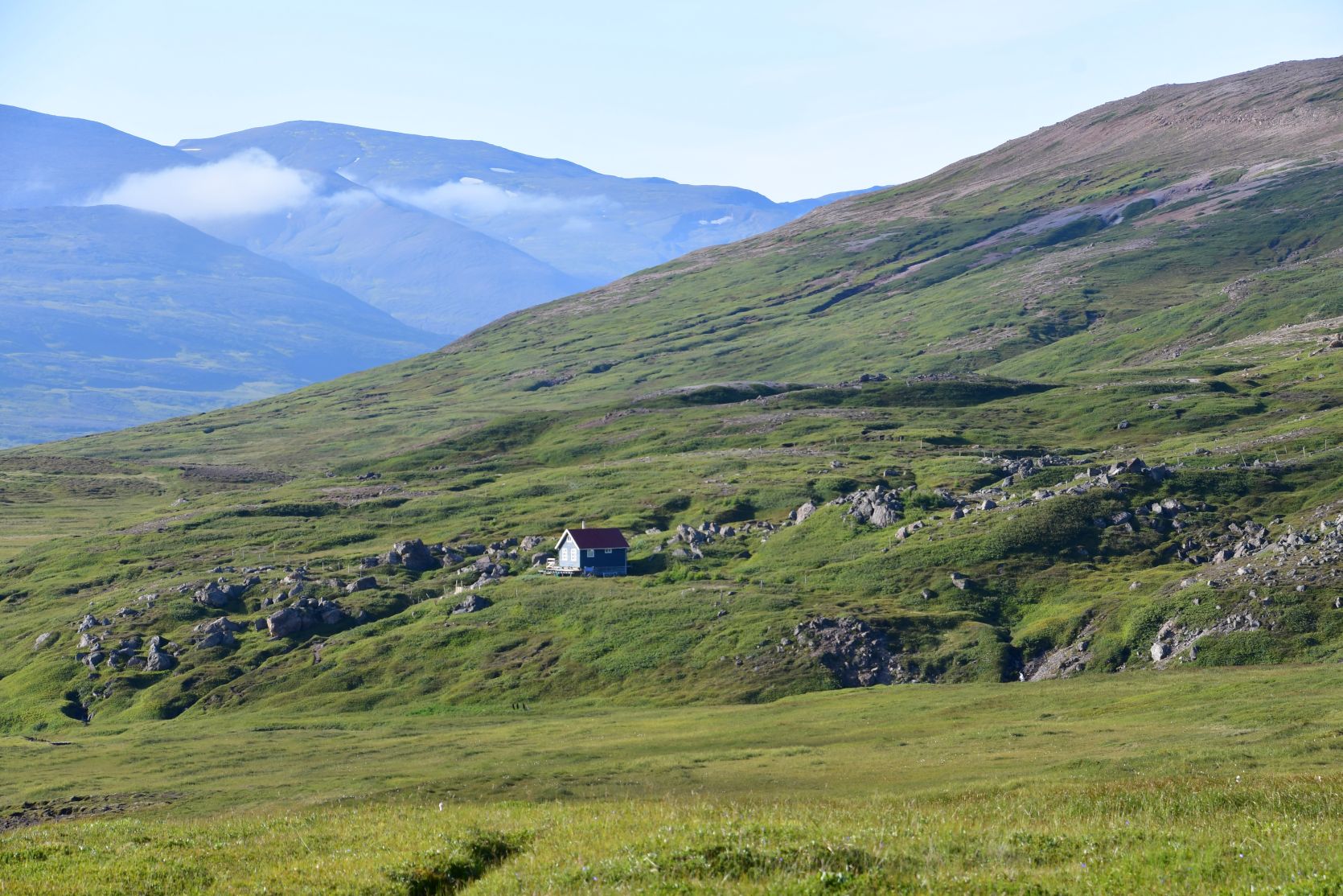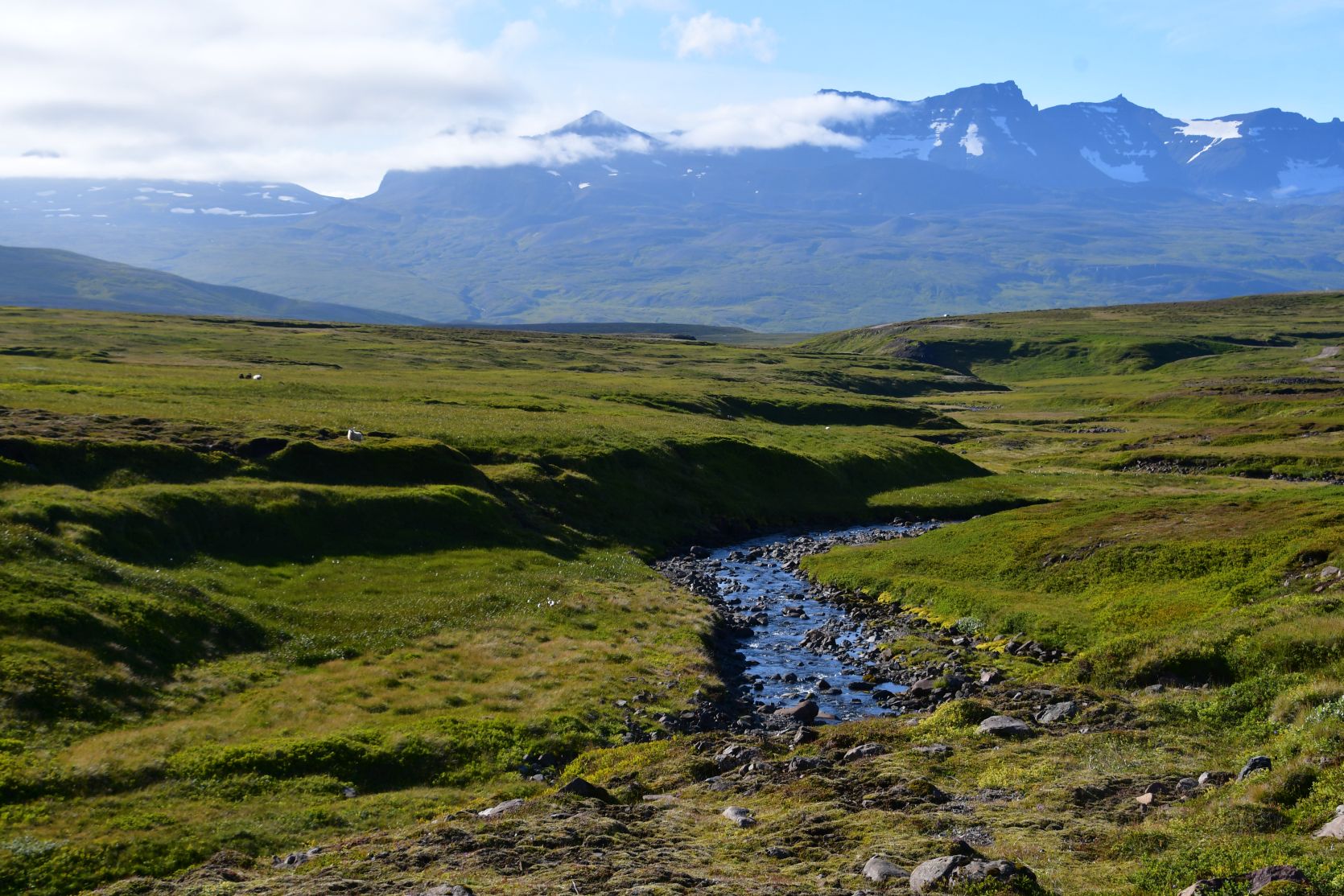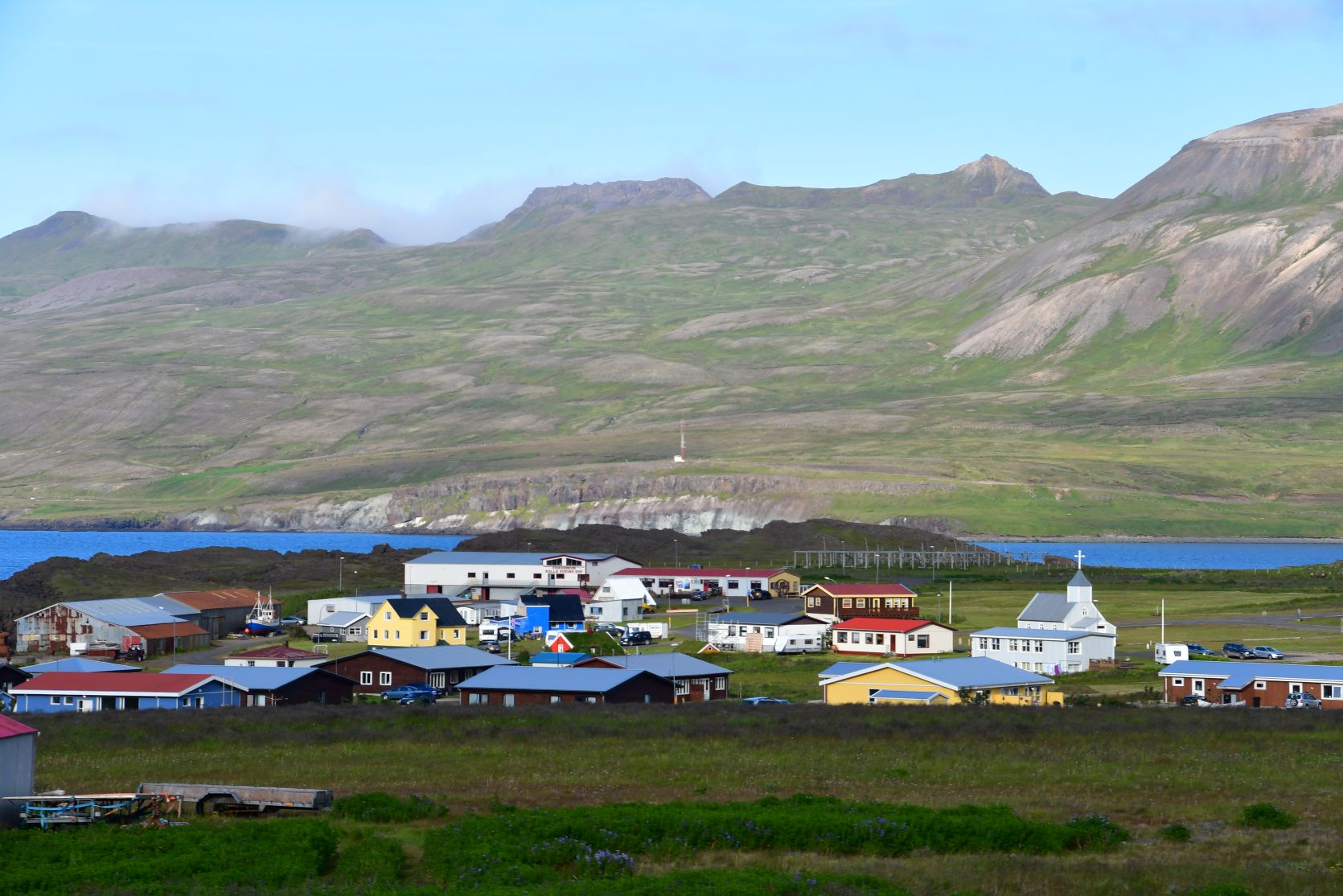 Das Dorf liegt in einem wunderschönen Tal. Die Berge ringsum sind sehr speziell gefärbt, und sie ändern ihr Erscheinungsbild je nach Licht. Wir waren schon ein paarmal dort, und haben verschiedene Wanderungen unternommen. Letztes Jahr wanderten wir über einen Pass nach Brúnavík, und zurück über einen anderen Pass.