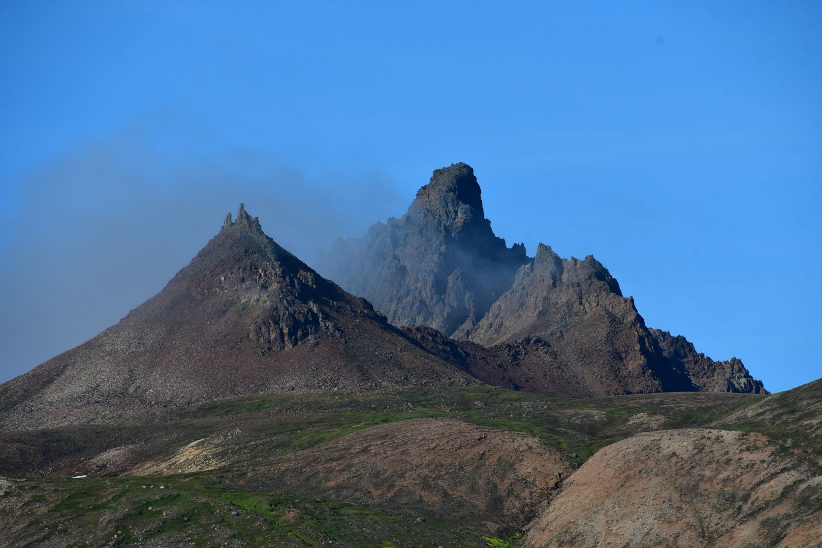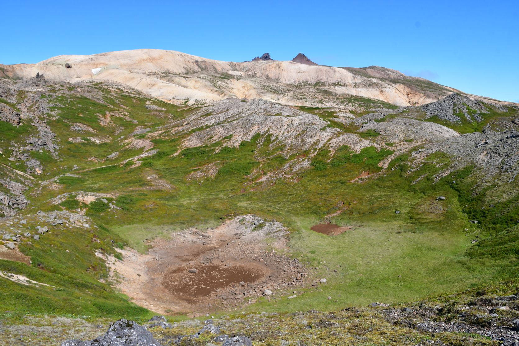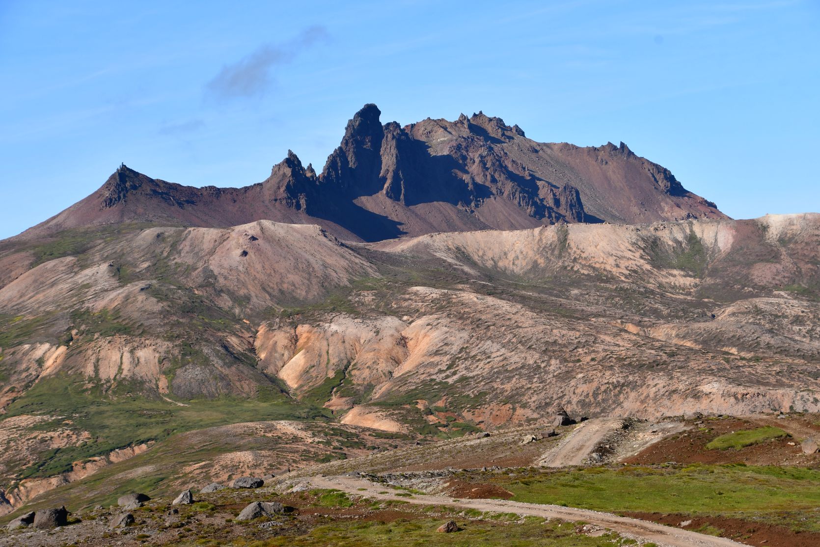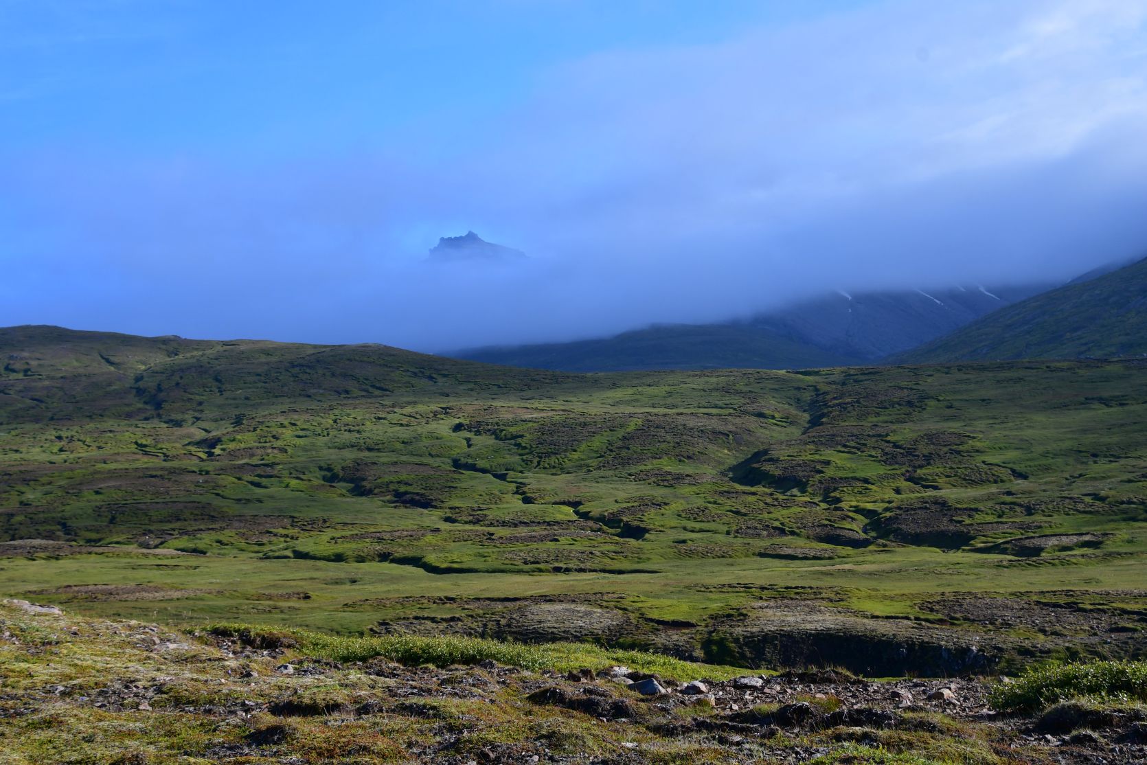 Das Dorf liegt in einem wunderschönen Tal. Die Berge ringsum sind sehr speziell gefärbt, und sie ändern ihr Erscheinungsbild je nach Licht. Wir waren schon ein paarmal dort, und haben verschiedene Wanderungen unternommen. Letztes Jahr wanderten wir über einen Pass nach Brúnavík, und zurück über einen anderen Pass.