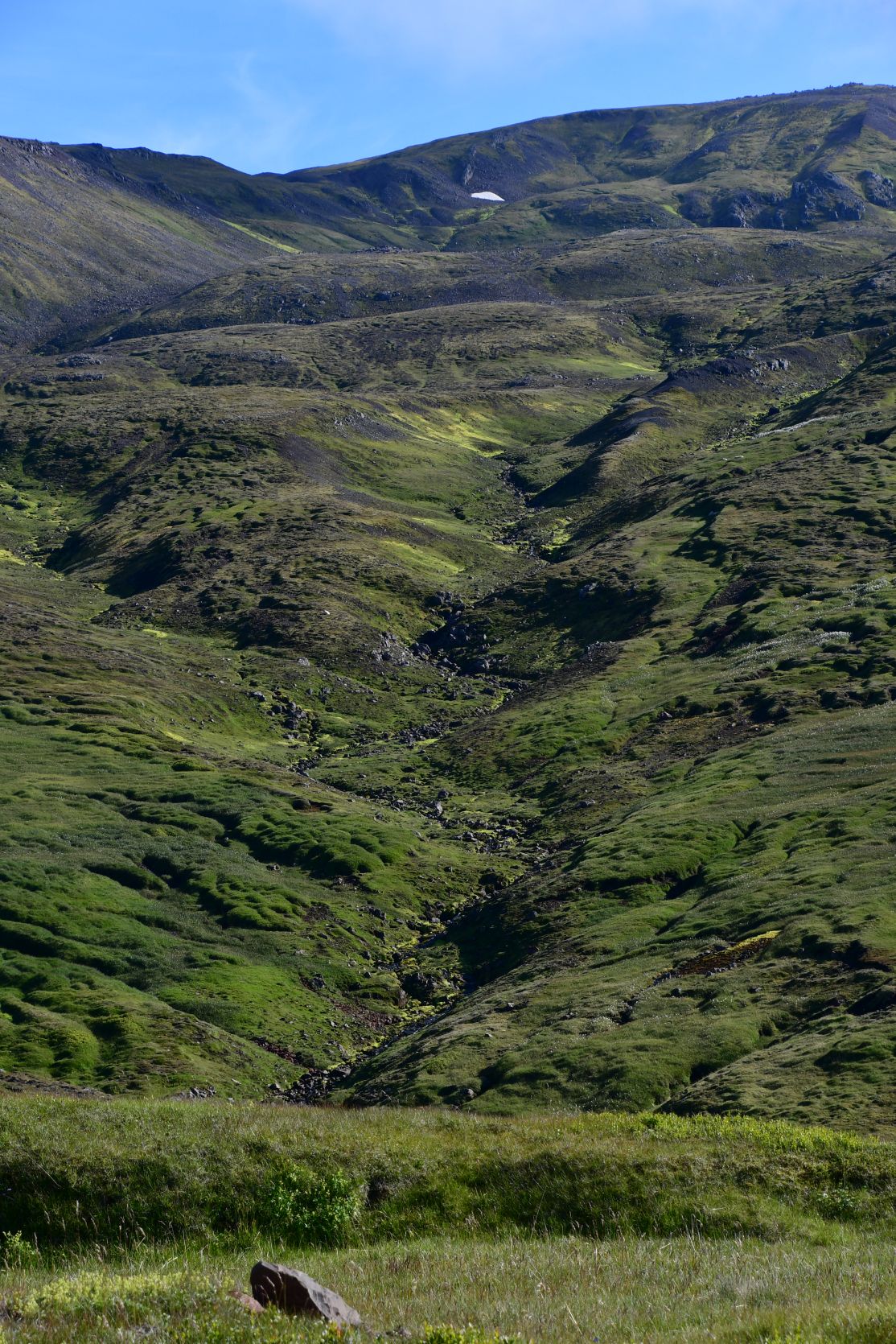 The village lies in a beautiful valley. The mountains around it are coloured quite special, and they change their appearance depending on the light. We’ve been there quite a few times, and done many walks. Last year we walked over a pass down to Brúnavík, and back over another pass.