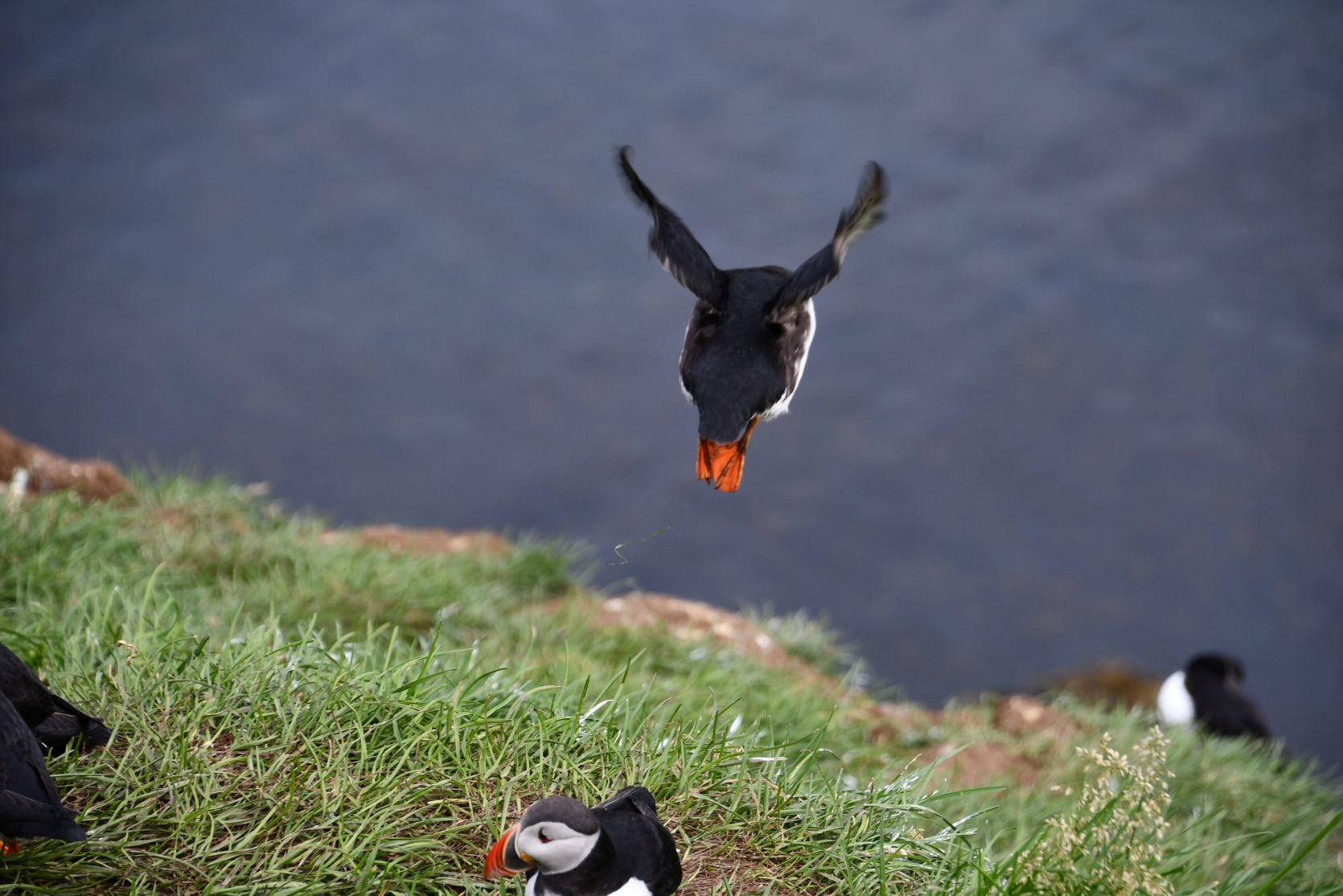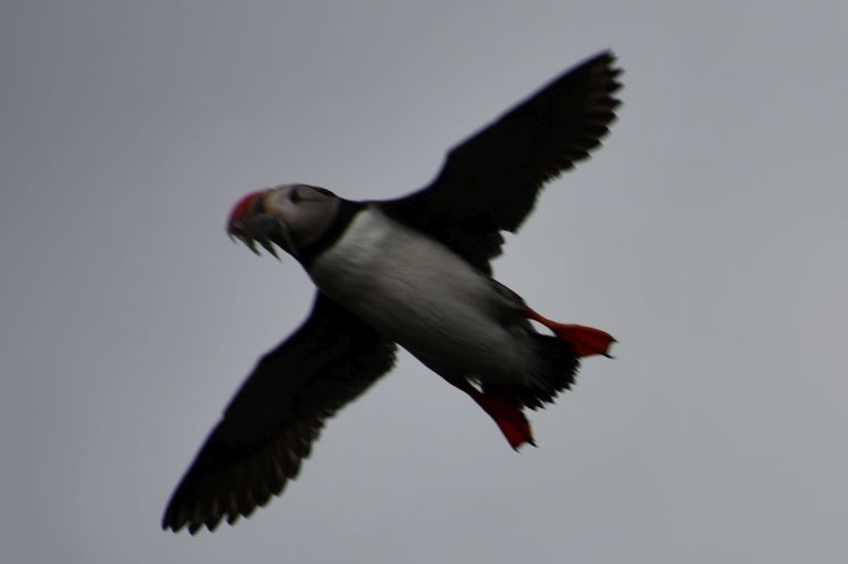 Es war schwierig, fliegende Papageientaucher zu fotografieren.