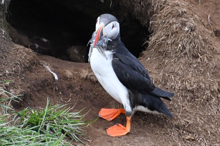 Die Papageientaucher können mehrere Fische aufs Mal in ihrem Schnabel tragen !
