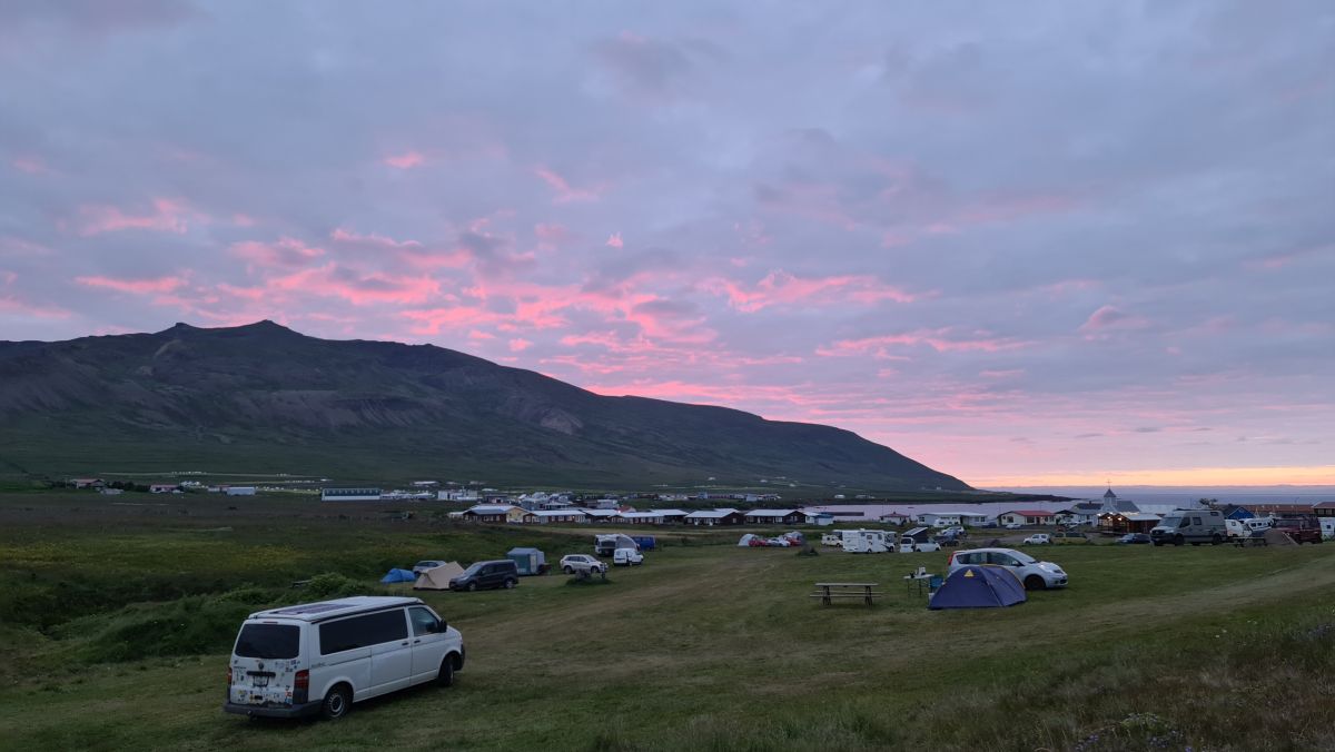 The campsite is beautifully located, next to Álfaborg, a rock believed to be inhabited by elves.
