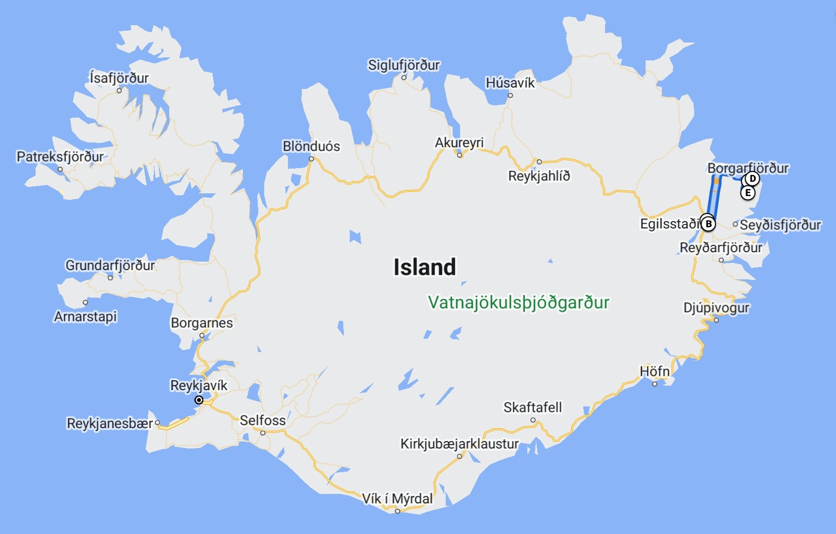 Borgarfjördður eystri ist ein kleines Dorf mit nur einem Laden, mit einem schönen Wandbild an der Front 🙂 Der Shop ist nur sporadisch offen. Falls man ausserhalb der Öffnungszeiten etwas braucht, muss man auf eine bestimmte Telefonnummer anrufen!