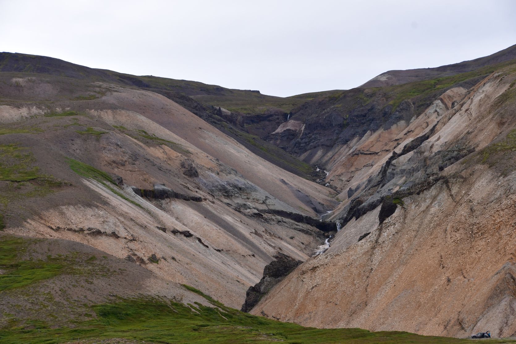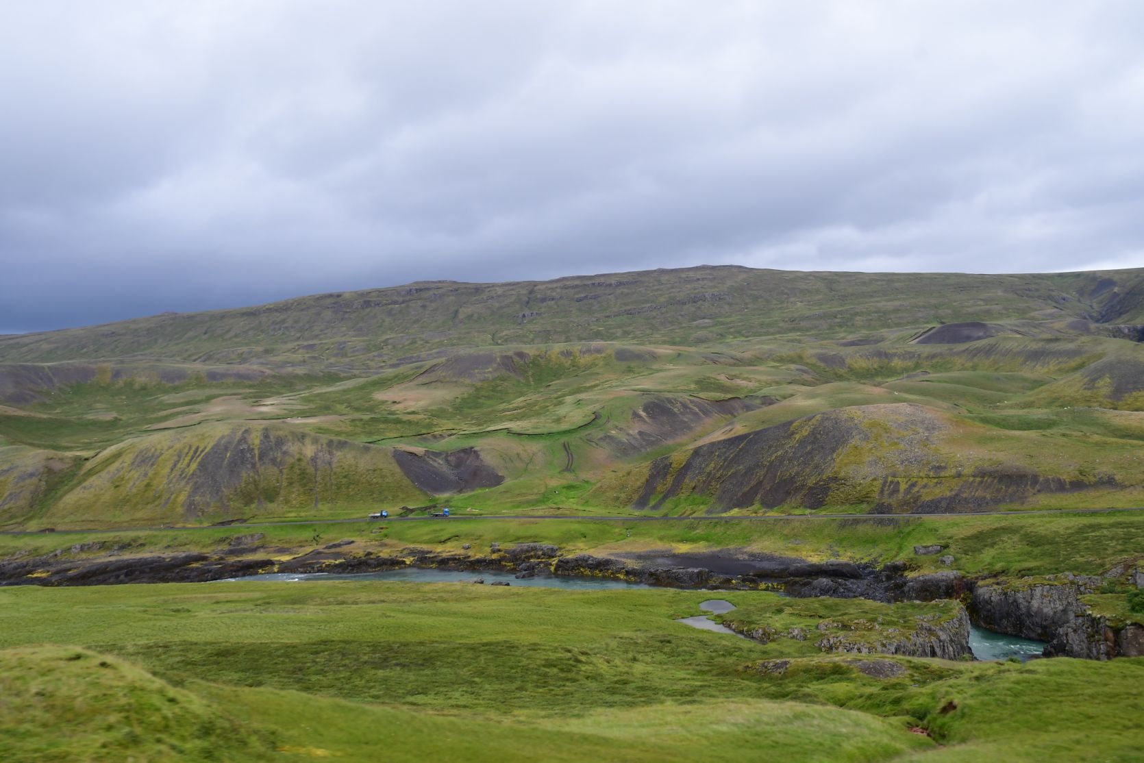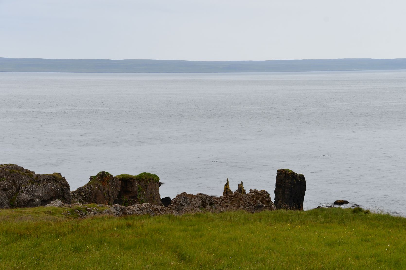 Die Küste vor Vopnafjörður ist sehr interessant, mit Felsnadeln und dem Wasserfall Gljúfursárfoss. Letztes Jahr verbrachten wir eine Weile dort, deshalb liessen wir diesen Küstenabschnitt diesmal links liegen.
