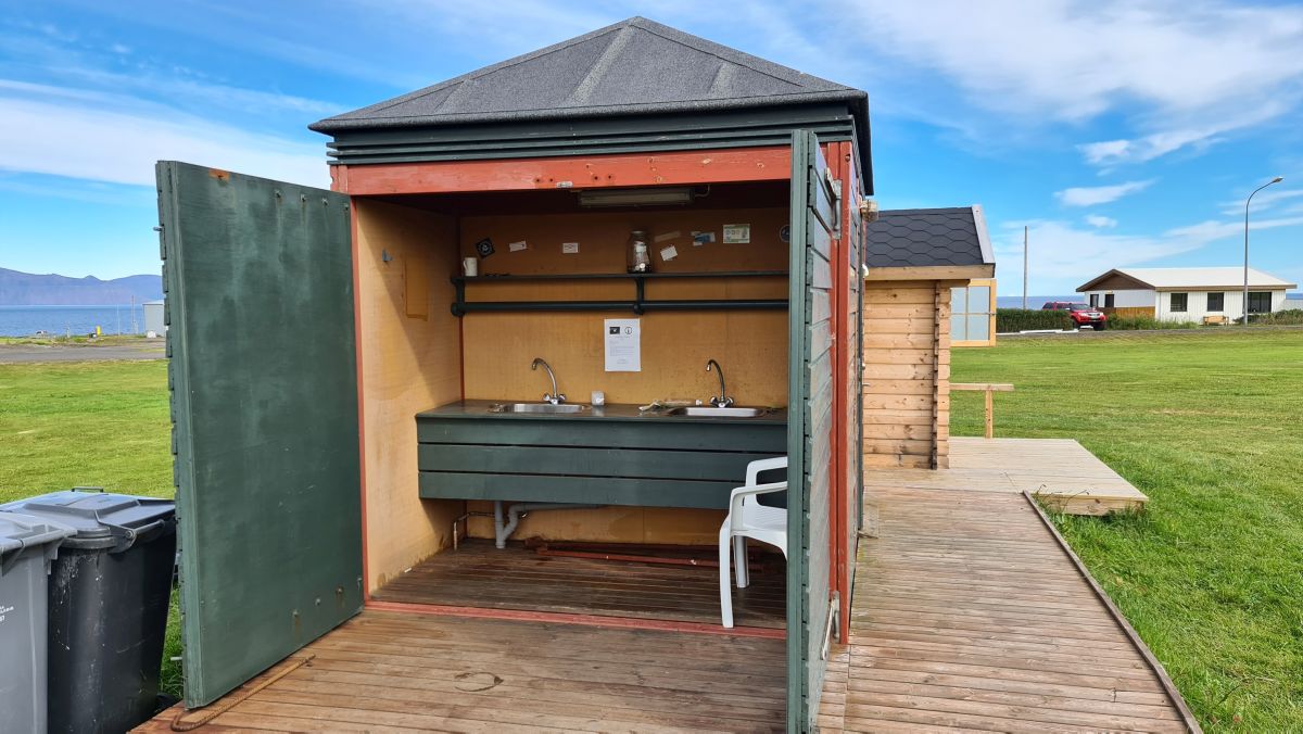 The campsite is very basic. Apparently there was a festival not long ago, and the lovely new hut with the shower was destroyed by drunks! Obviously that can also happen in Iceland…