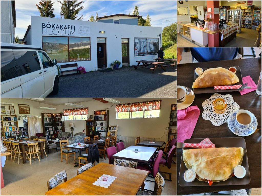 We drove north again, with a stop in Fellabær (next to Egilsstaðir). Our favourite café is there, the Bókakaffi. This time we had a delicious pancake, with filling of our choice! Two very friendly sisters own this place, and apart from the wonderful food the interior is really special, with lots of books 🙂