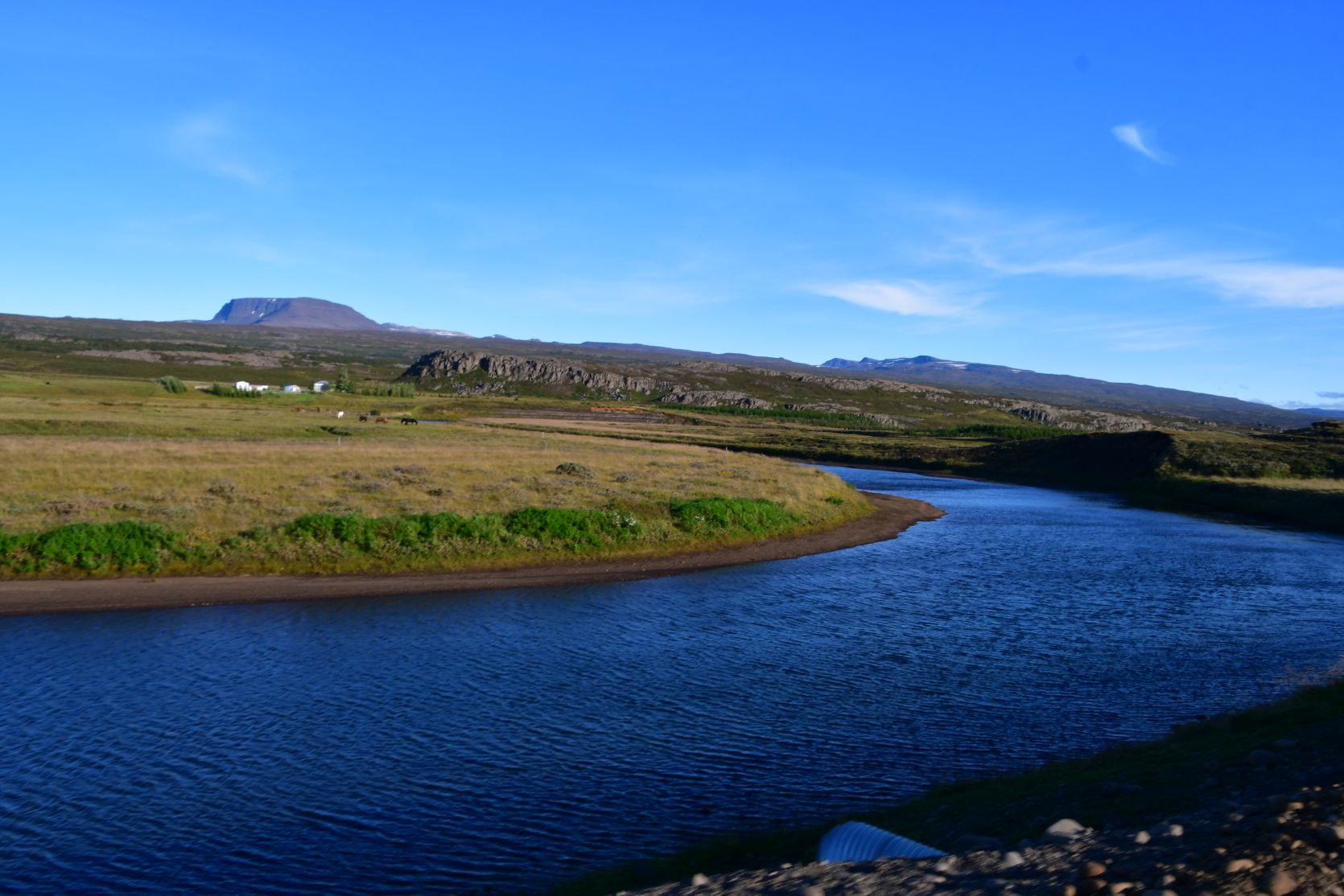 Wir fuhren gegen Norden, mit einem Halt in unserem Lieblingscafé, dem Bókakaffi in Fellabær (neben Egilsstaðir). Diesmal genossen wir einen wunderbaren Pfannkuchen mit selbst gewählter Füllung!