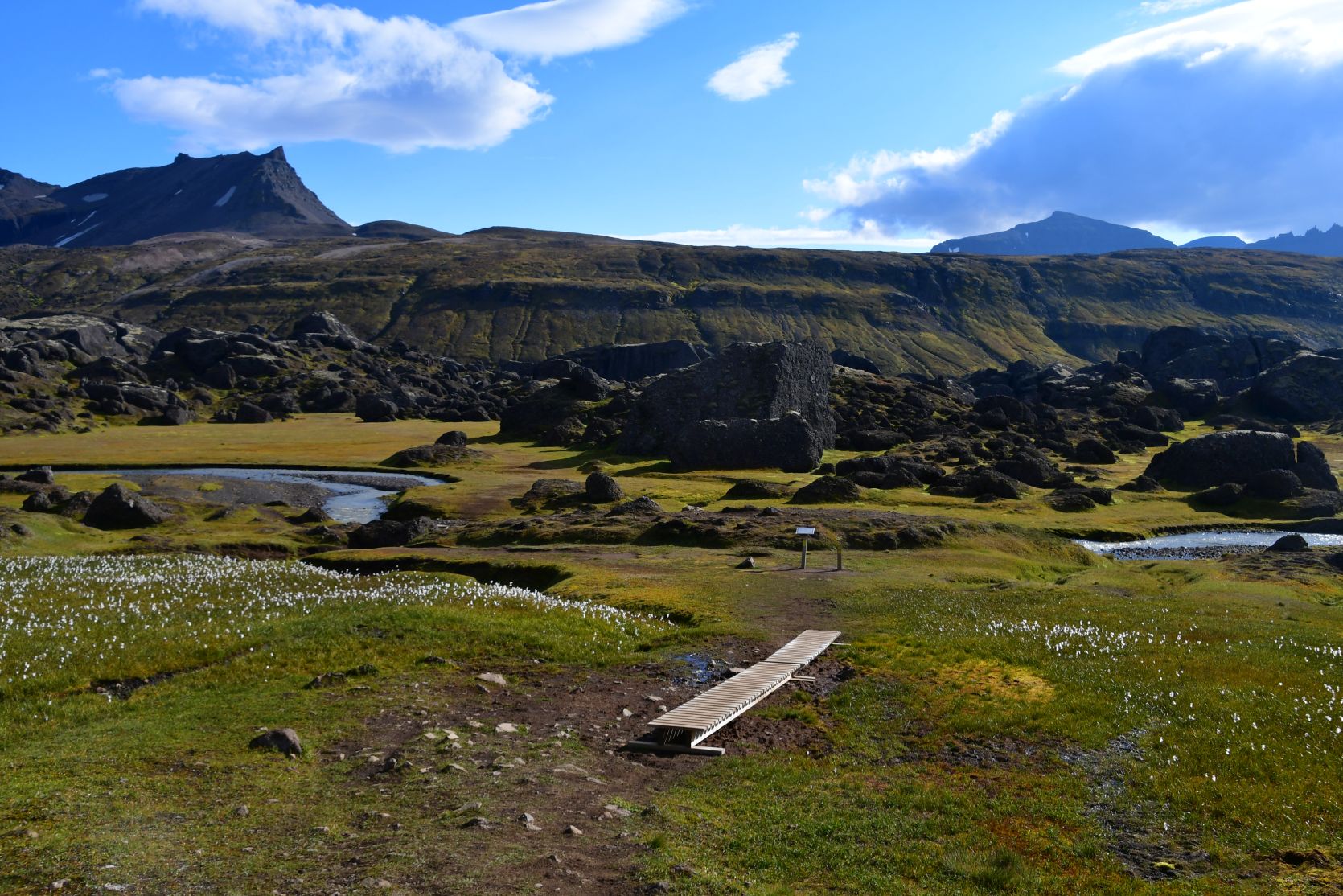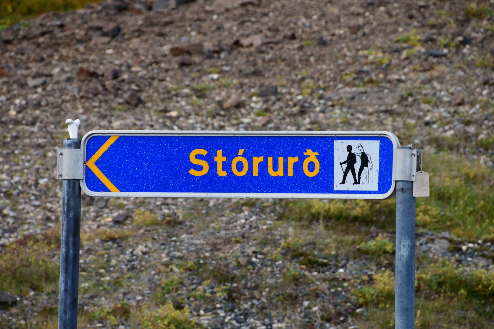 The next day the weather was just right for the hike to Stórurð. The signpost had been slightly modified 😉 We walked up from Njarðvík.