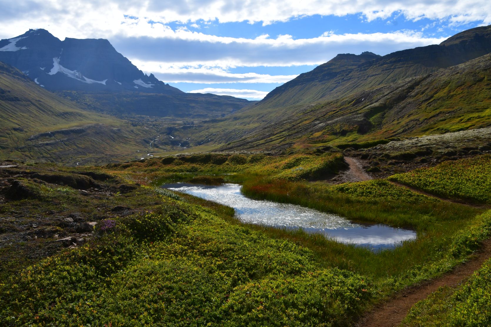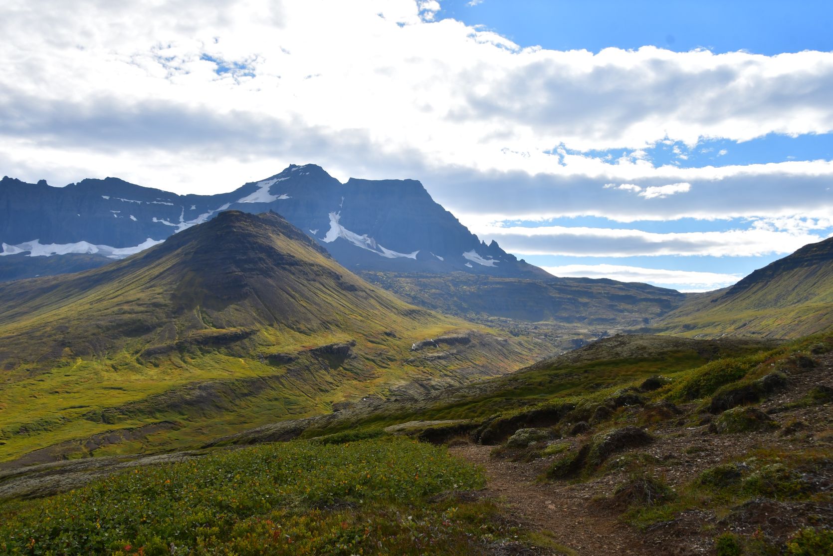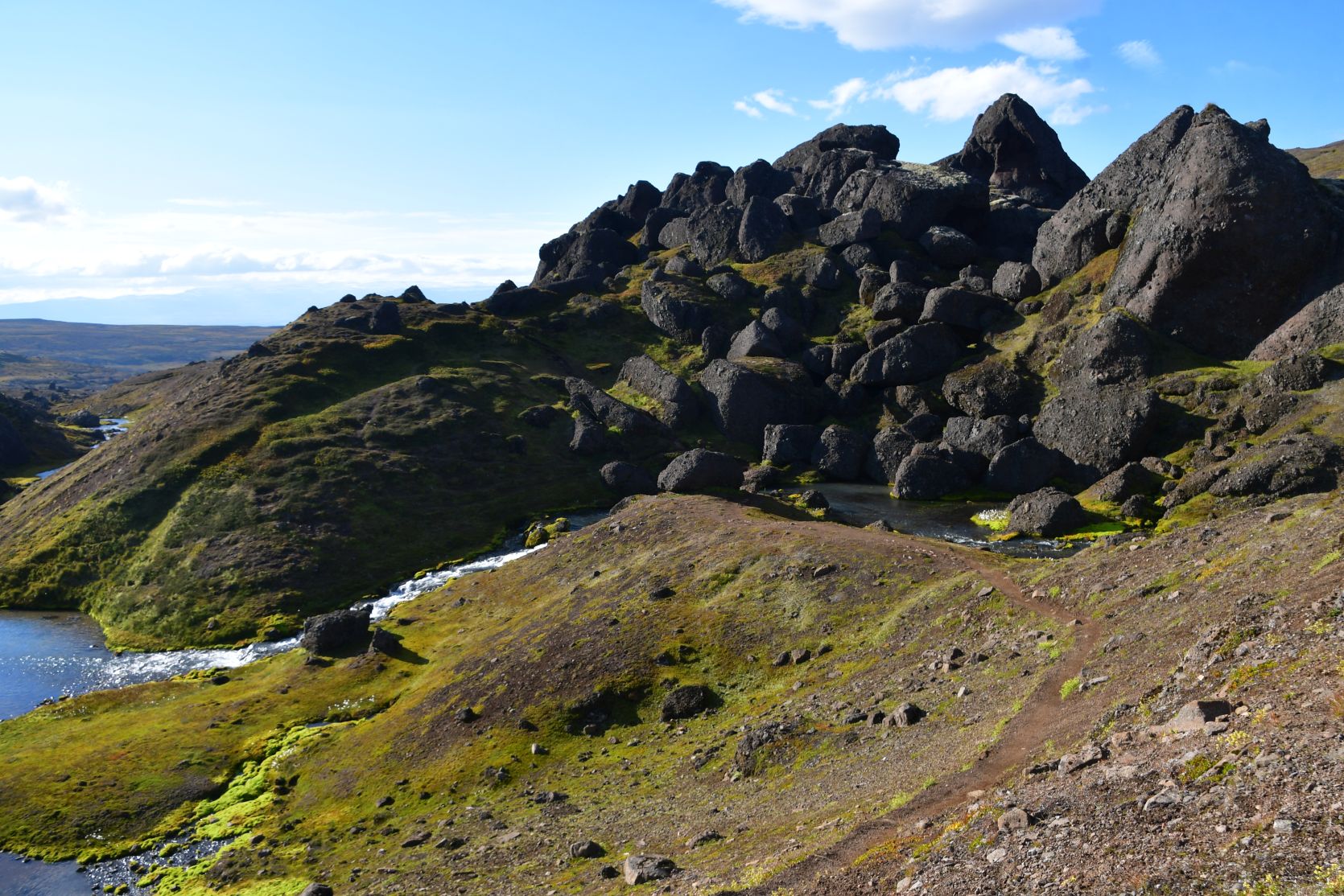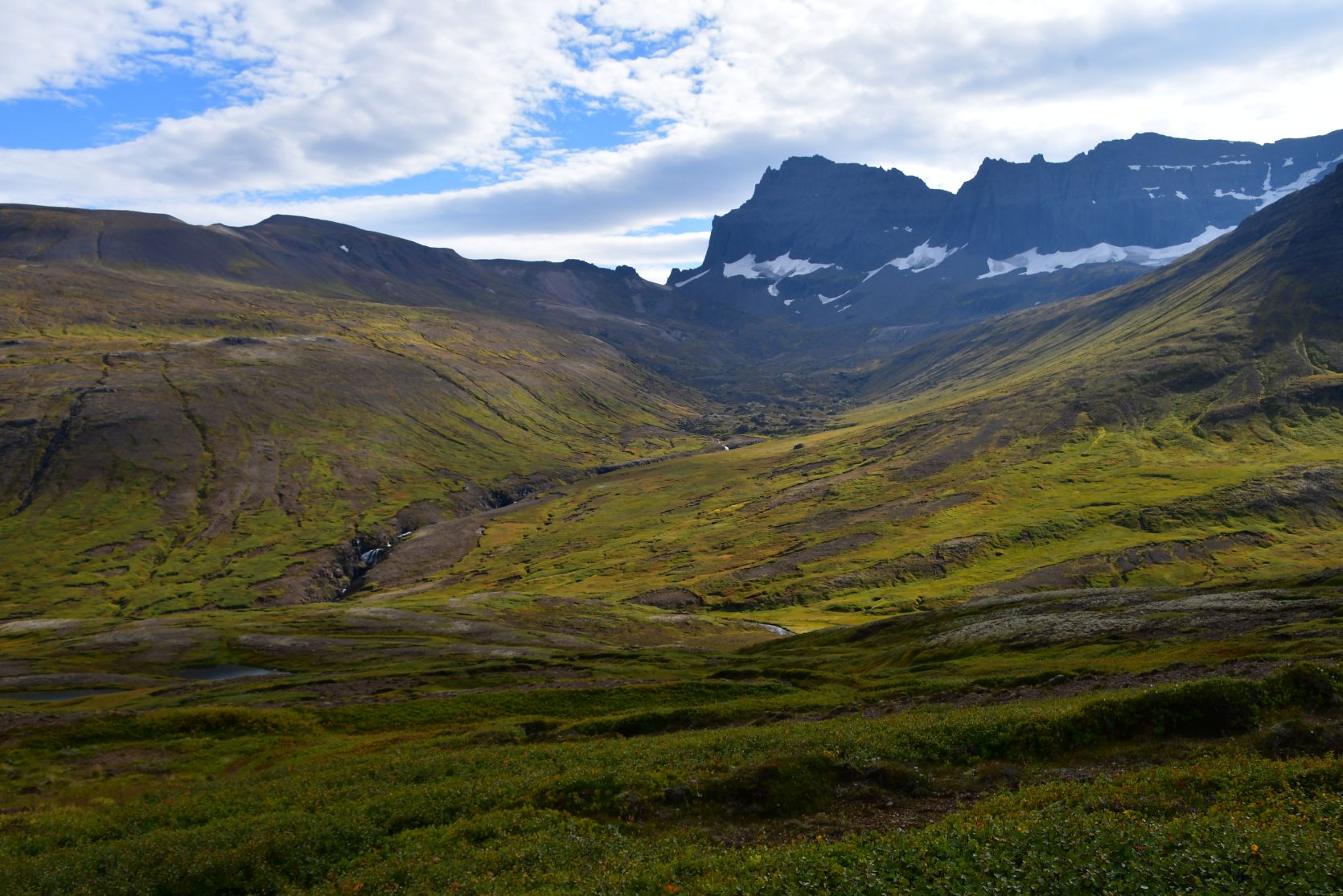 We could see Stórurð from far away, below the snowfields.