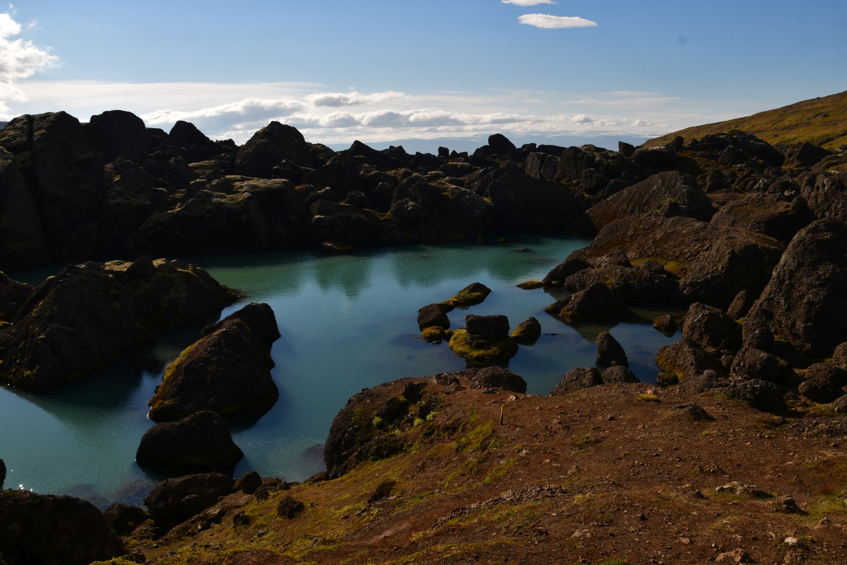 We had to drive over a pass. There are two little huts, one with a loo and the other one with information. The view from up there is brilliant.