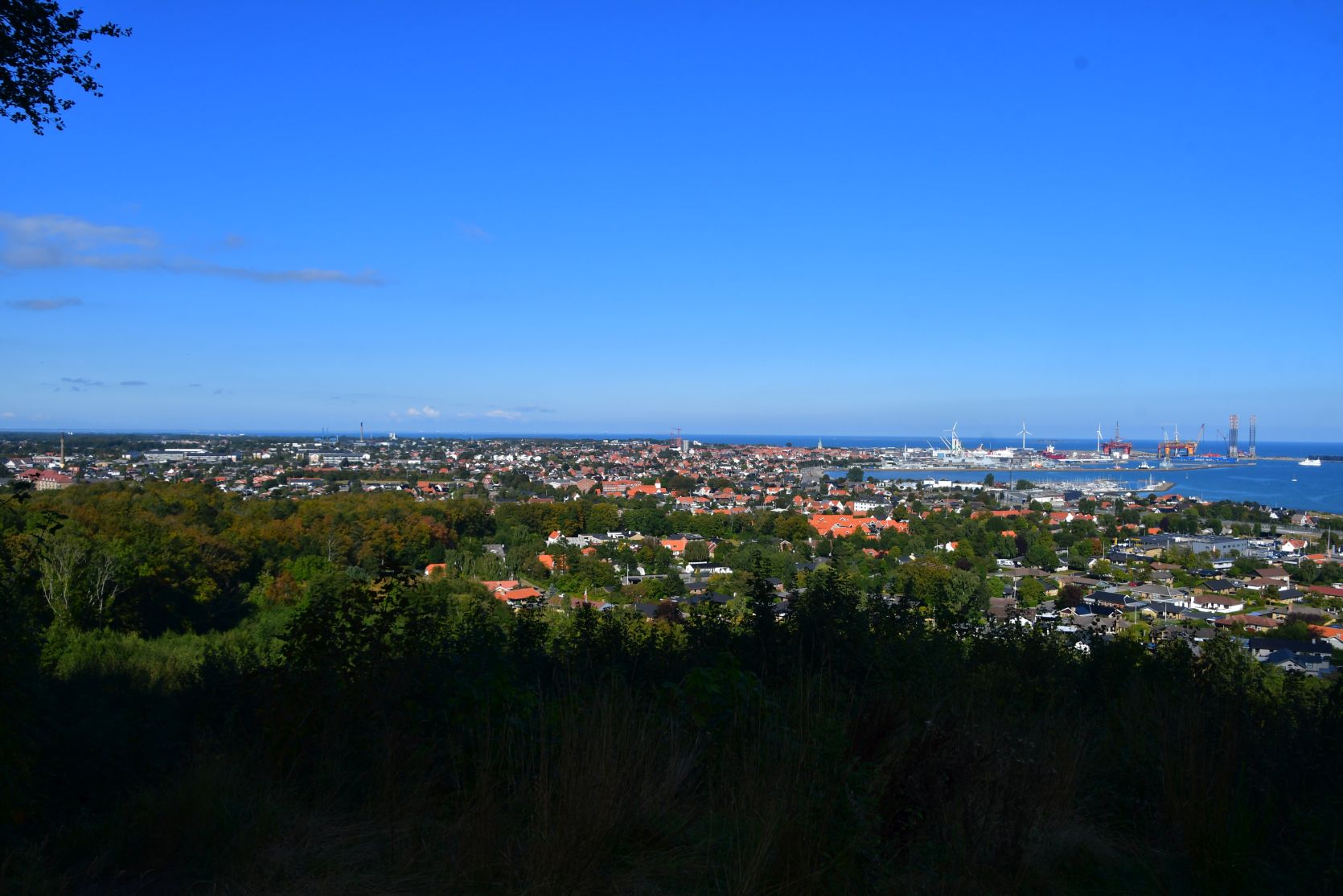 The Marguerite Route is a scenic route through Denmark. We drove along it past Frederikshavn to Pikkerbakken. Bangsbo Fort ist on this hill, and a viewing platform with a fantastic view of Frederikshavn and the Kattegat.