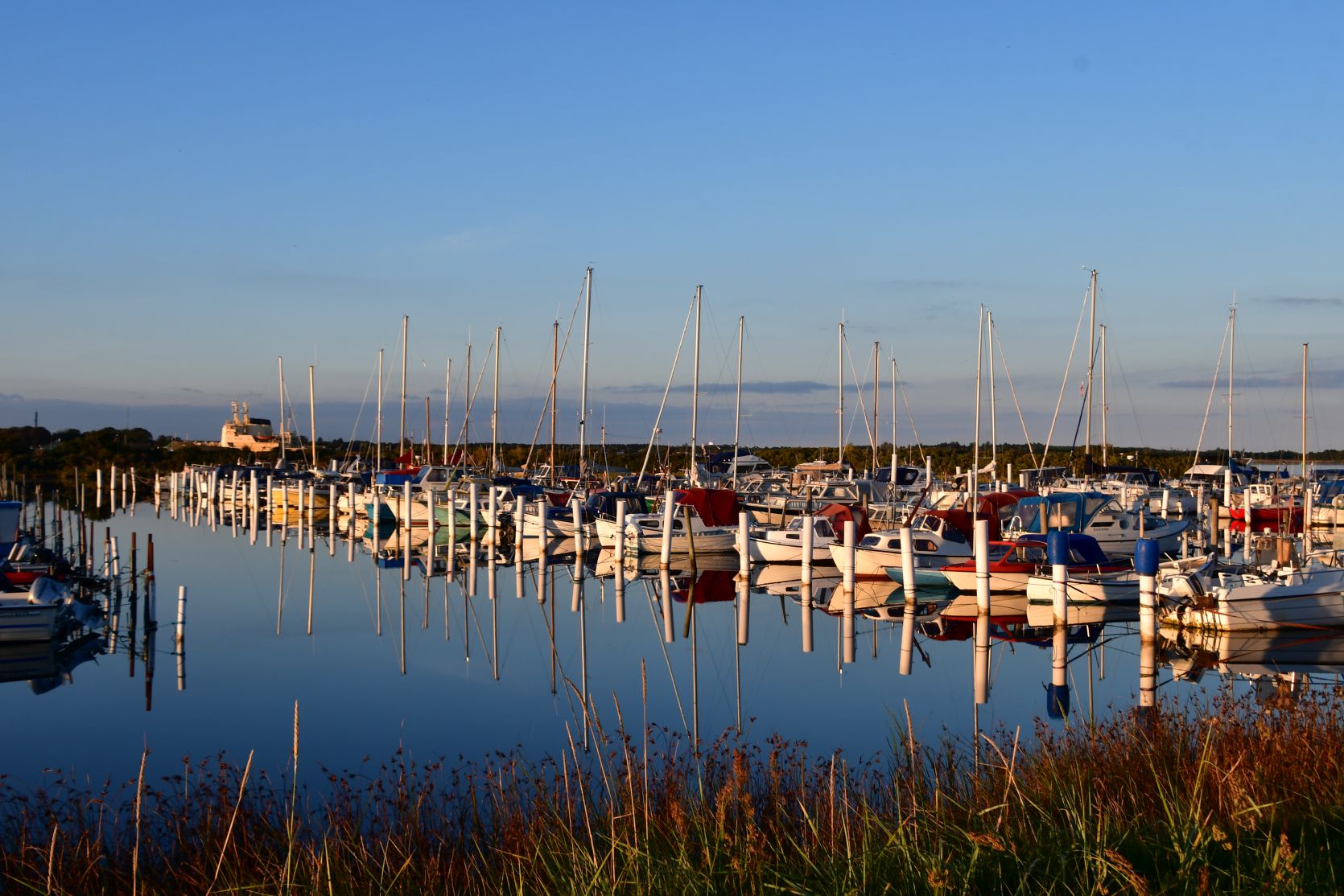In Dänemark übernachteten wir oft an Häfen. Die Infrastruktur (Duschen und WC) ist dort meistens sehr gut.