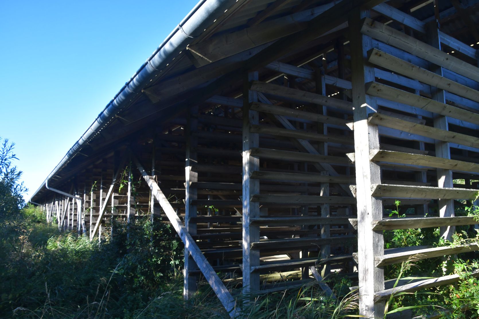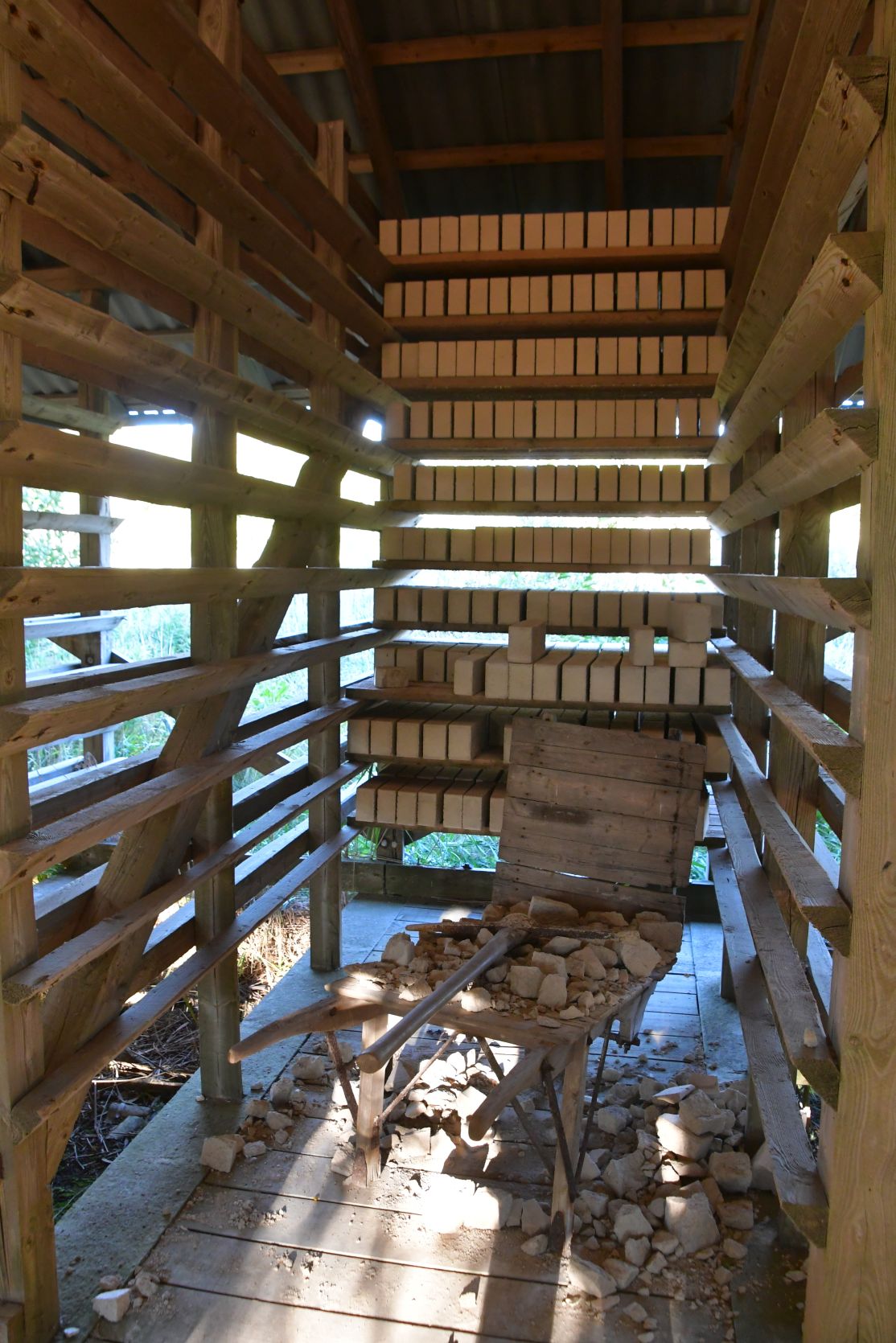The drying barn, nearly 200 metres long, was used to wind-dry mo-clay bricks. To this day mo-clay is used for catlit !