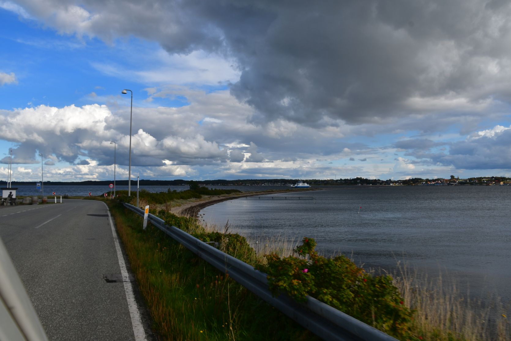 We left Mors over a long bridge and later crossed part of the Limfjord with a ferry from Sundsøre to Hvalpsund.