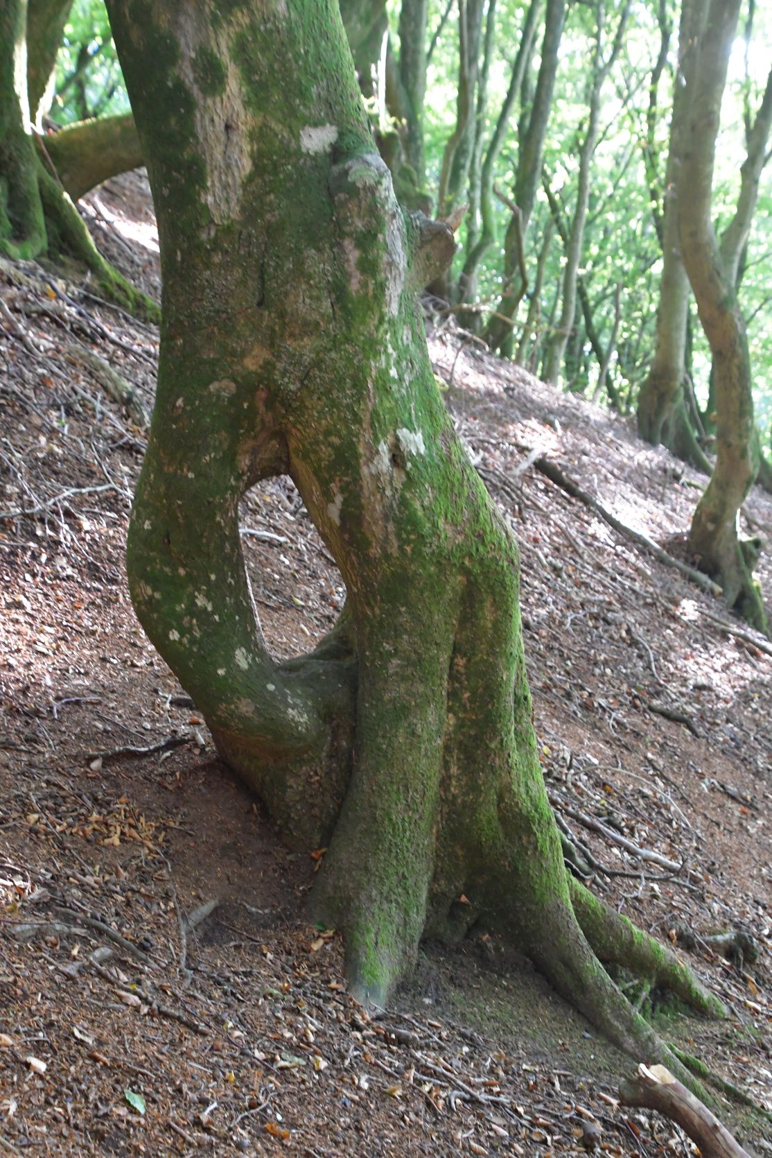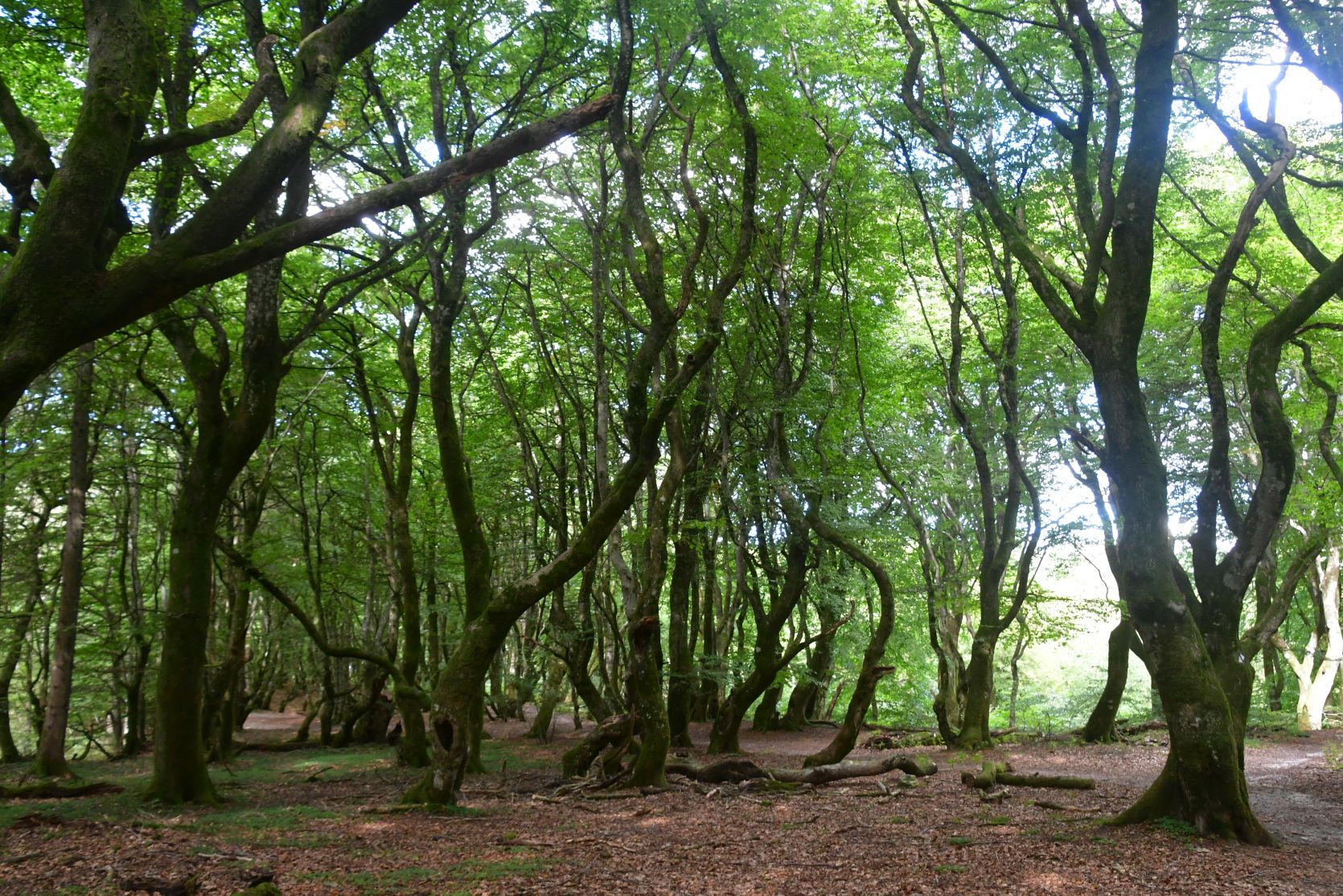 Troldeskoven (Trollwald) mit vielen krummen und knorrigen Bäumen.
