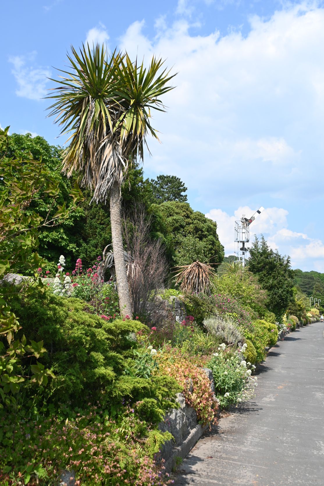 Es gibt eine schöne Promenade mit vielen Blumen.