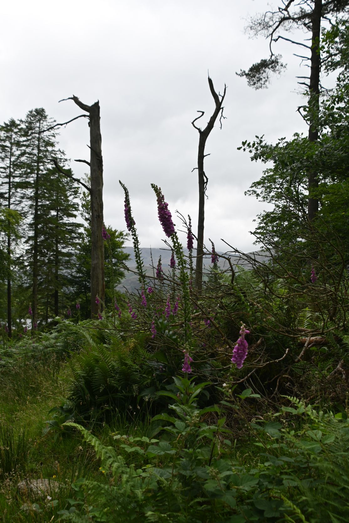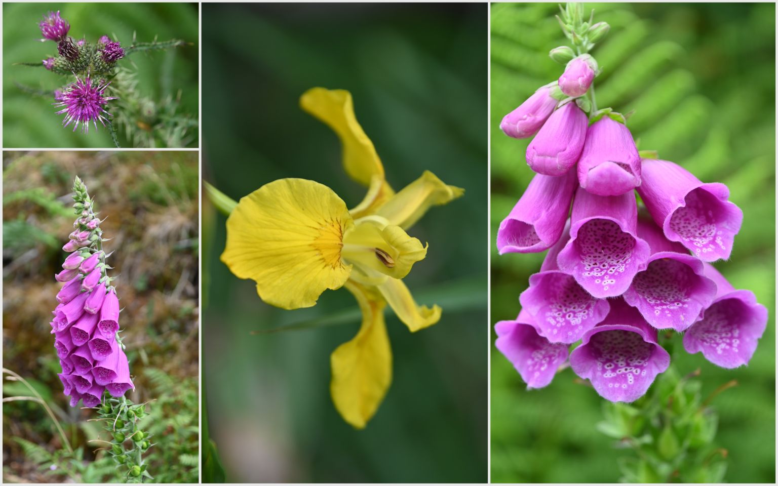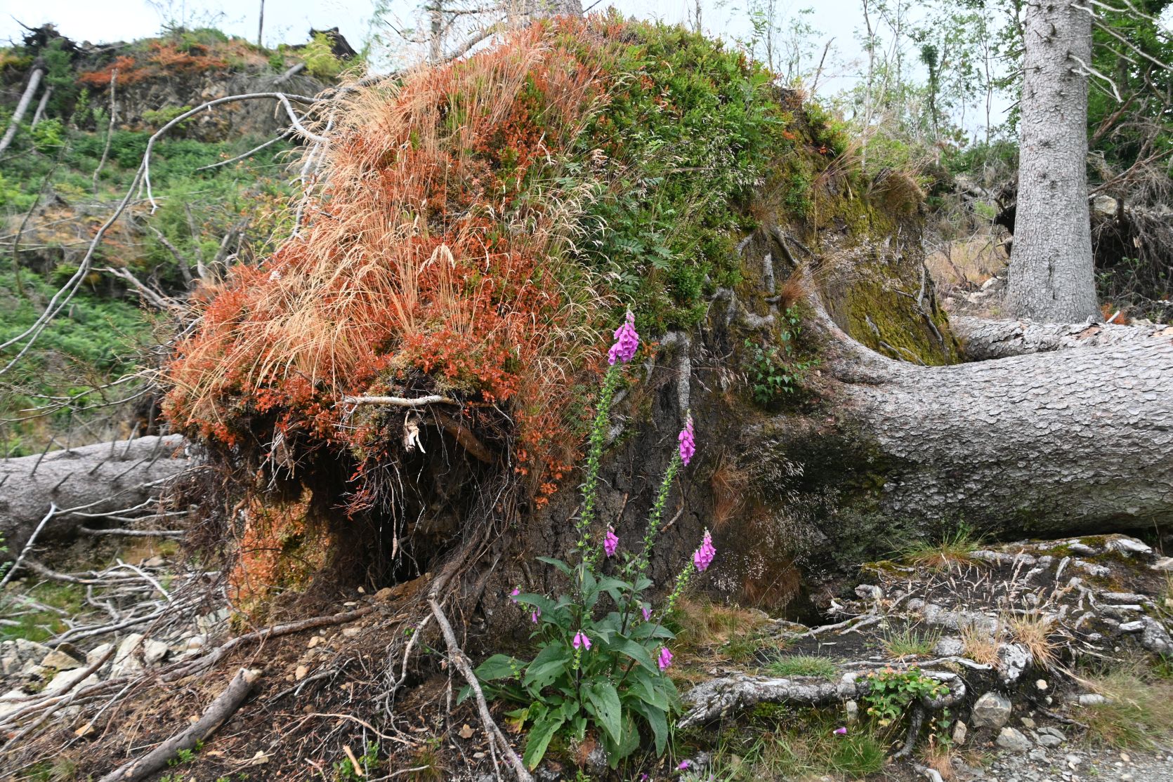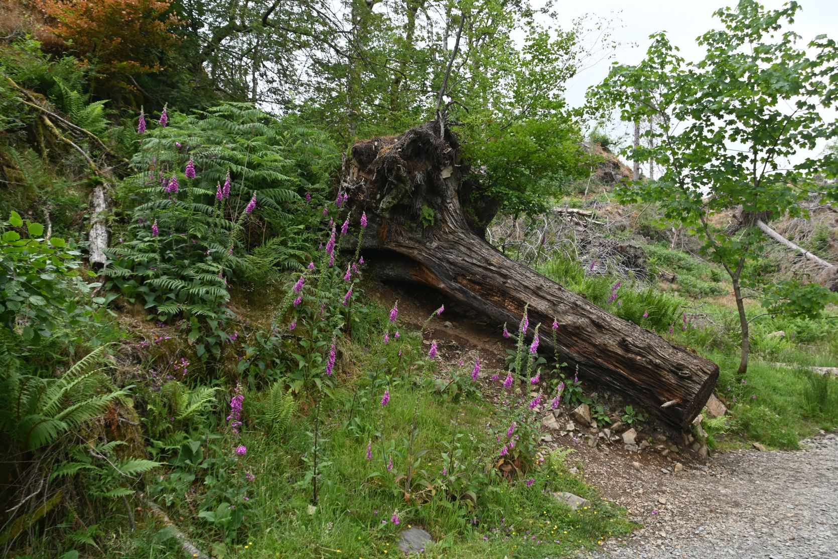 Es gab viele Blumen und Farn und umgefallene Bäume.