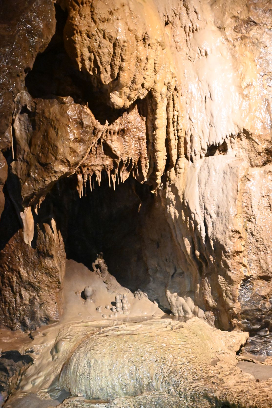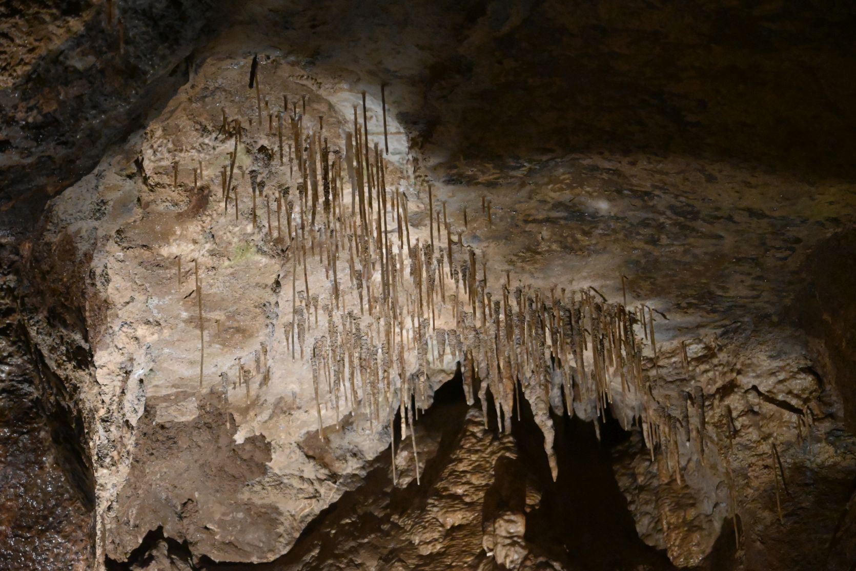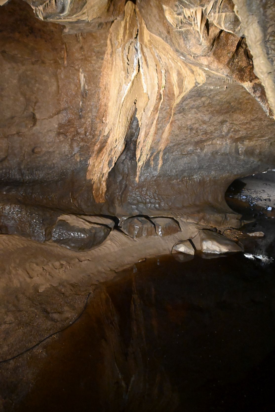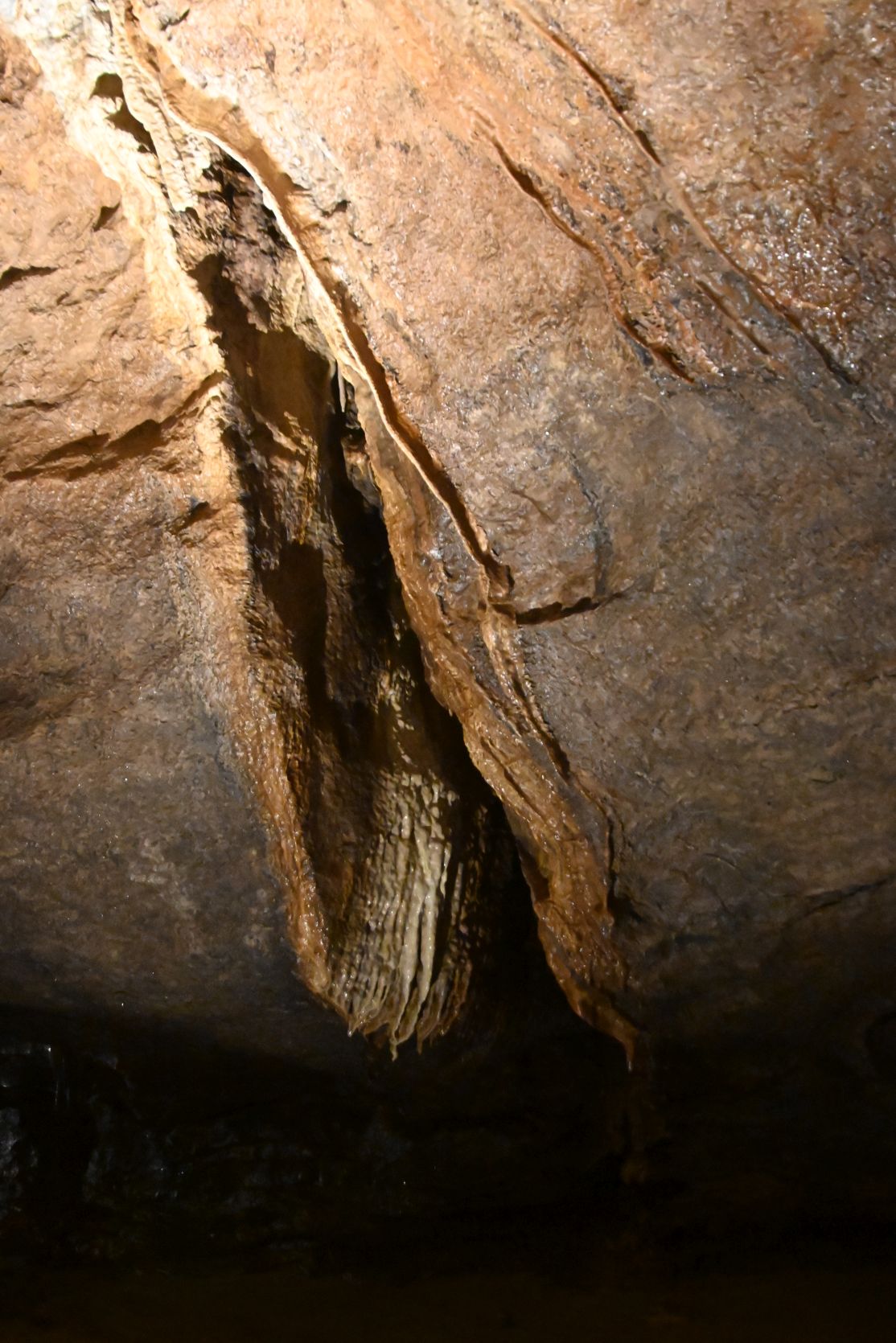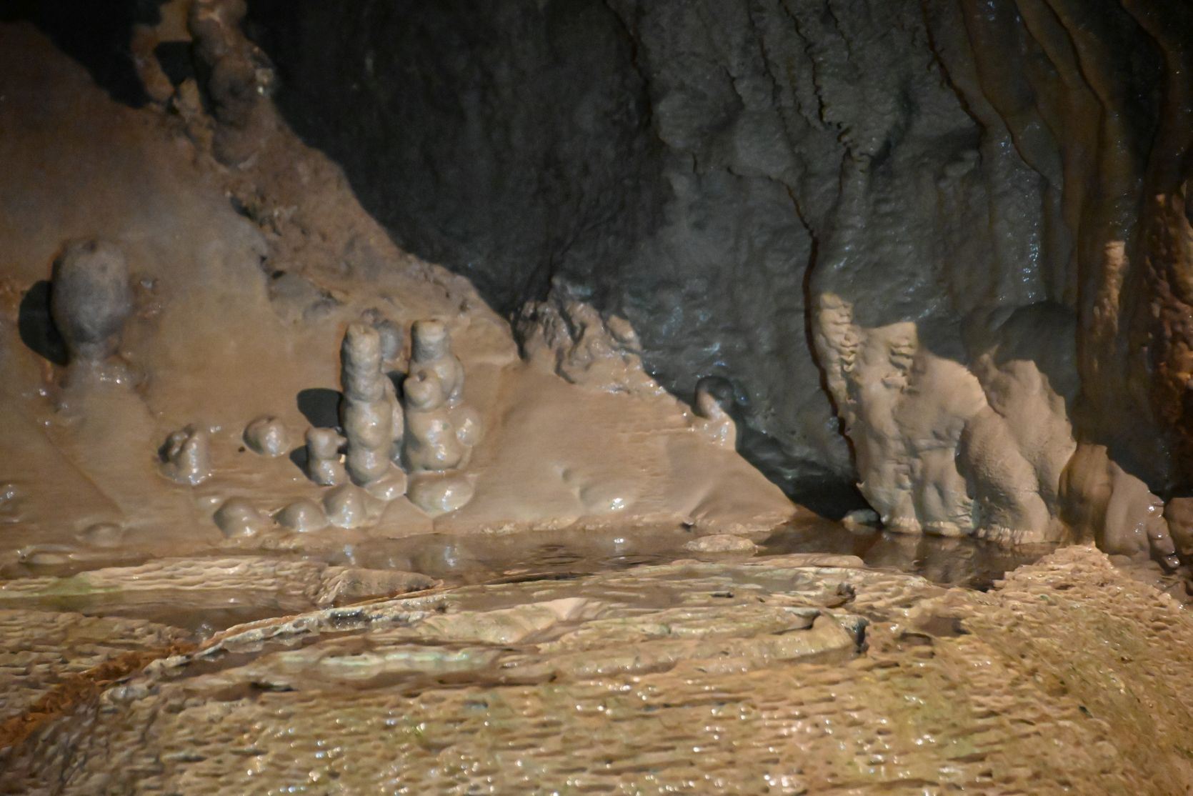 Es gibt nur ganz wenige Stalagmiten. Offenbar fliesst zu viel Wasser durch die Höhlen, welches die Stalagmiten zerstört.