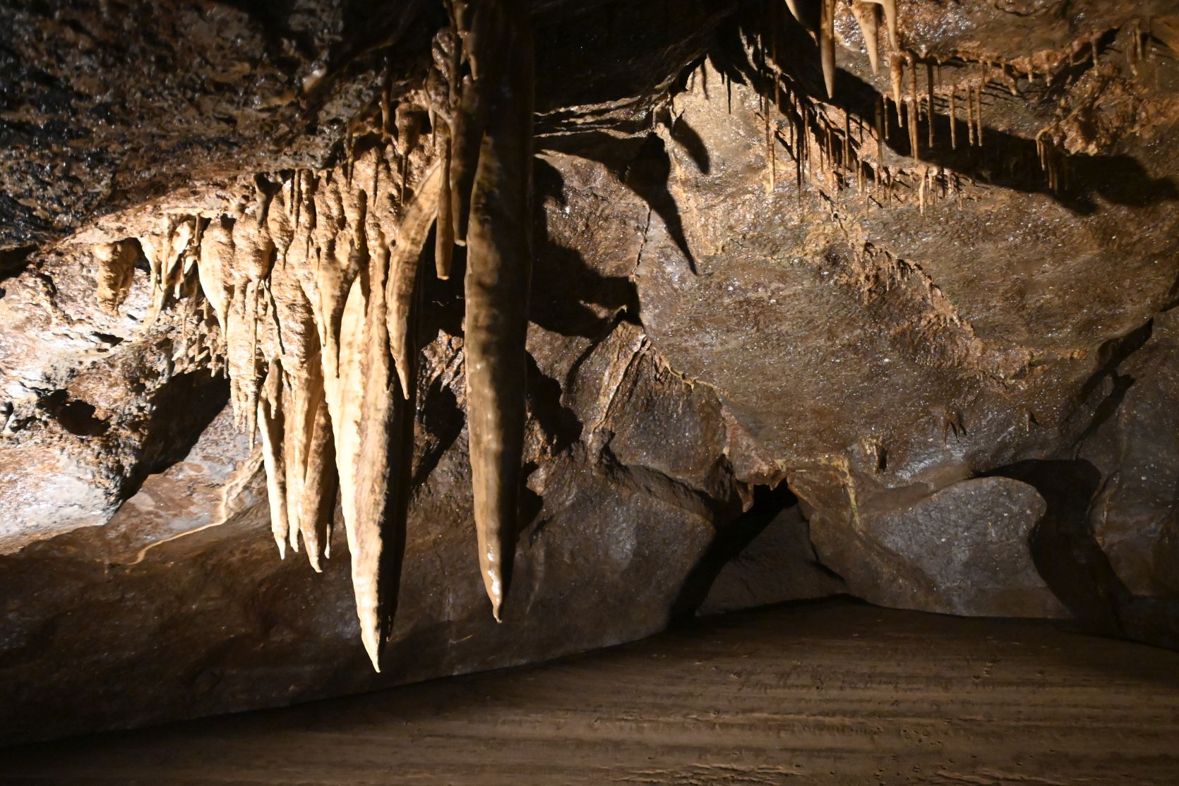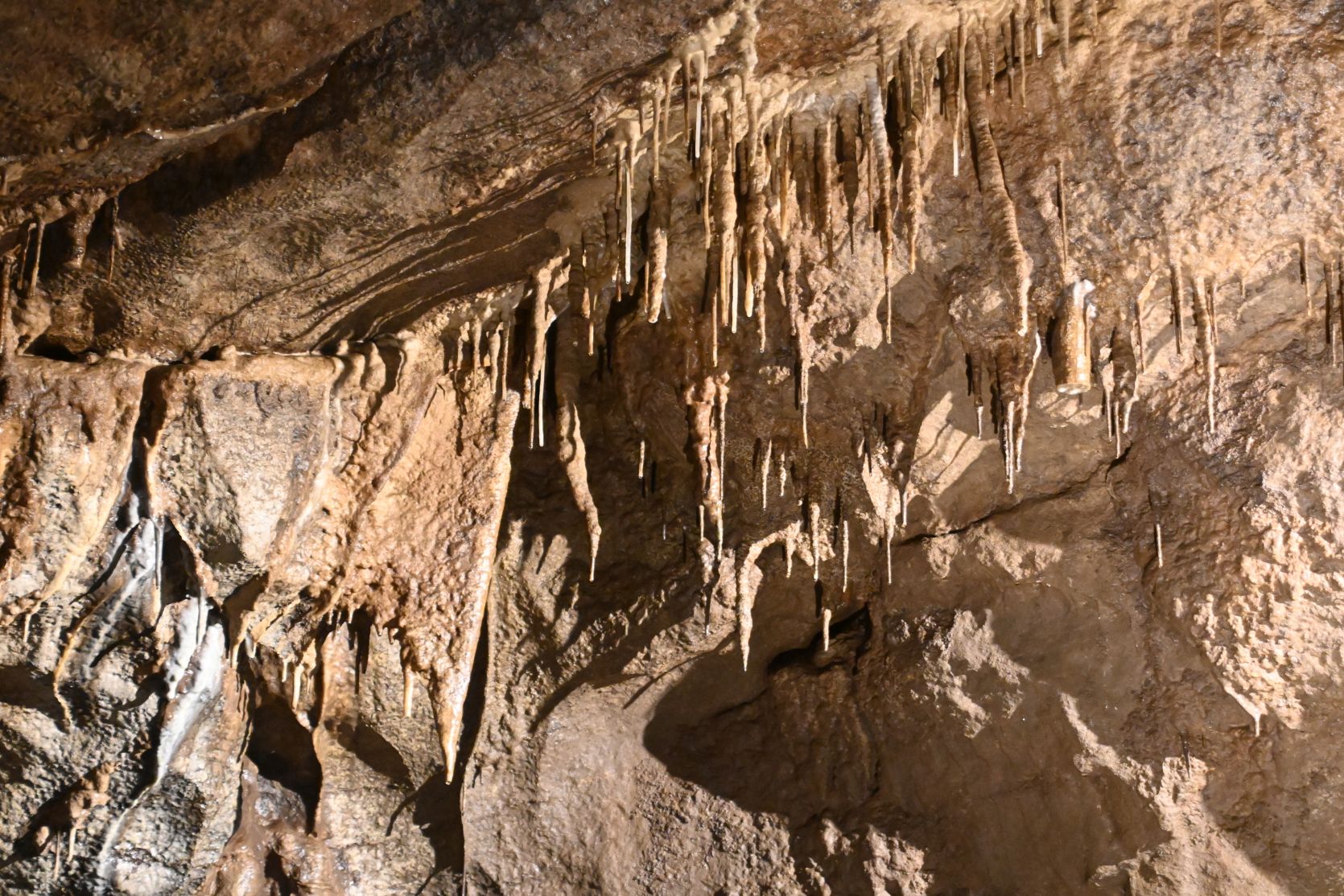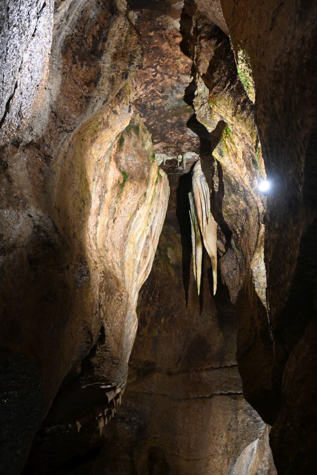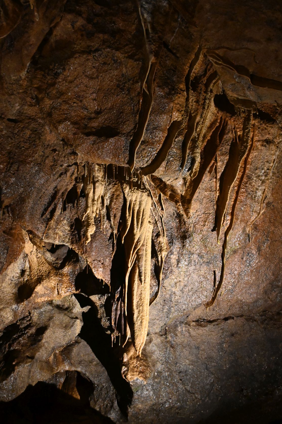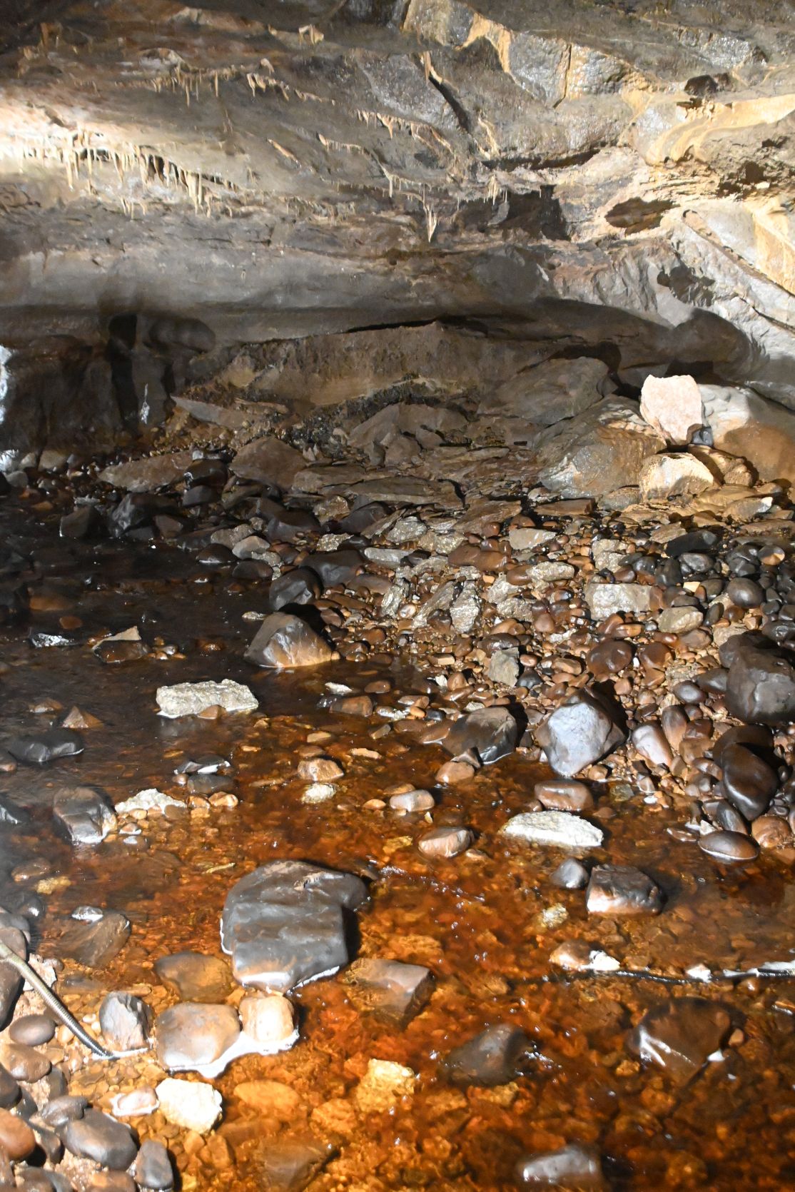 Es gibt nur ganz wenige Stalagmiten. Offenbar fliesst zu viel Wasser durch die Höhlen, welches die Stalagmiten zerstört.