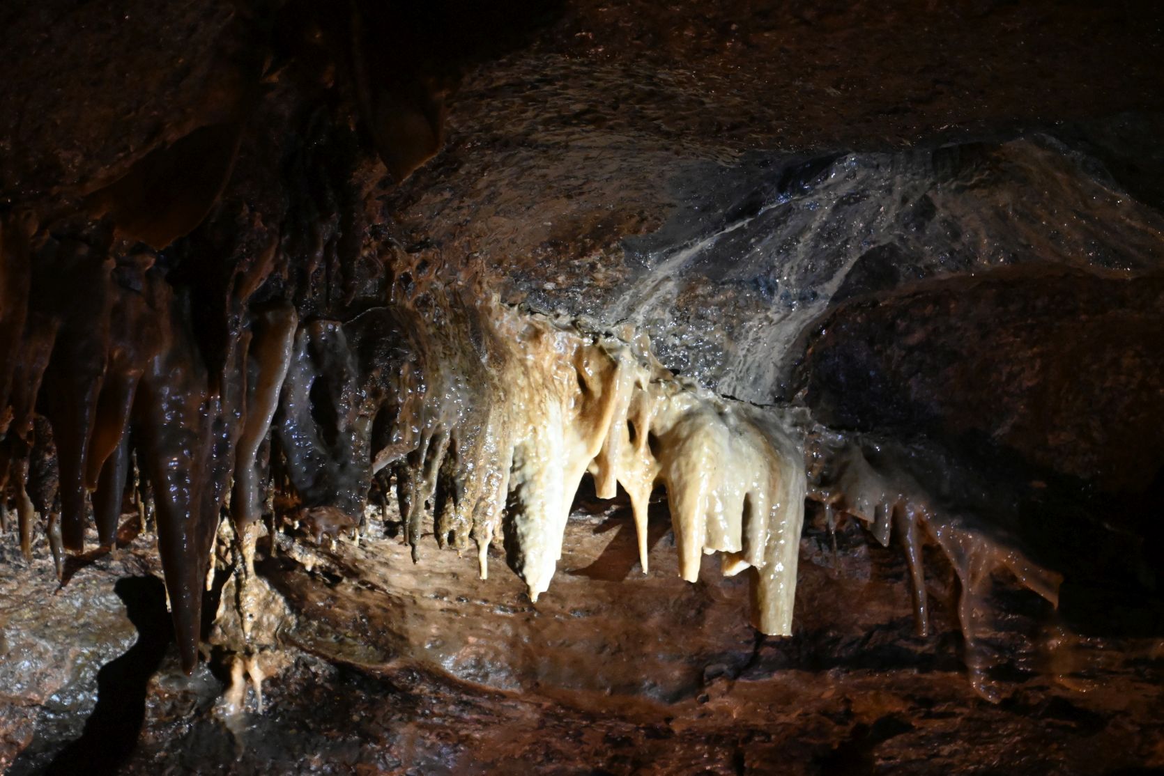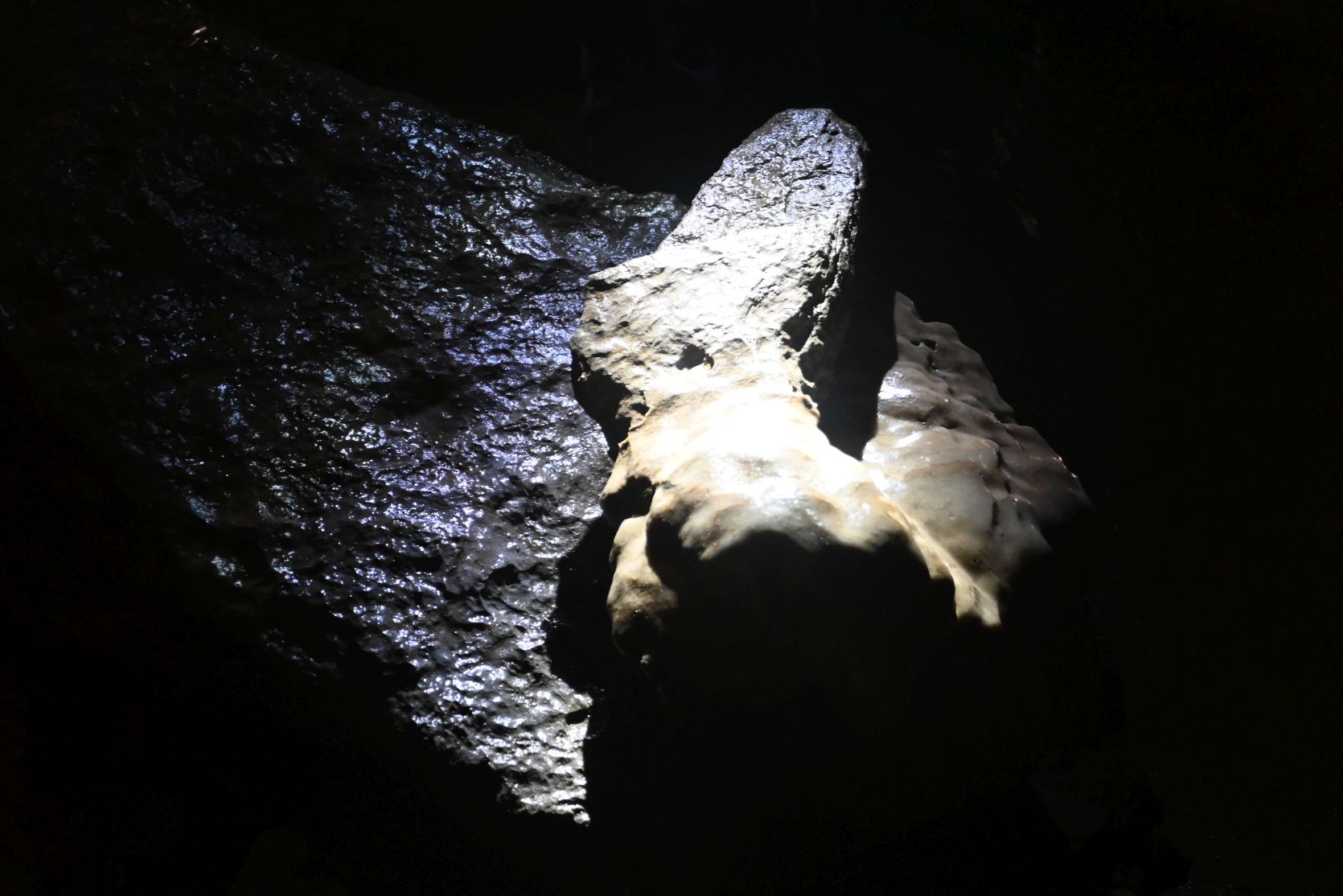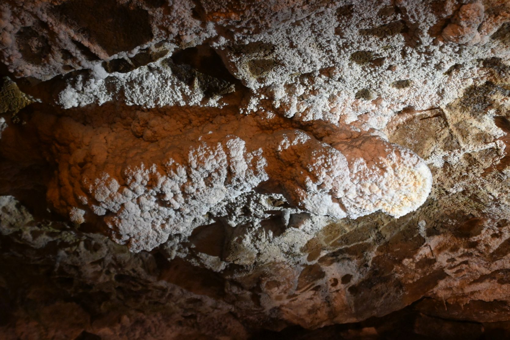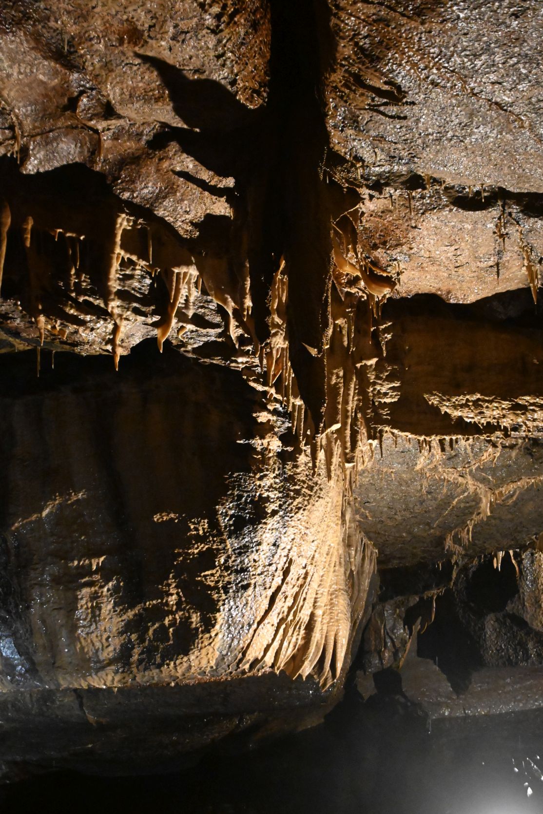 Es gibt nur ganz wenige Stalagmiten. Offenbar fliesst zu viel Wasser durch die Höhlen, welches die Stalagmiten zerstört.
