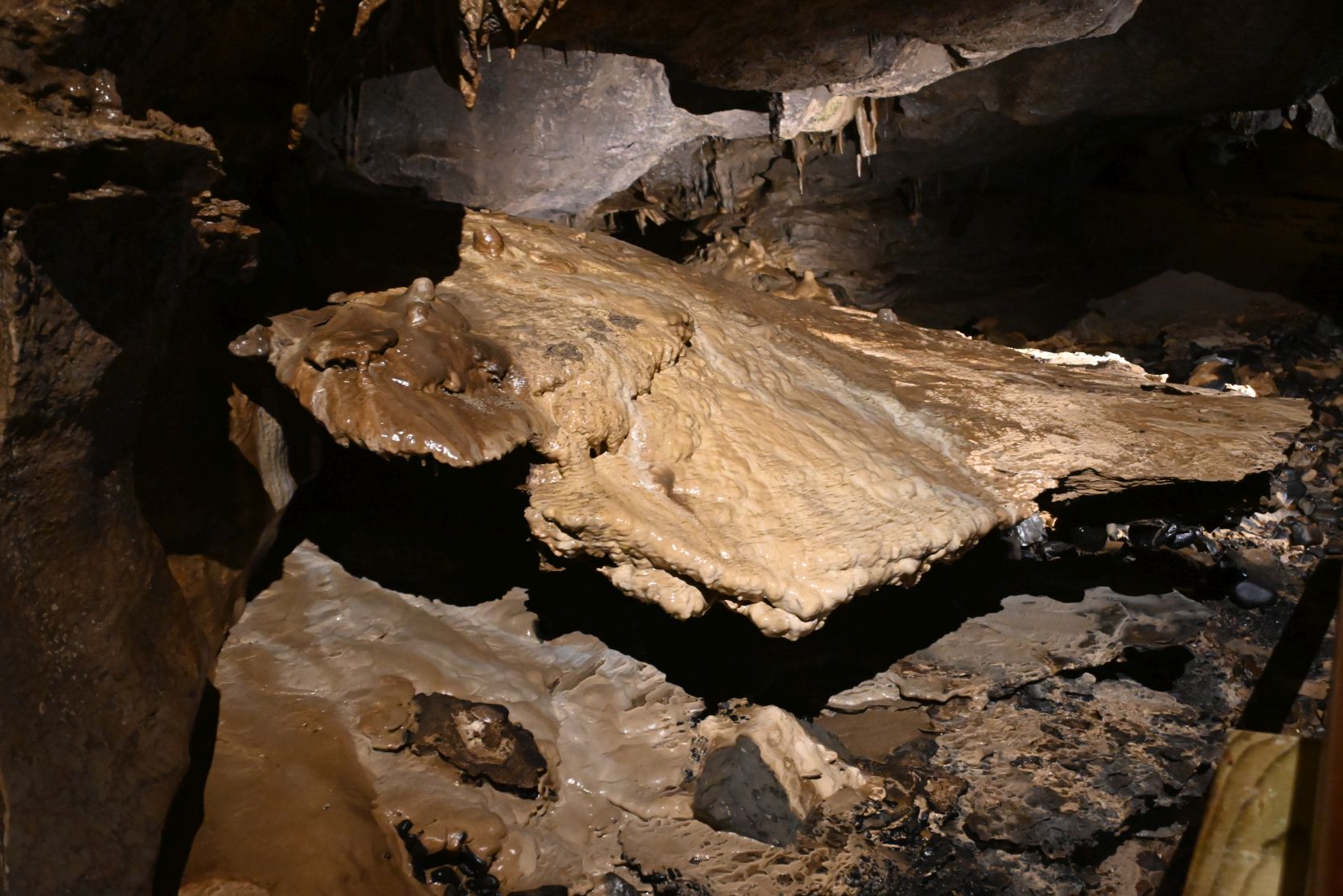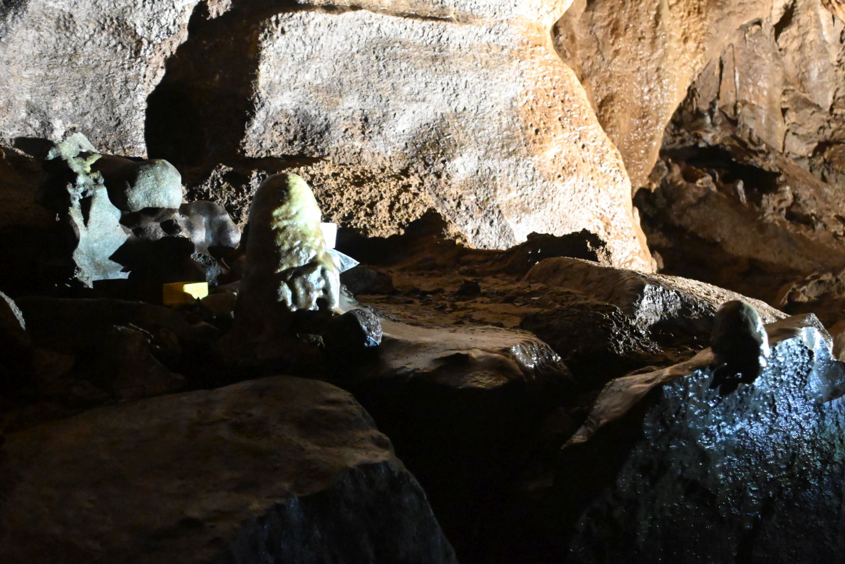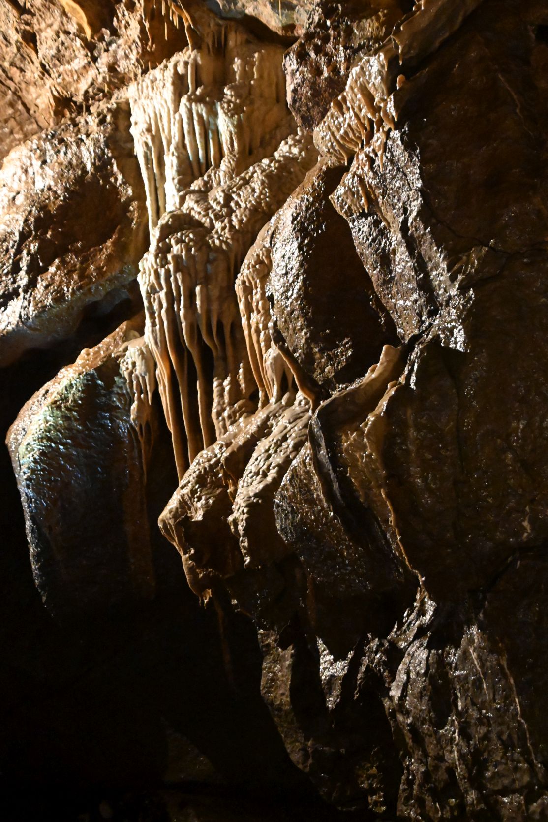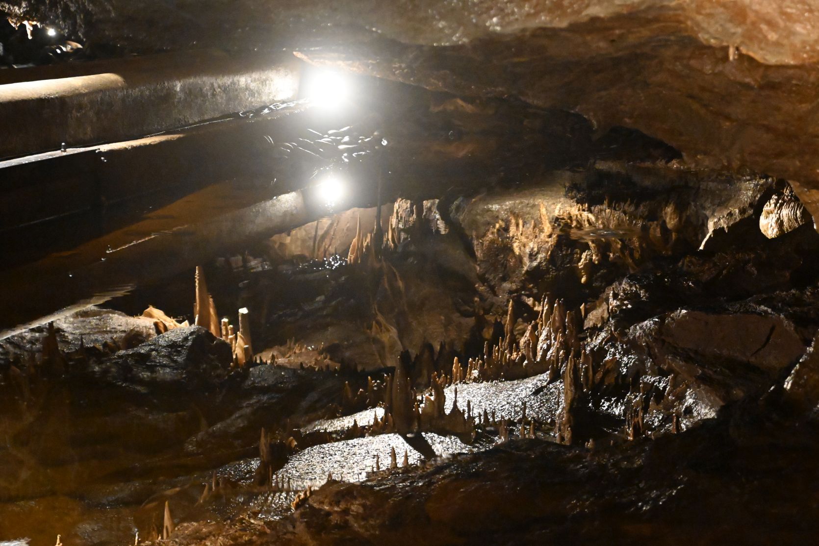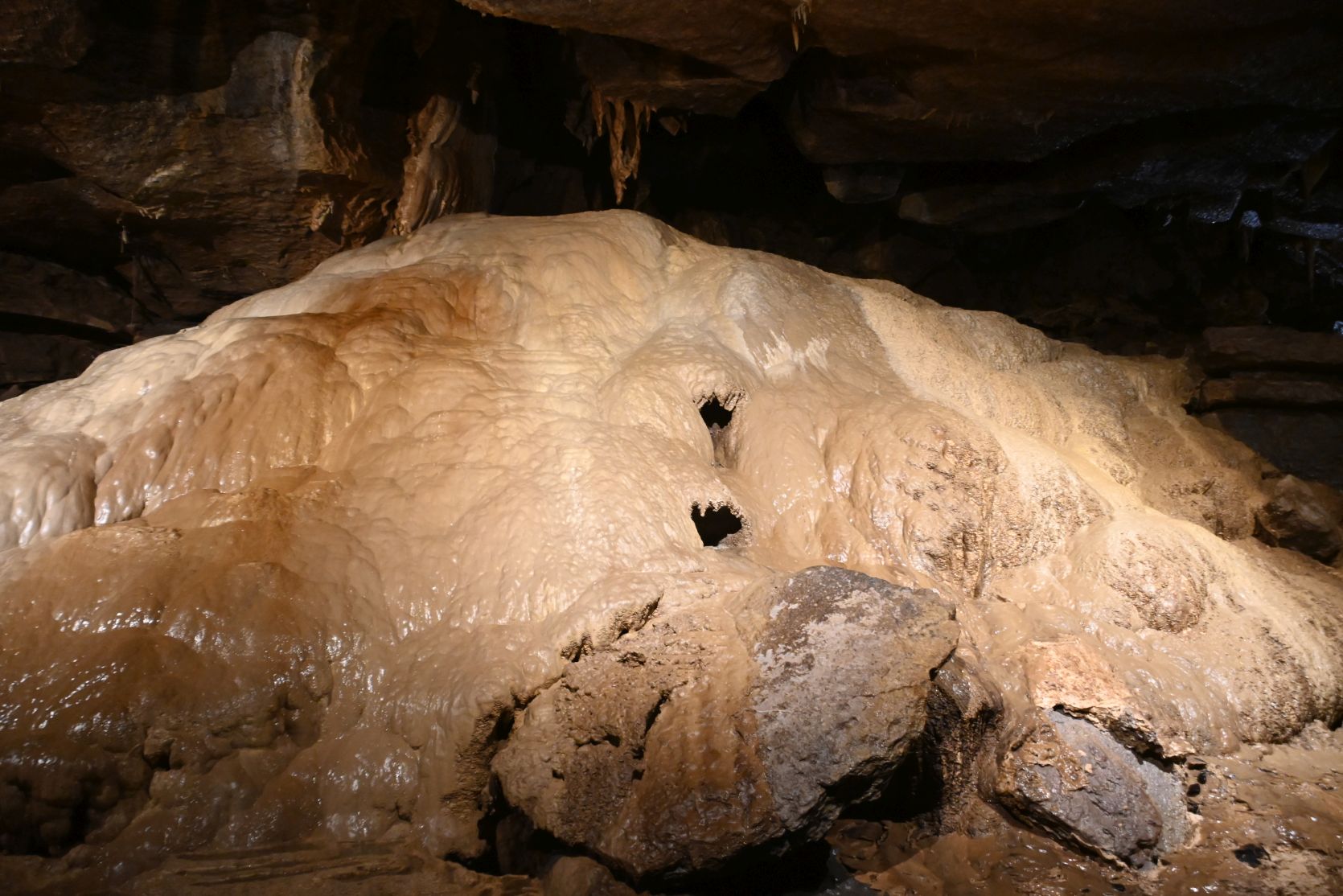 Es gibt nur ganz wenige Stalagmiten. Offenbar fliesst zu viel Wasser durch die Höhlen, welches die Stalagmiten zerstört.