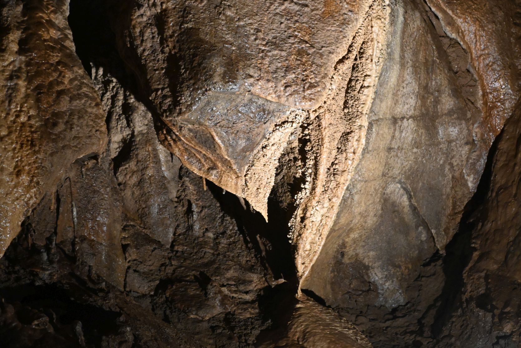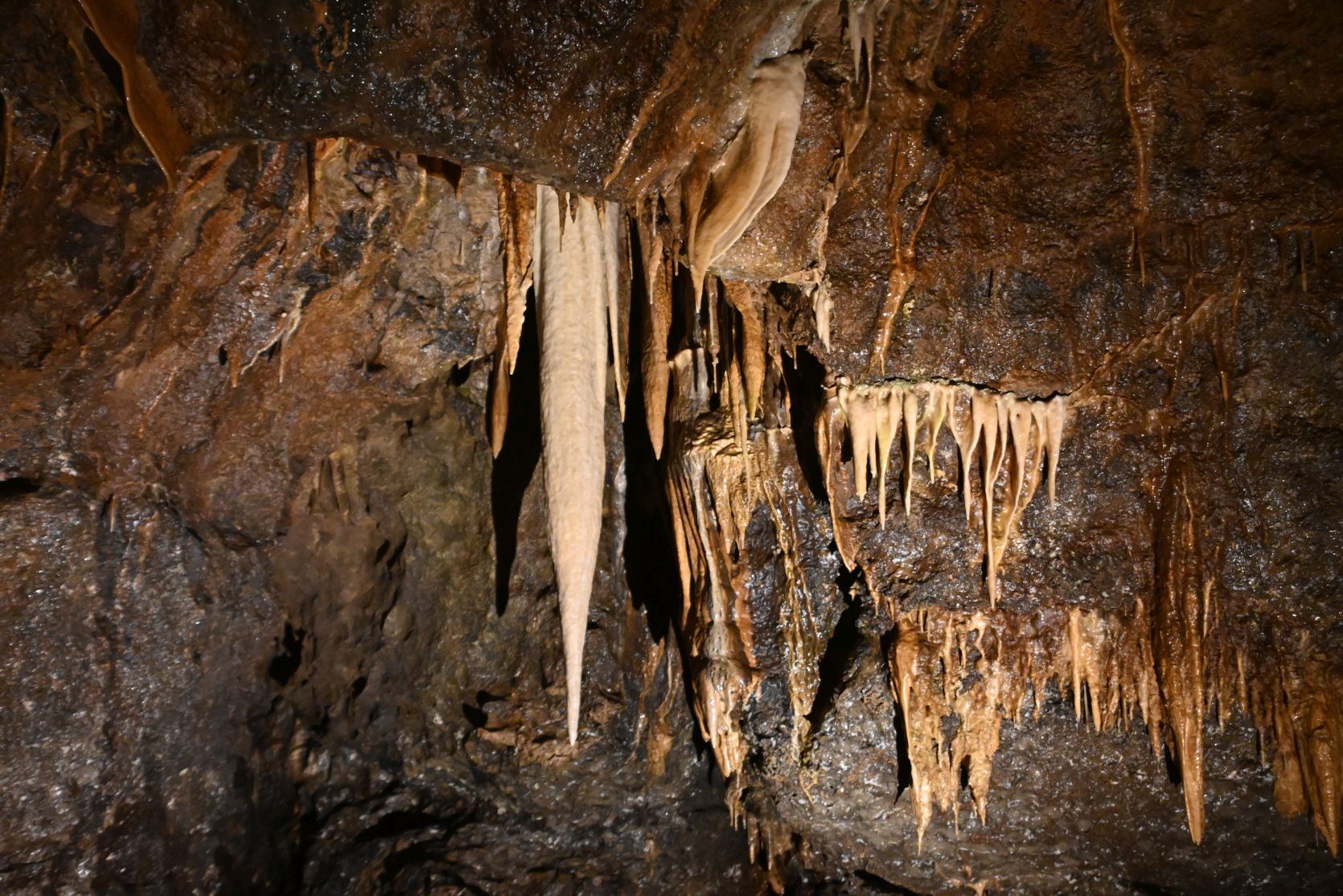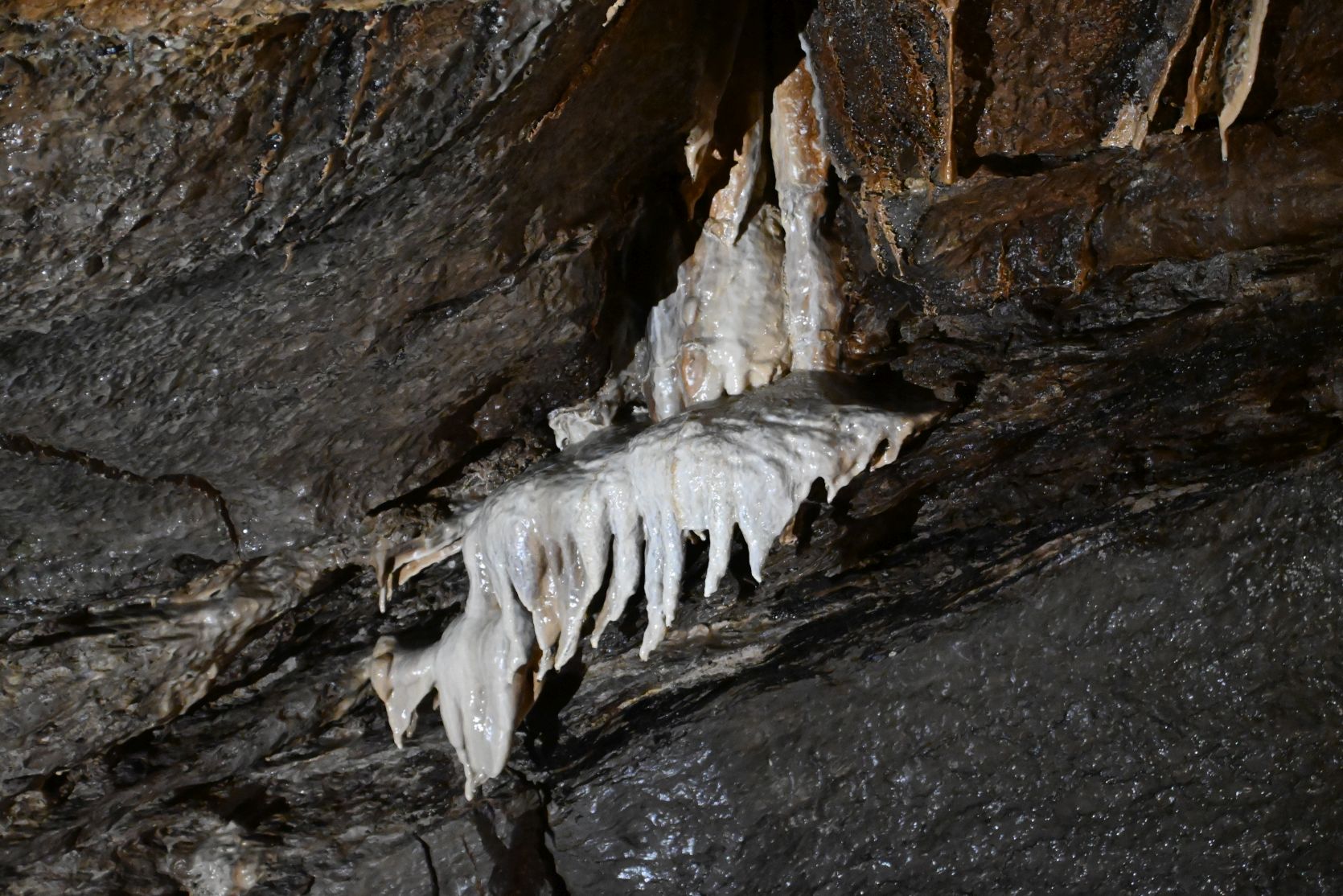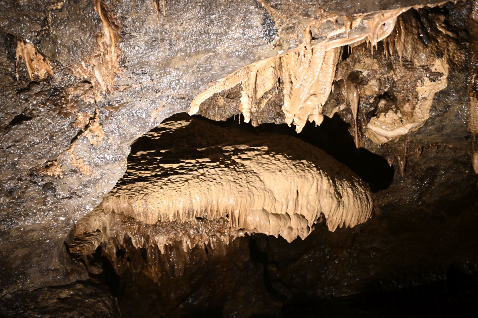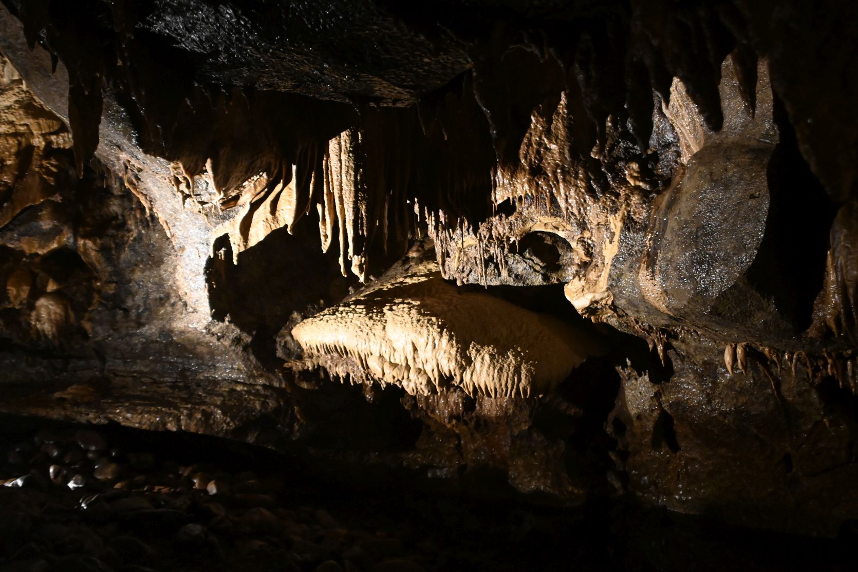 Es gibt nur ganz wenige Stalagmiten. Offenbar fliesst zu viel Wasser durch die Höhlen, welches die Stalagmiten zerstört.