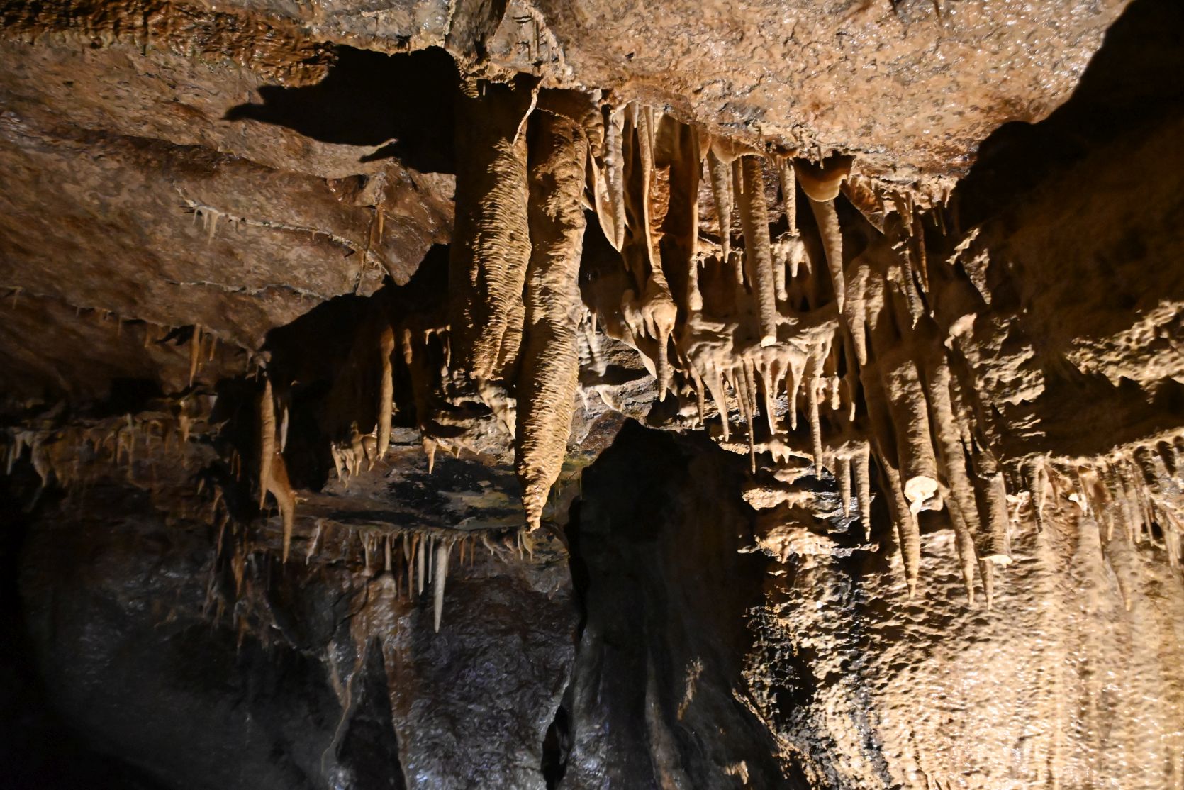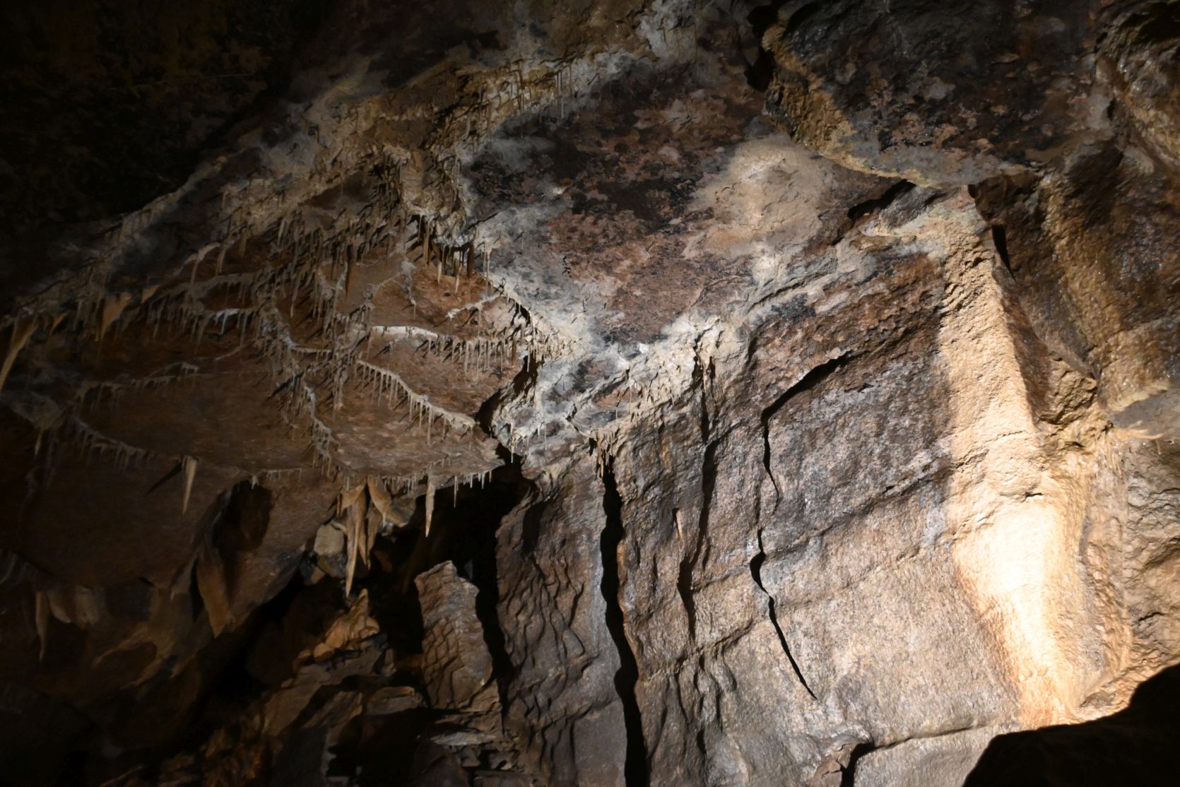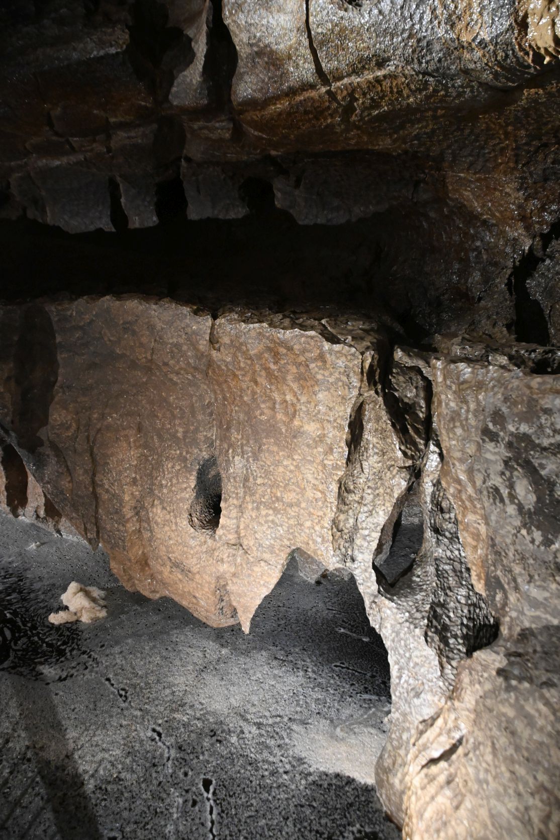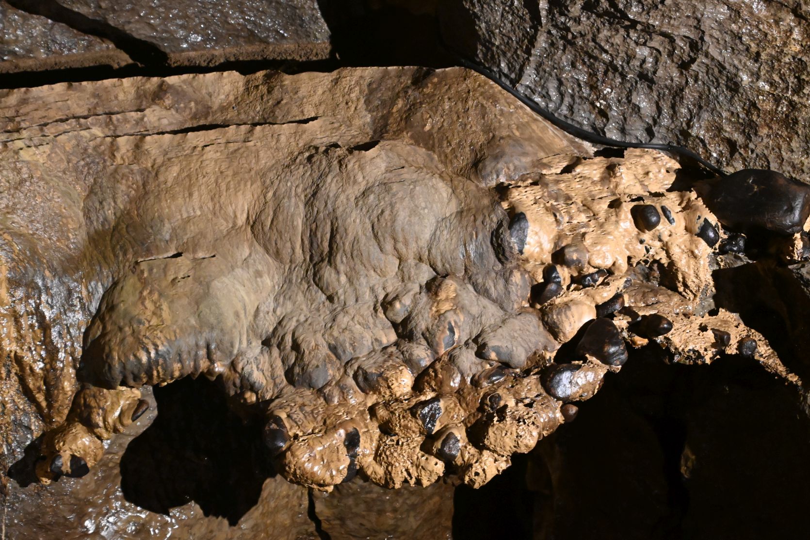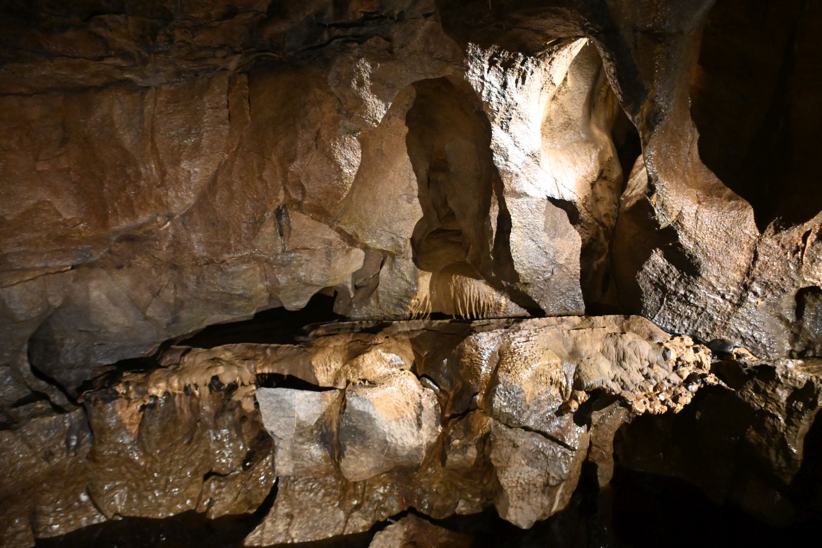 Es gibt nur ganz wenige Stalagmiten. Offenbar fliesst zu viel Wasser durch die Höhlen, welches die Stalagmiten zerstört.