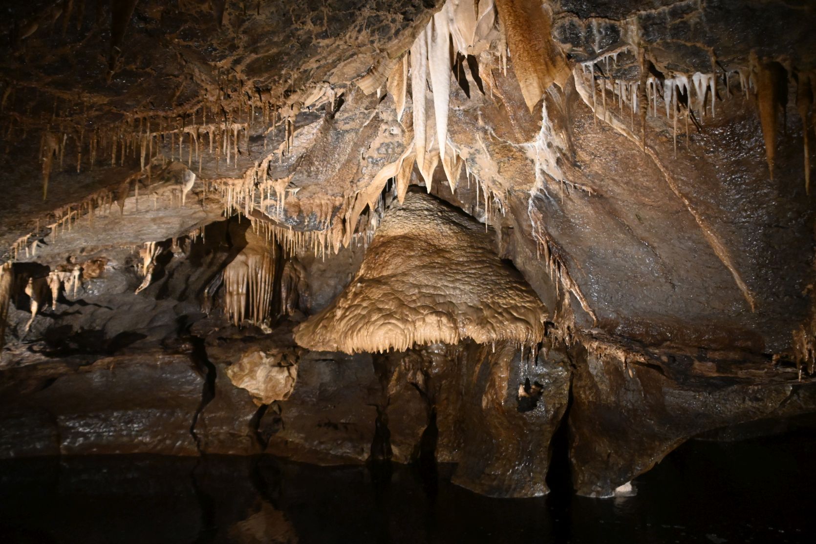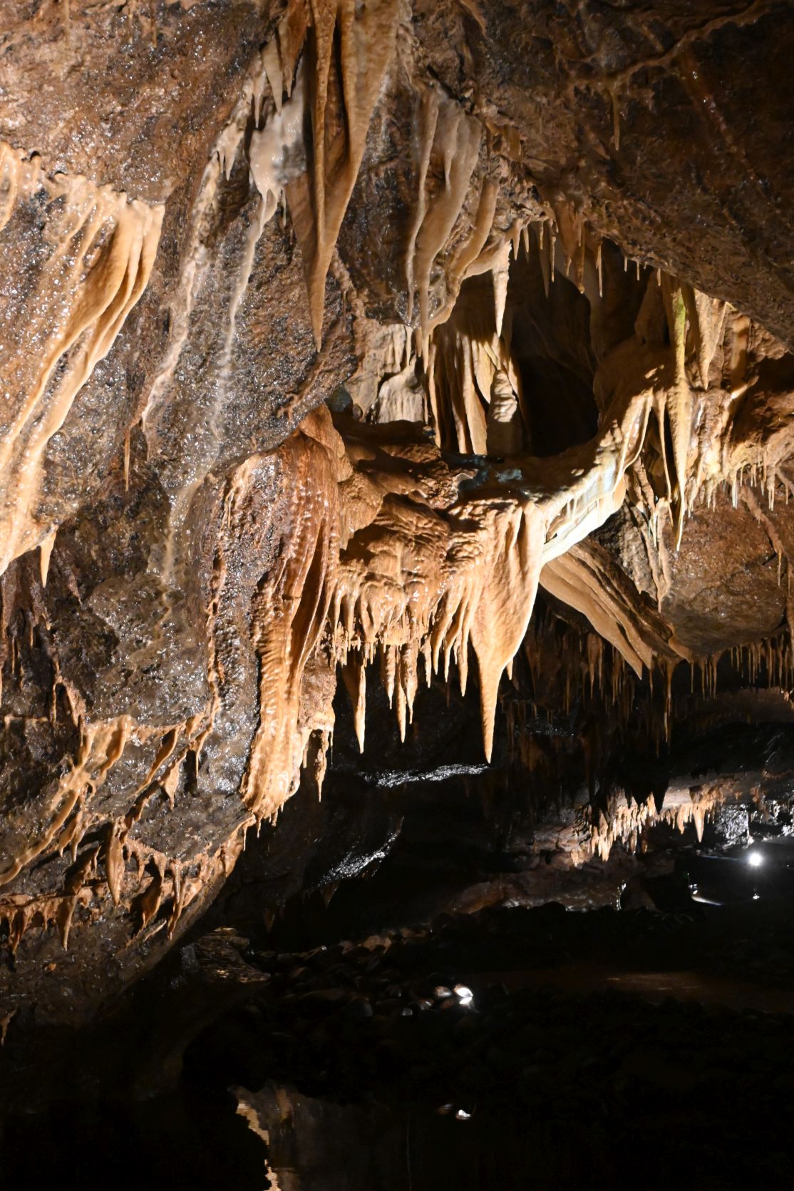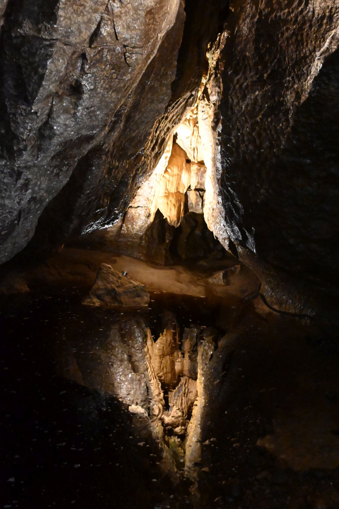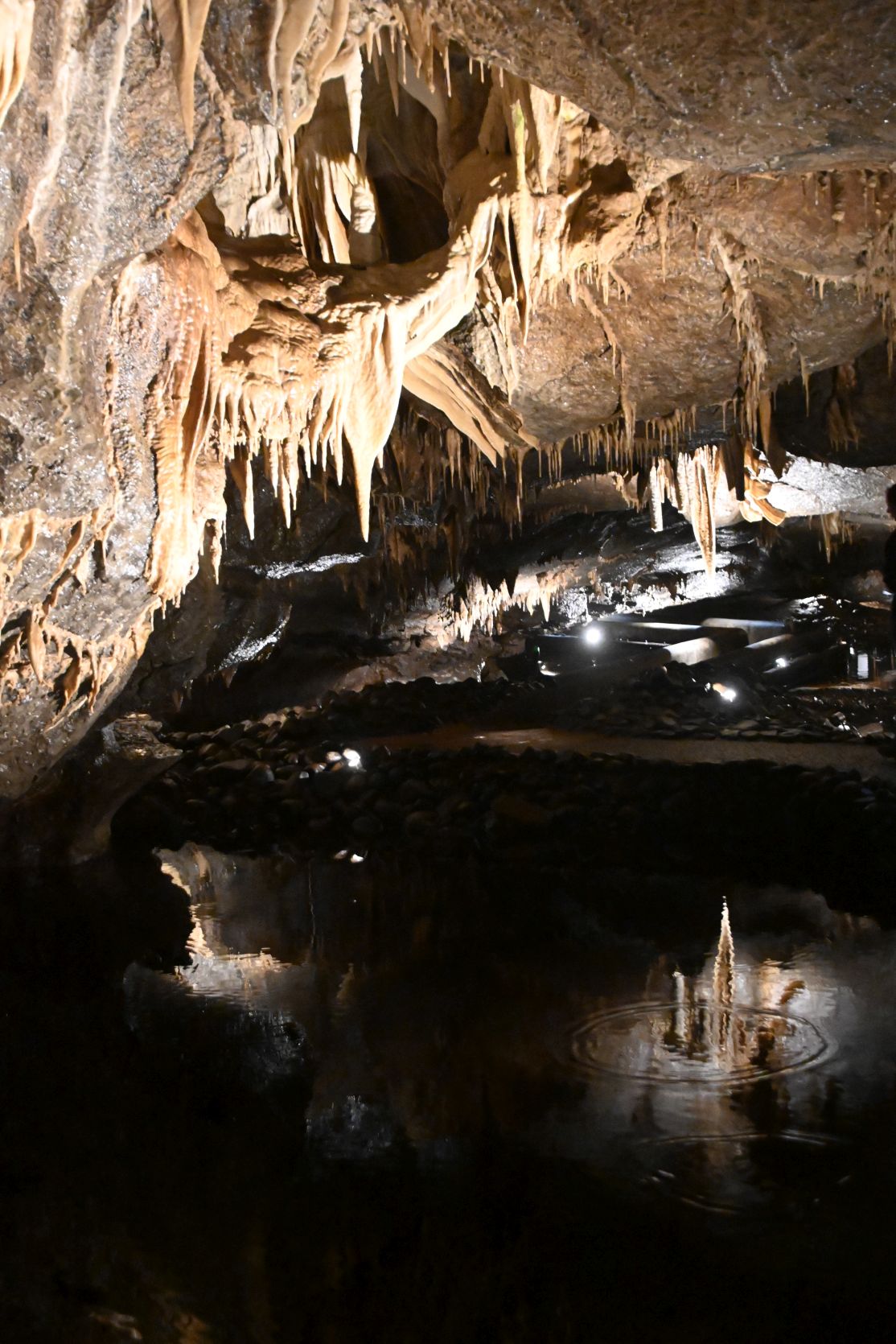 Manchmal spiegeln sich die Stalaktiten im Wasser, und sie sehen aus wie Stalagmiten!