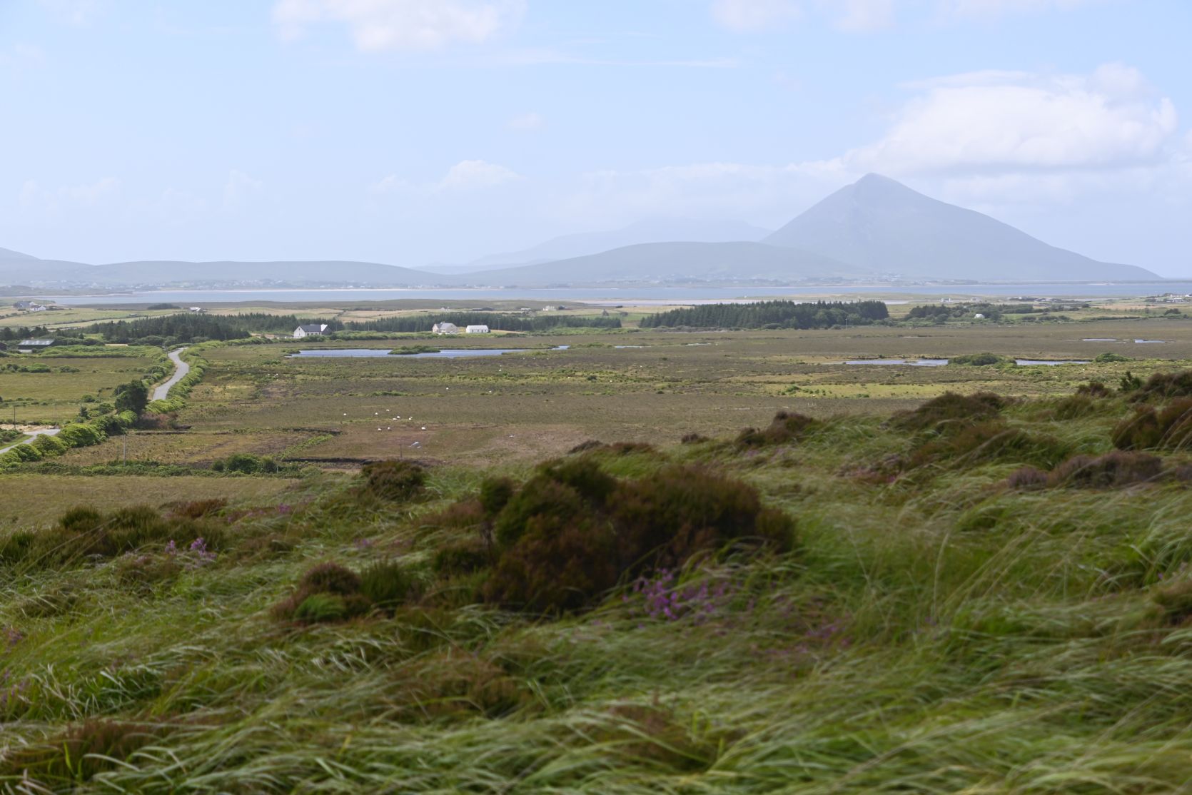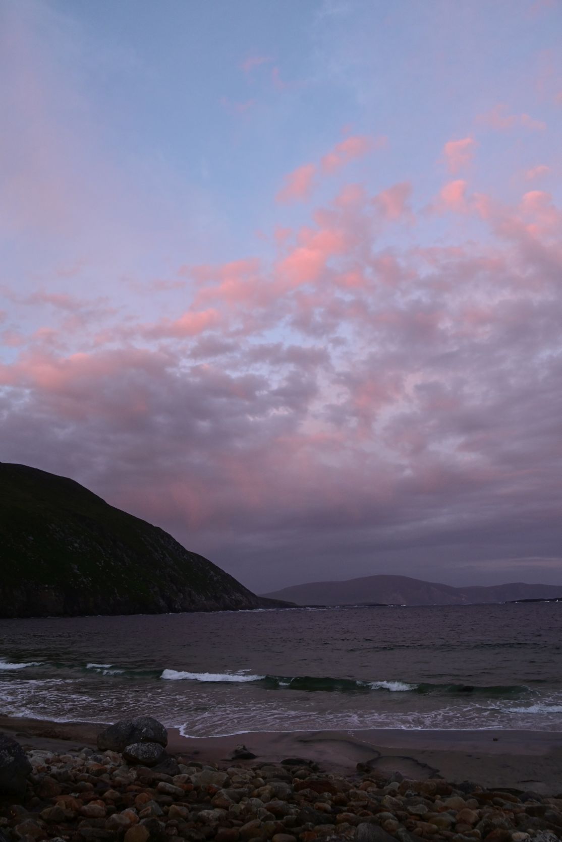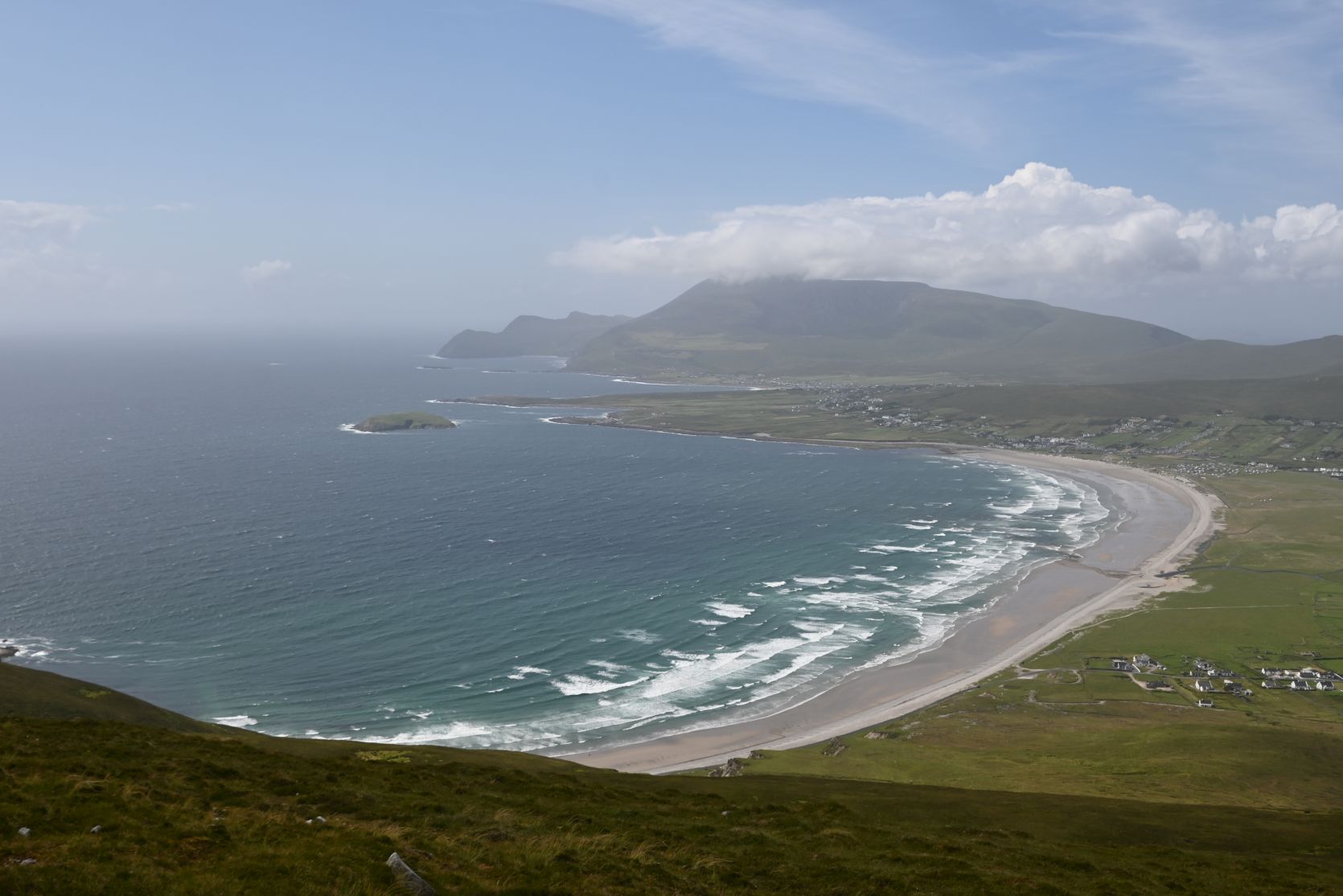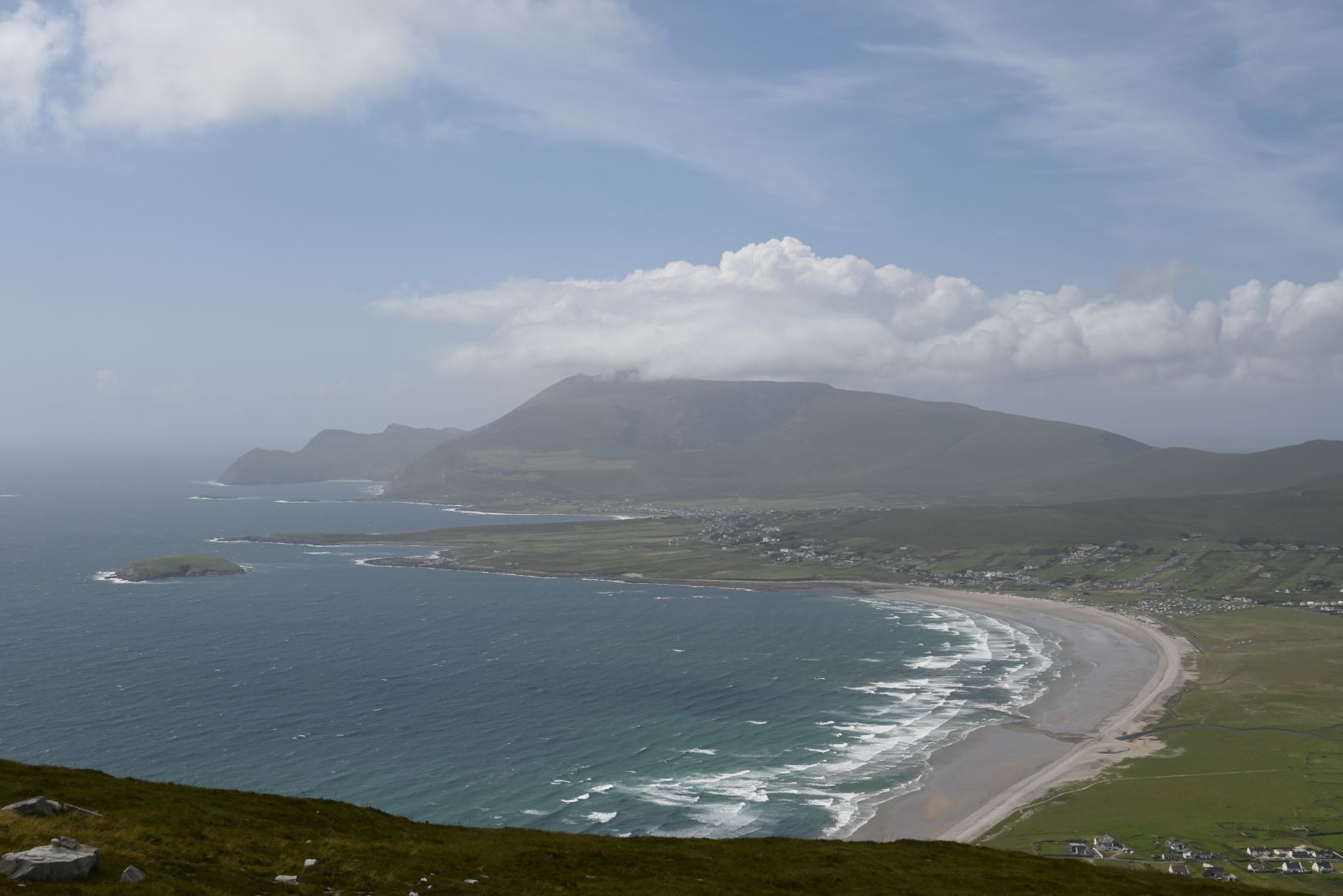 A quick stop on the huge beach, on Keel Strand, after driving past Keel Lough. Minaun Heights can be seen in the background.