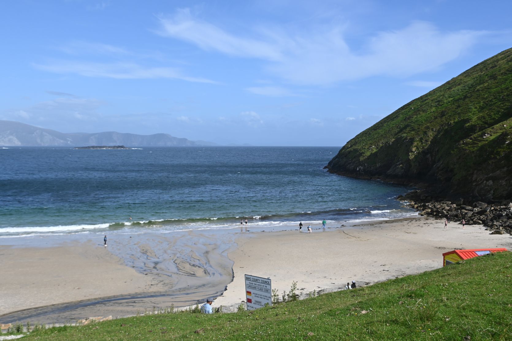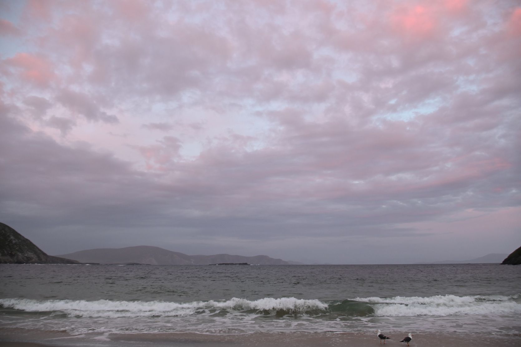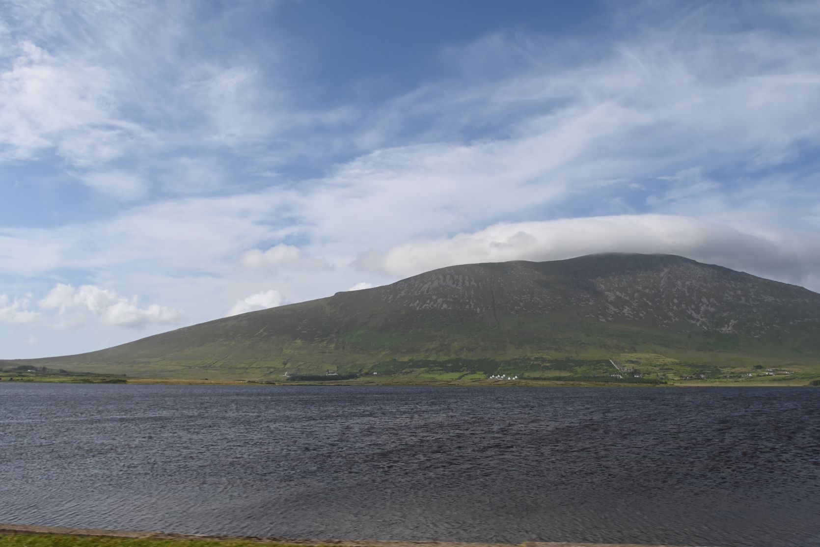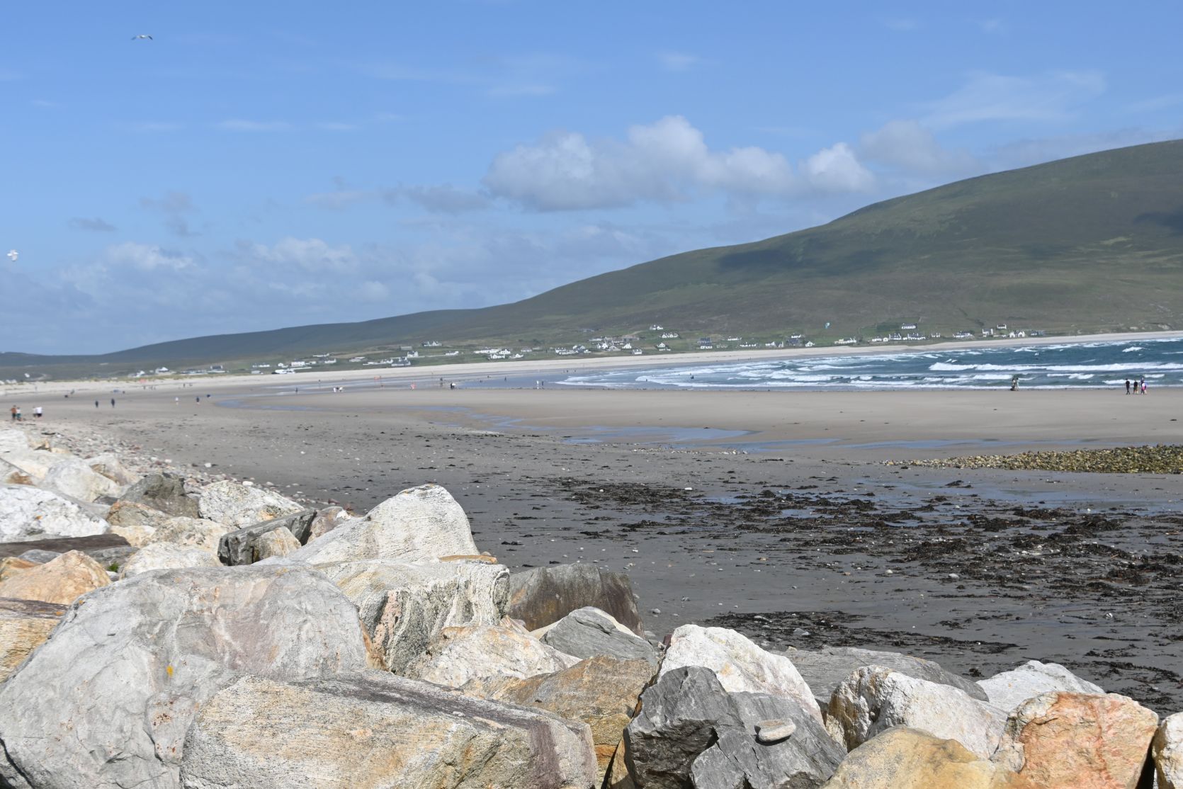 A quick stop on the huge beach, on Keel Strand, after driving past Keel Lough. Minaun Heights can be seen in the background.