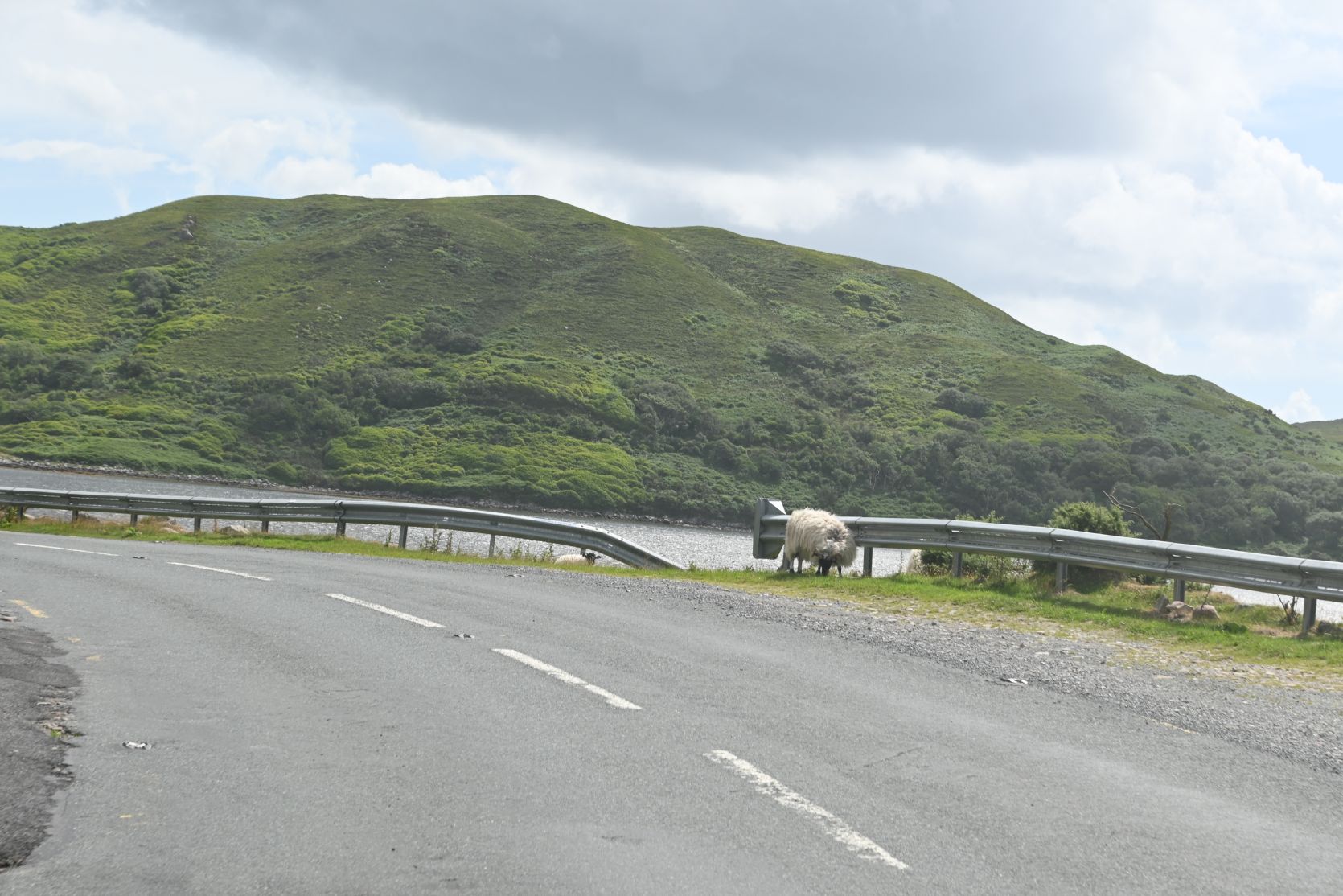 Immer wieder begegneten wir Schafen auf der Strasse 😉 Eine Brücke führt rüber auf die Insel Achill.