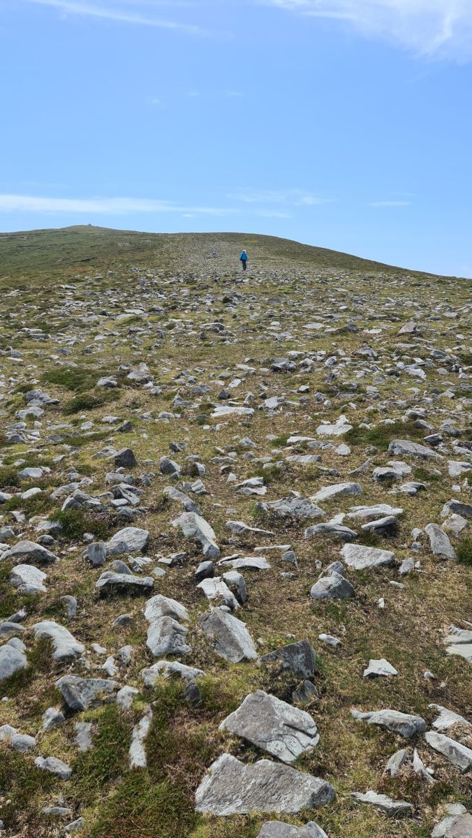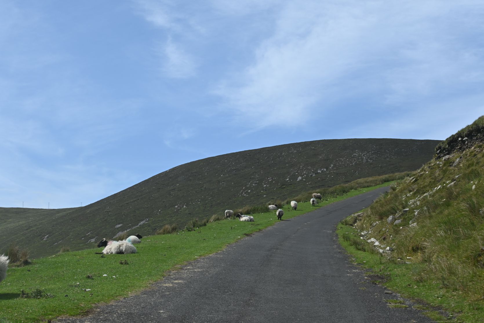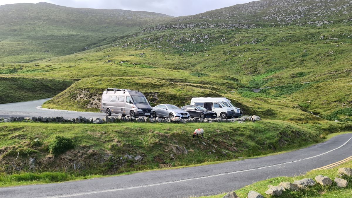 Da das Wetter schön war, entschlossen wir uns, auf Minaun Heights zu fahren. Es ist mit 466 Meter der dritthöchste Hügel auf Achill. Wir haben noch nie SOO viele Schafe auf einer Strasse gesehen 😉