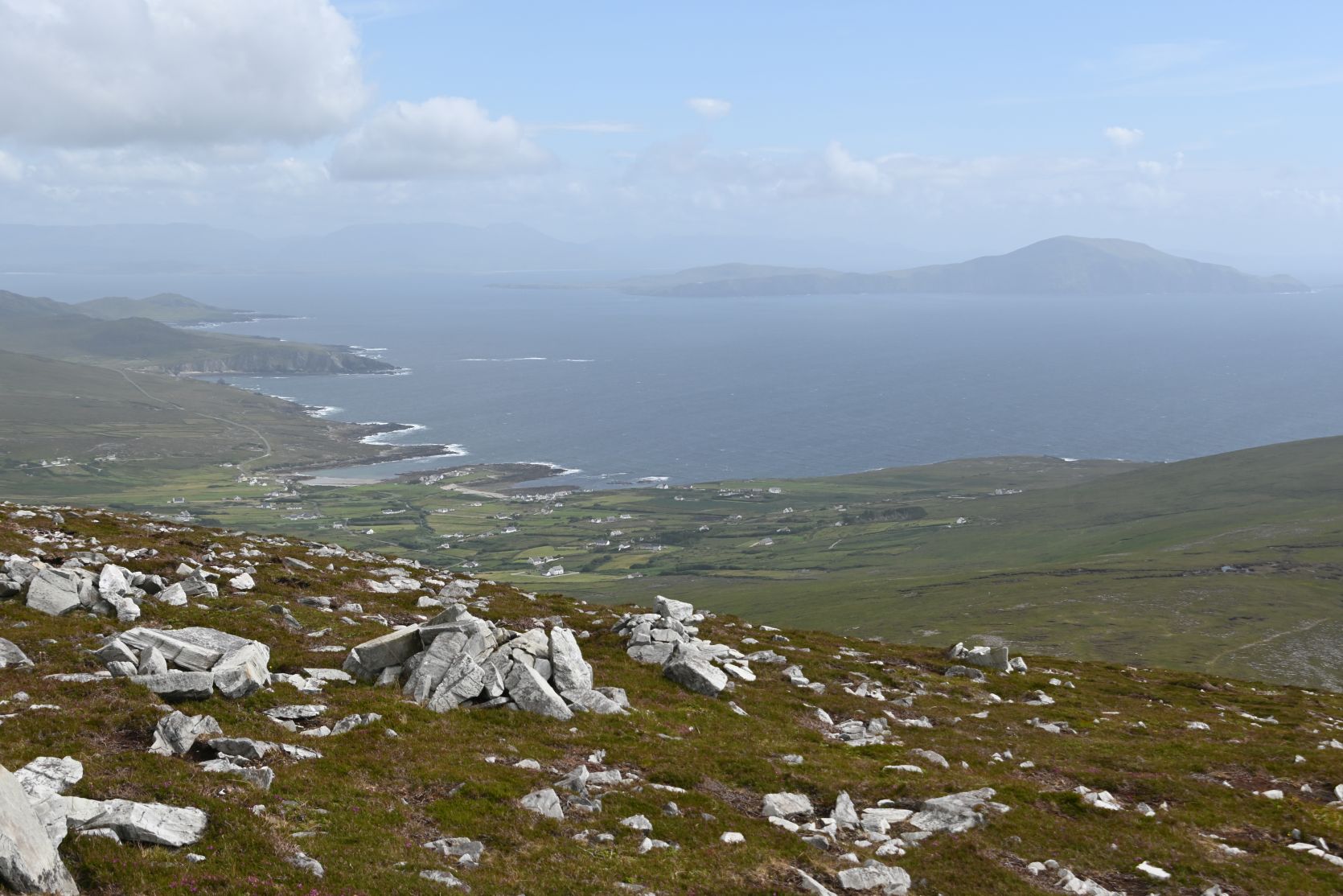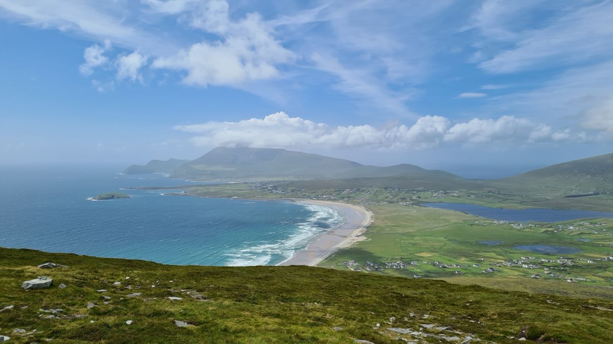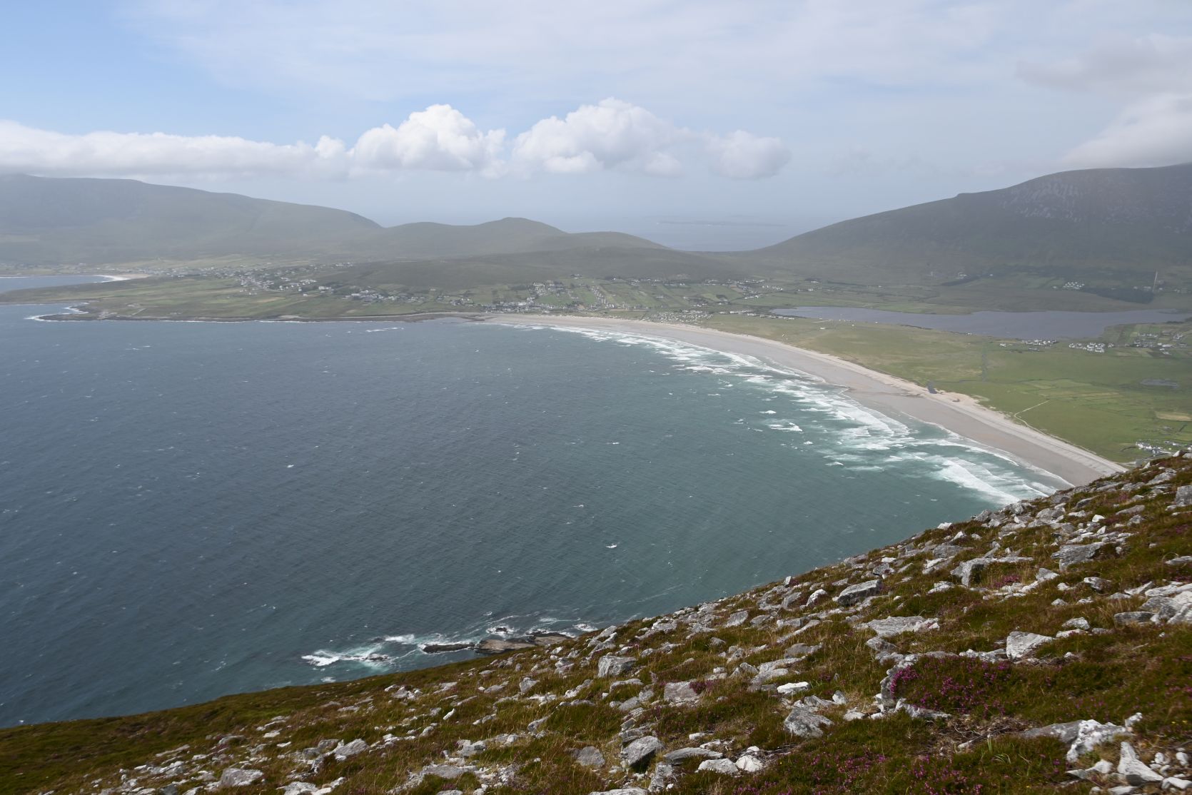 Die Aussicht war phänomenal, aber ein bisschen dunstig. Keel Bay hat einen riesigen Strand!