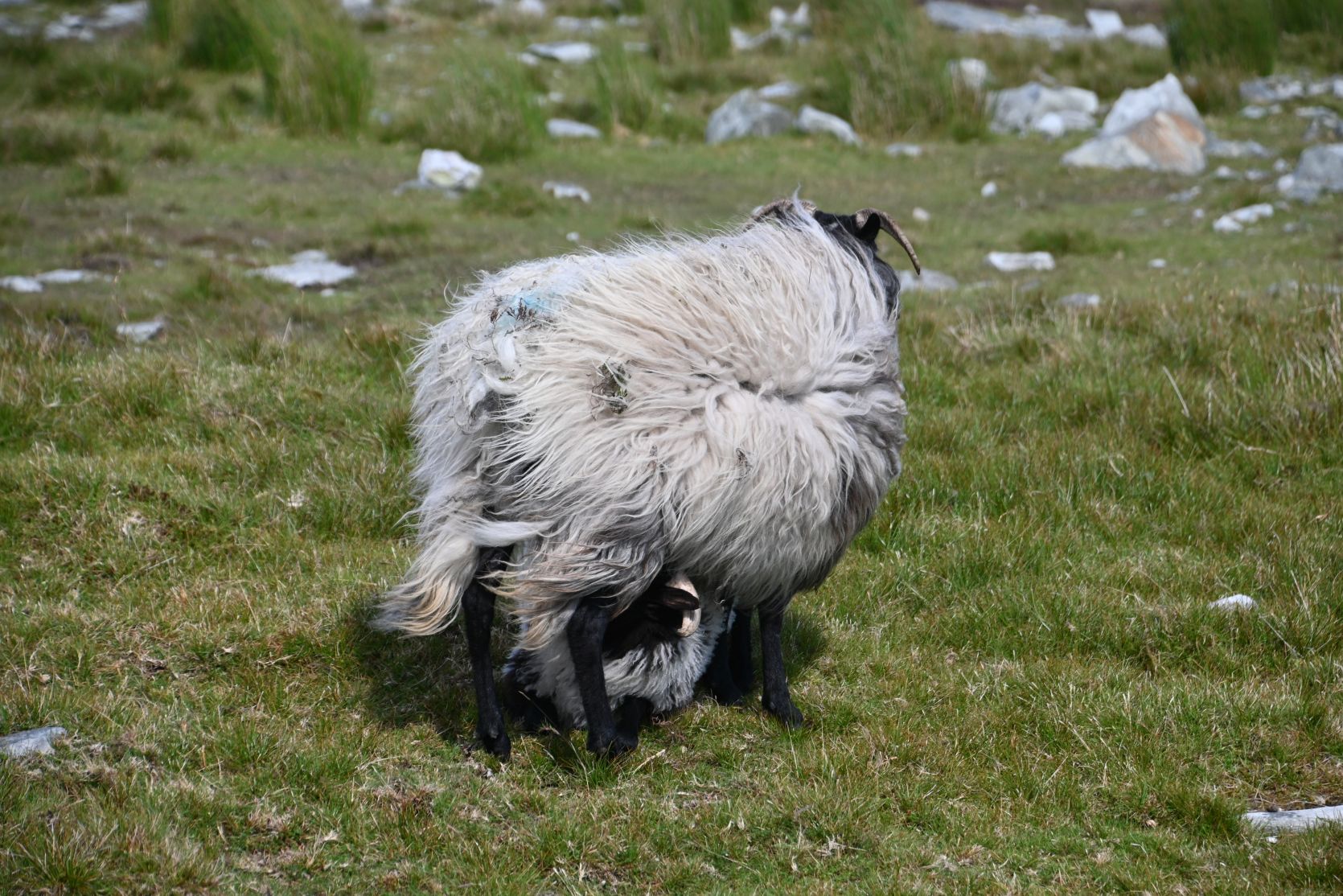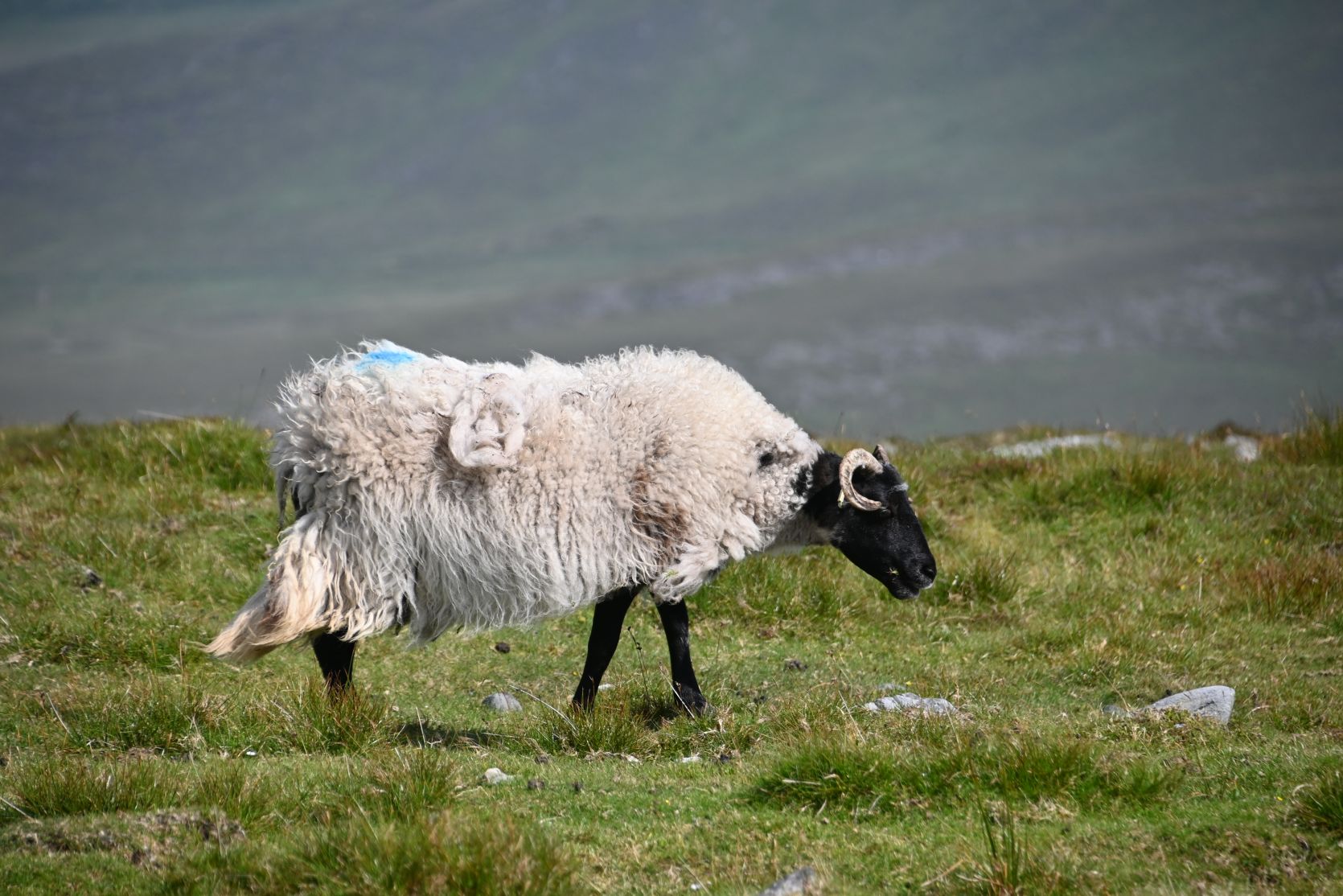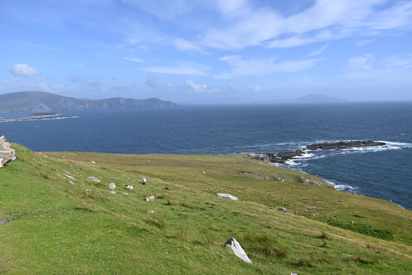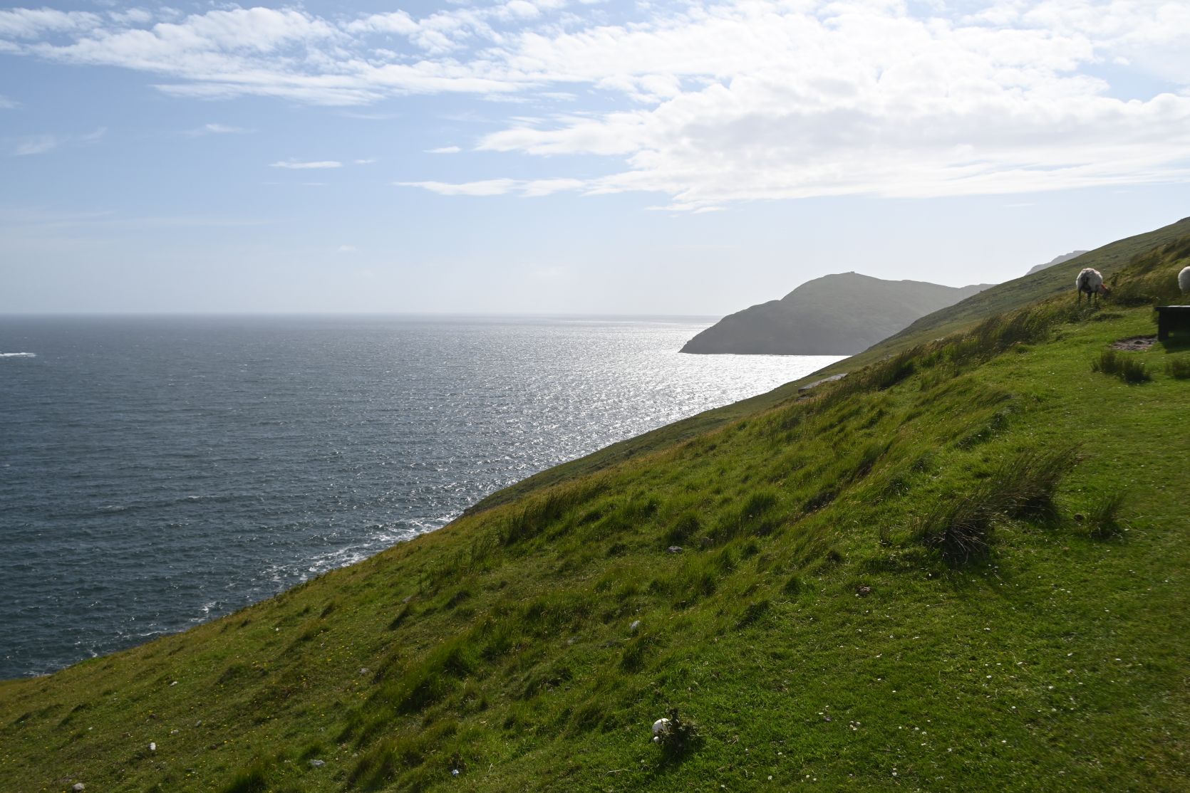 Since the weather turned out nice, we decided to drive onto Minaun Heights. It’s the third highest hill on Achill with 466 metres. We’ve never seen THAT many sheep on a road 😉