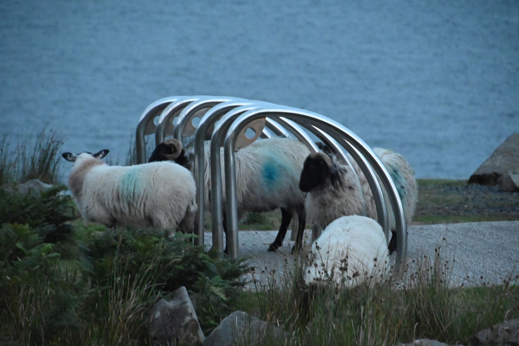 From where we parked we could watch the sheep using the bicycle racks to rub themselves on 🙂