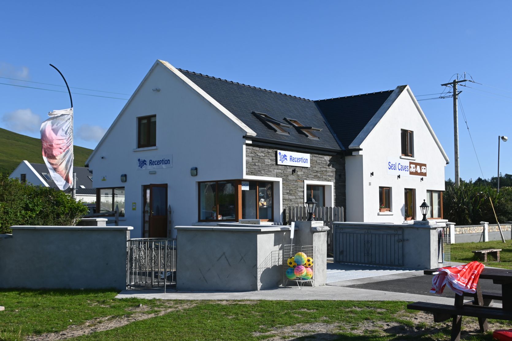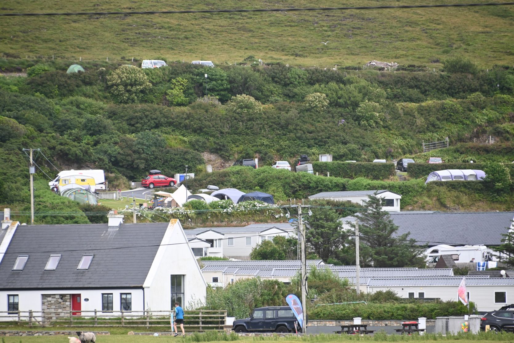 The campsite Seal Caves is built along a hill. Our pitch is right at the top, just above the last bushes.