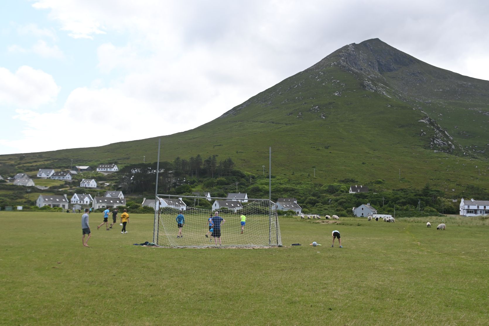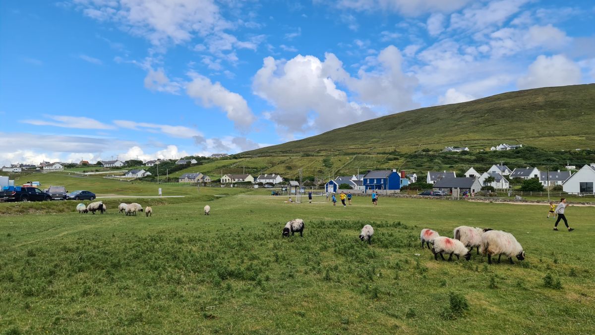 Die Spieler teilen sich den Fussballplatz mit den Schafen!
