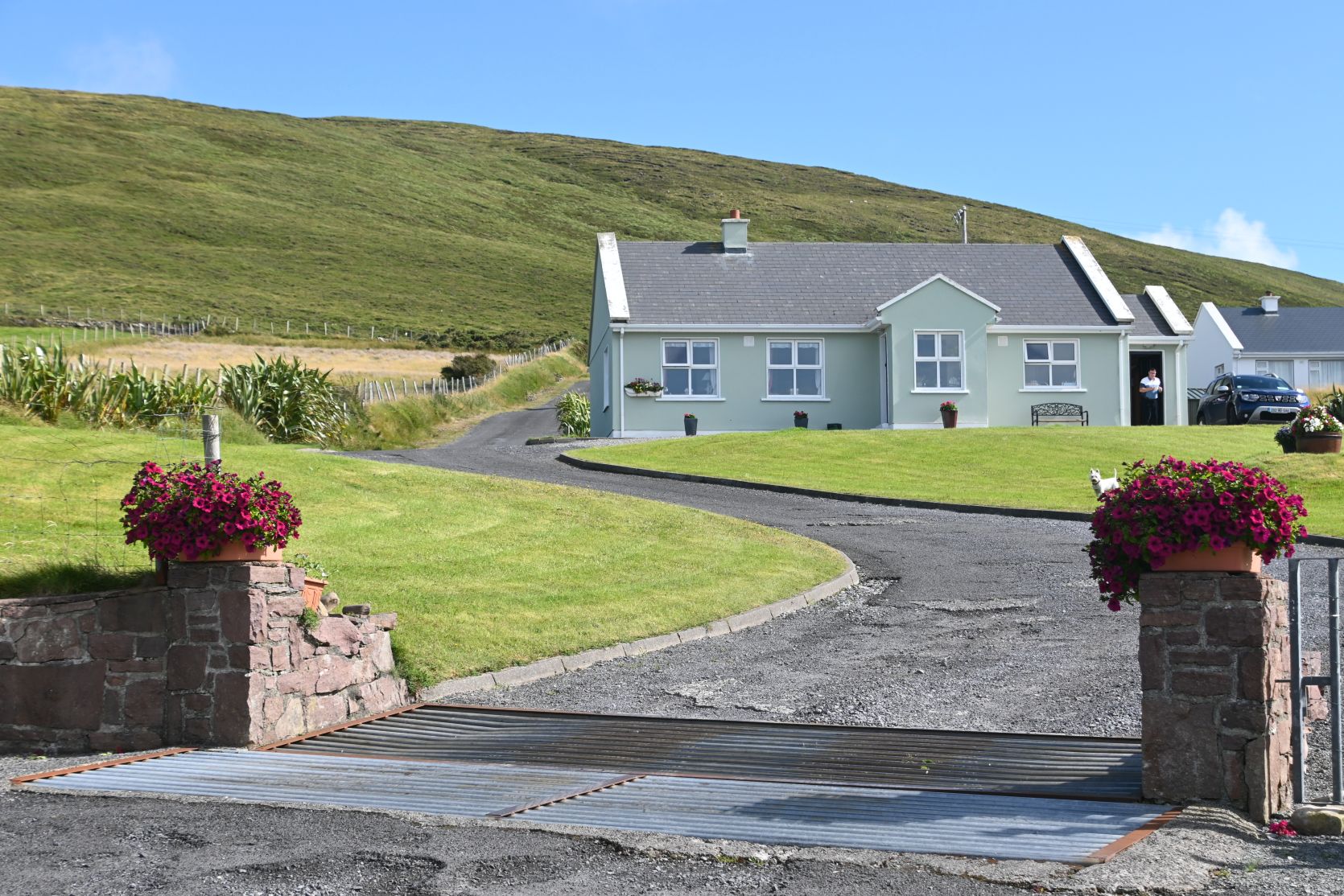 Some houses have a cattle grid so the sheep don’t enter the garden. Some have their horse in the garden 😉