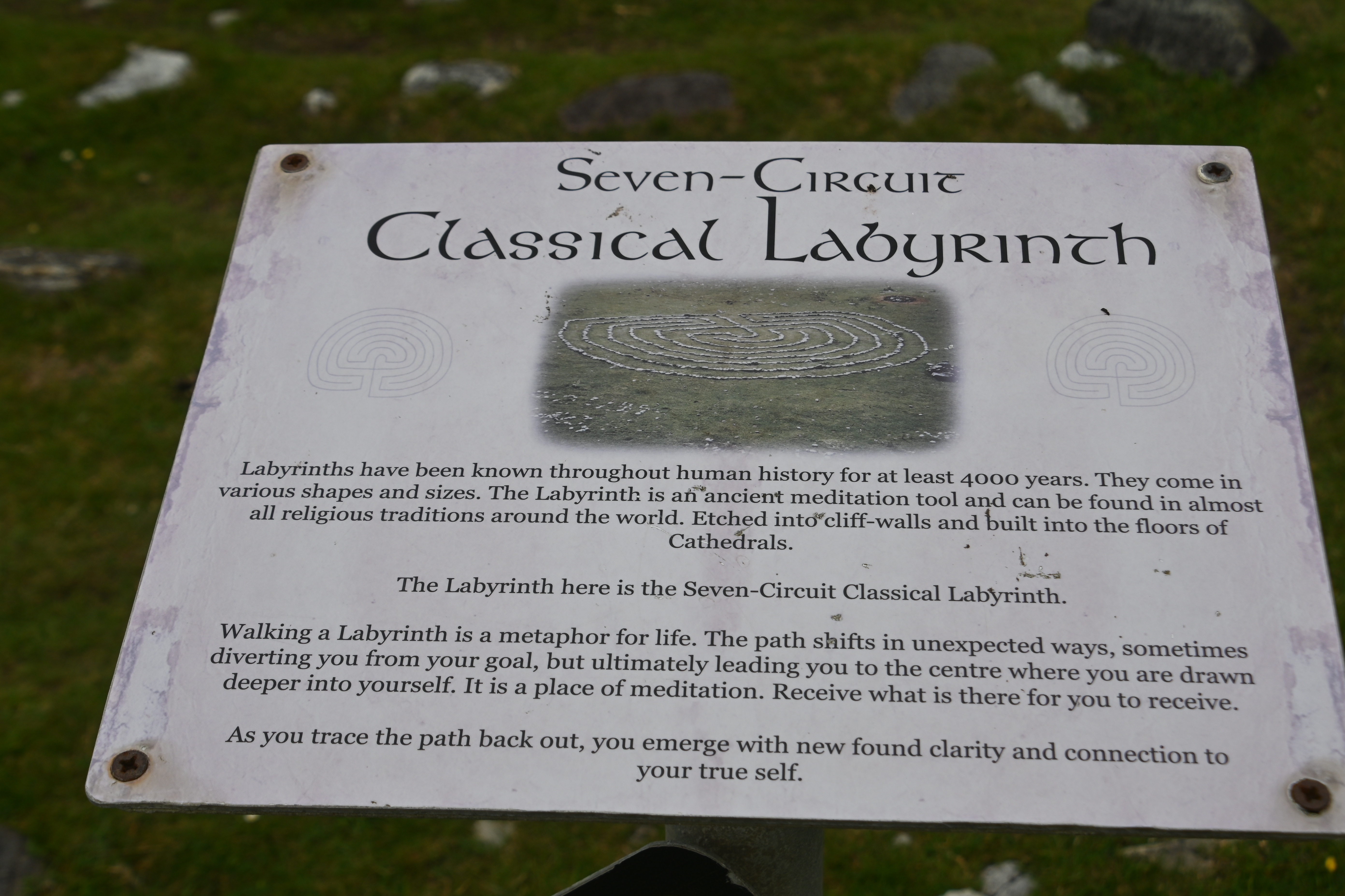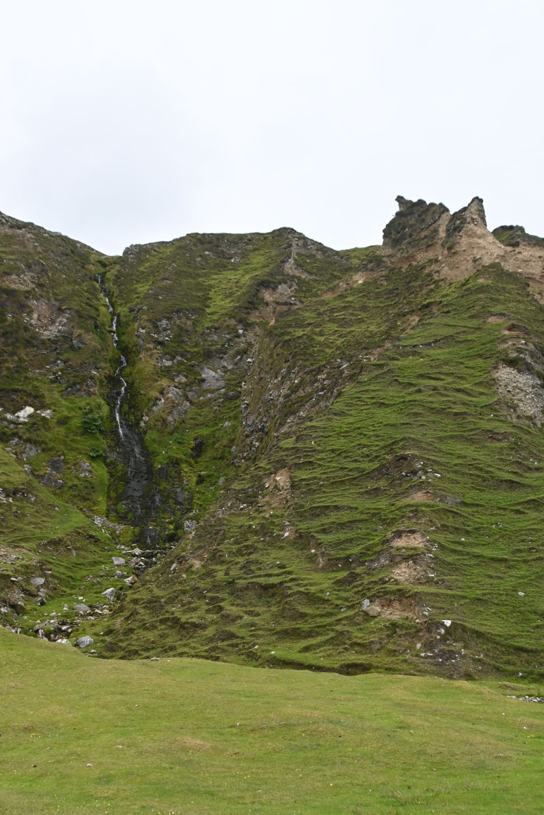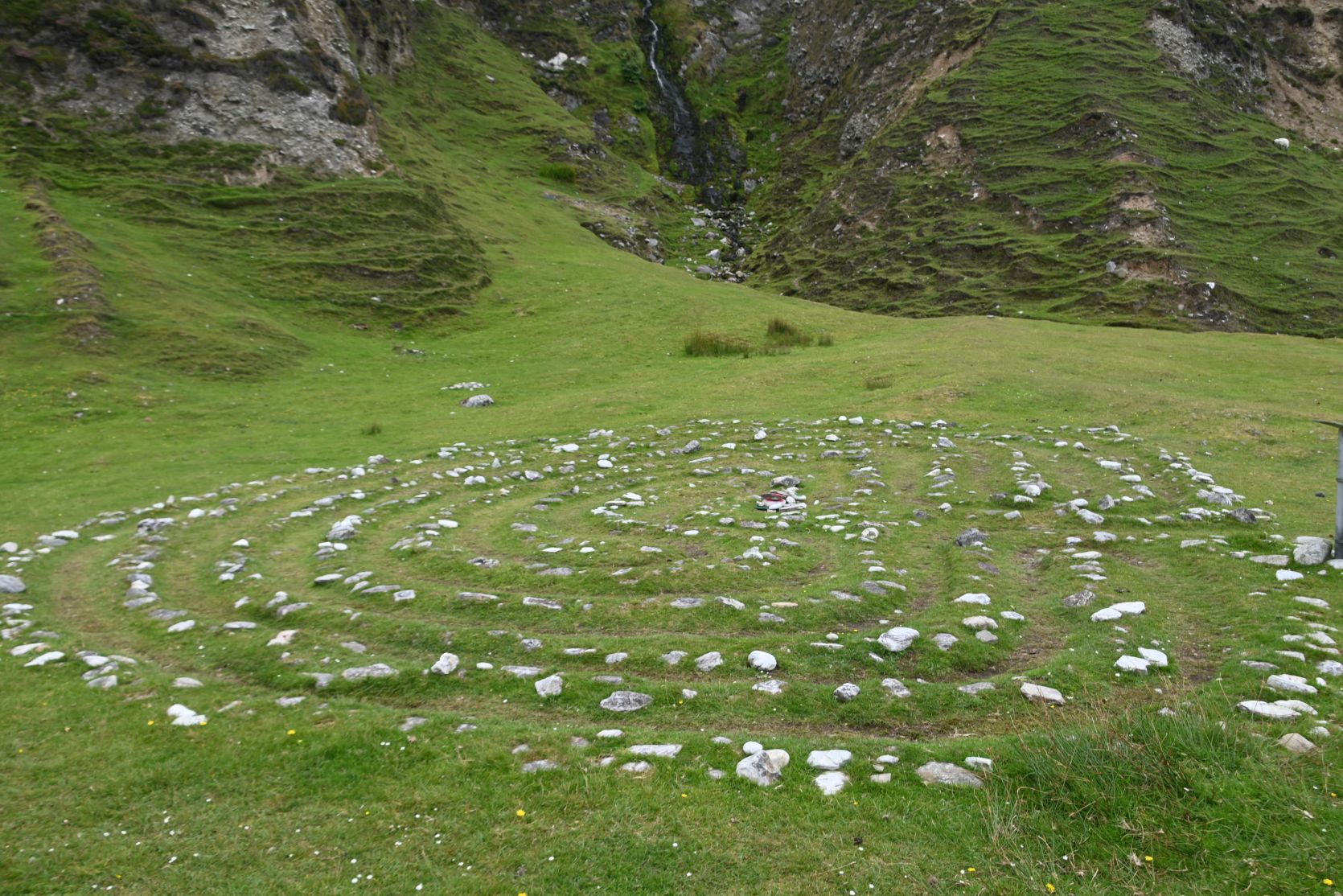 A little waterfall and a labyrinth. The sheep love the risk, grazing in these steep slopes!