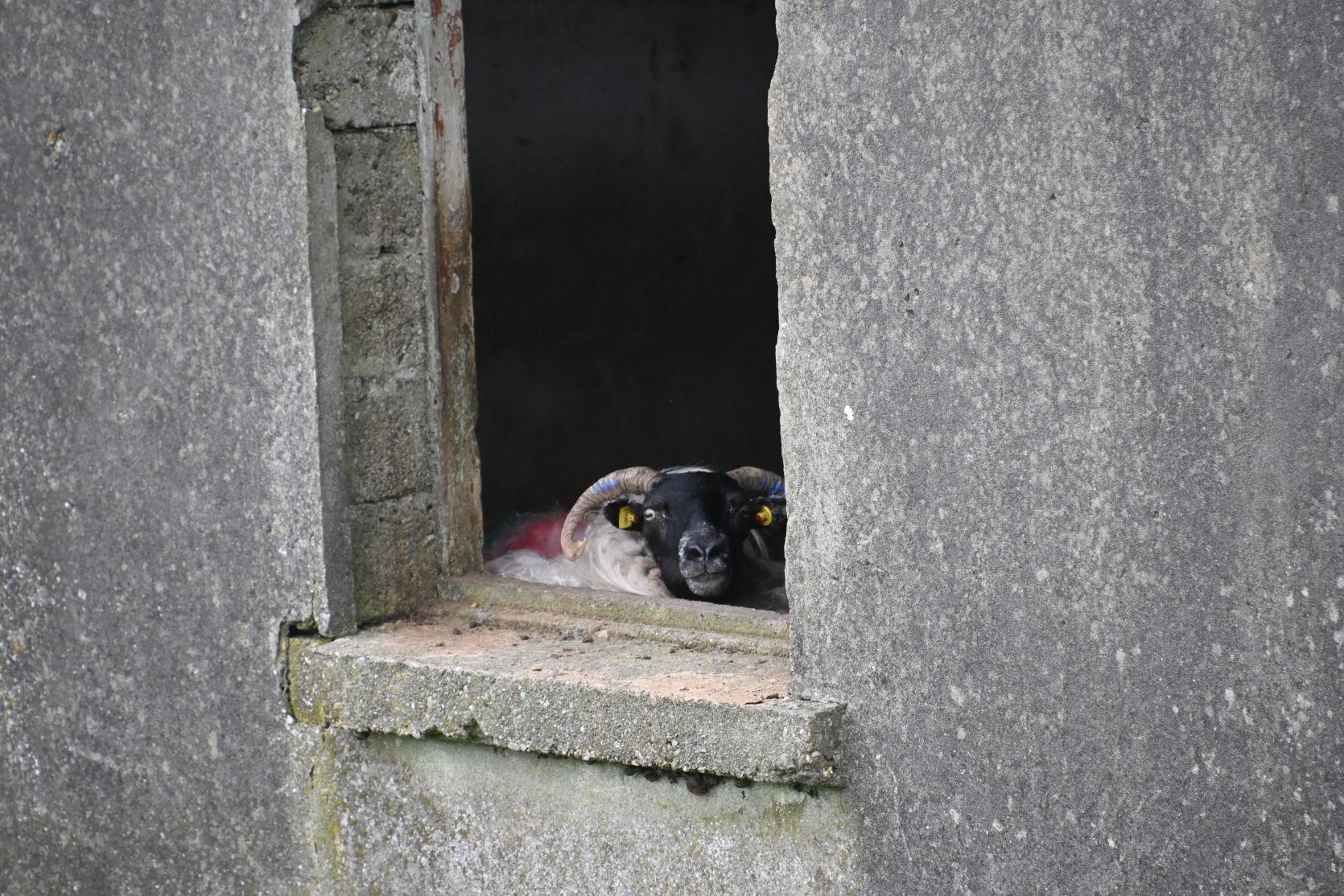 Sometimes sheep take over abandoned houses.