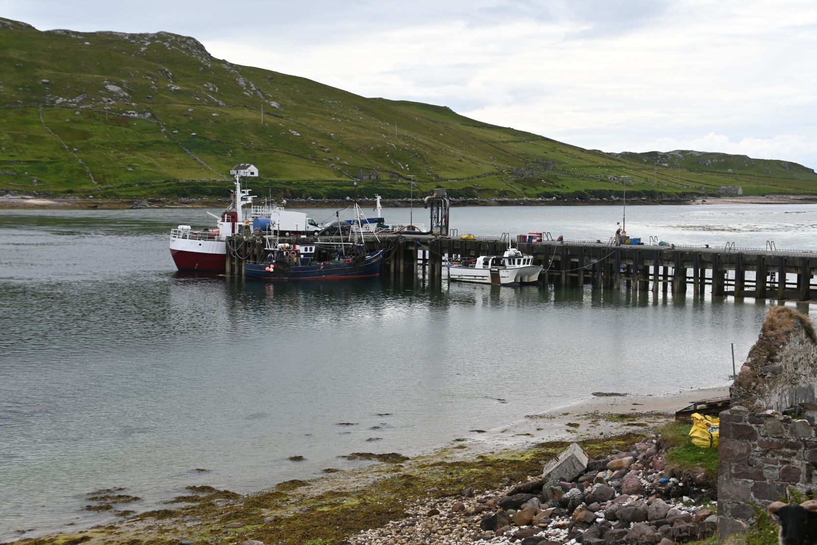 Nachdem wir Doogort verlassen hatten, fuhren wir auf einigen kleinen Strässchen, z.B. nach Bullsmouth (Foto mit dem Boot) …